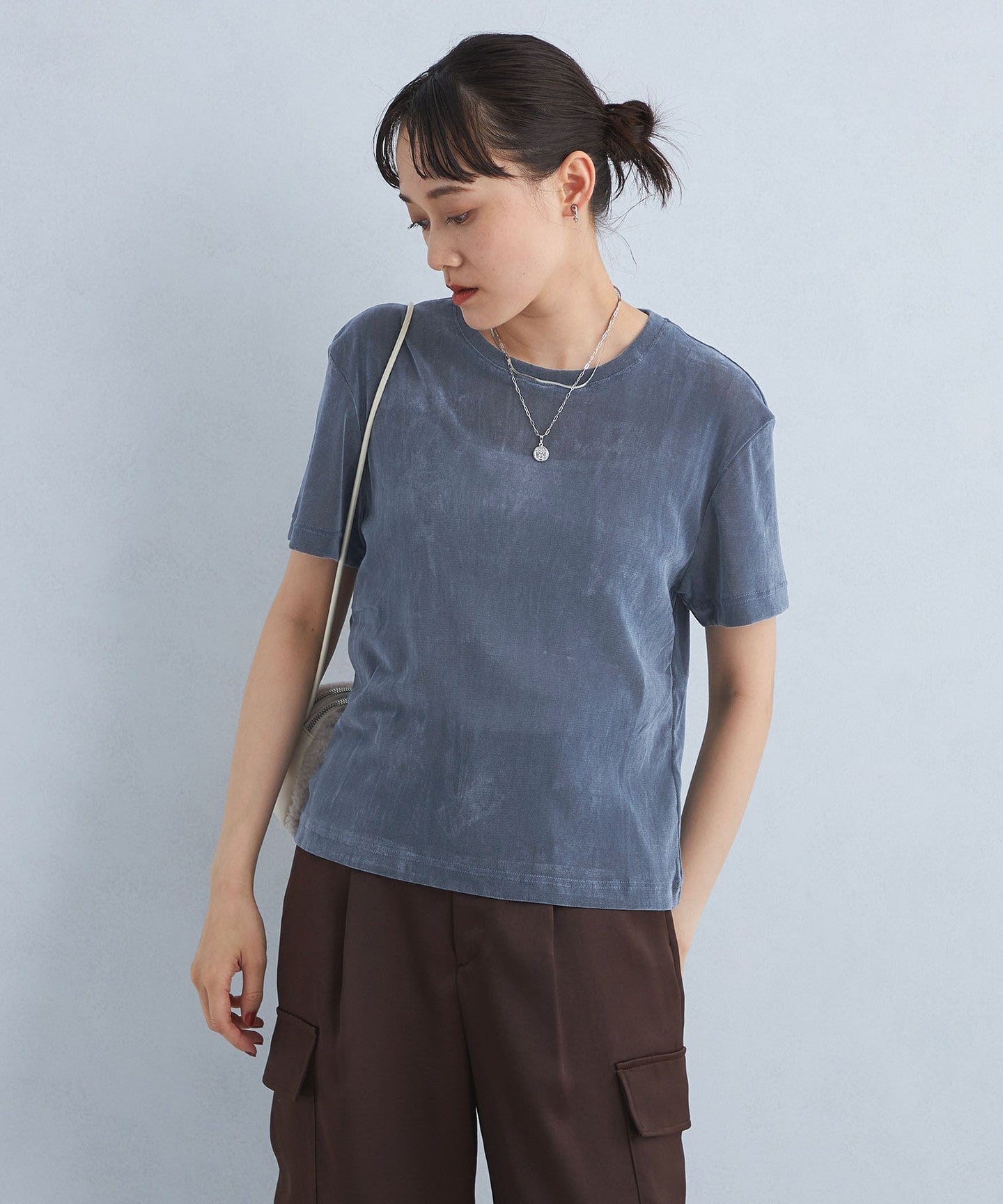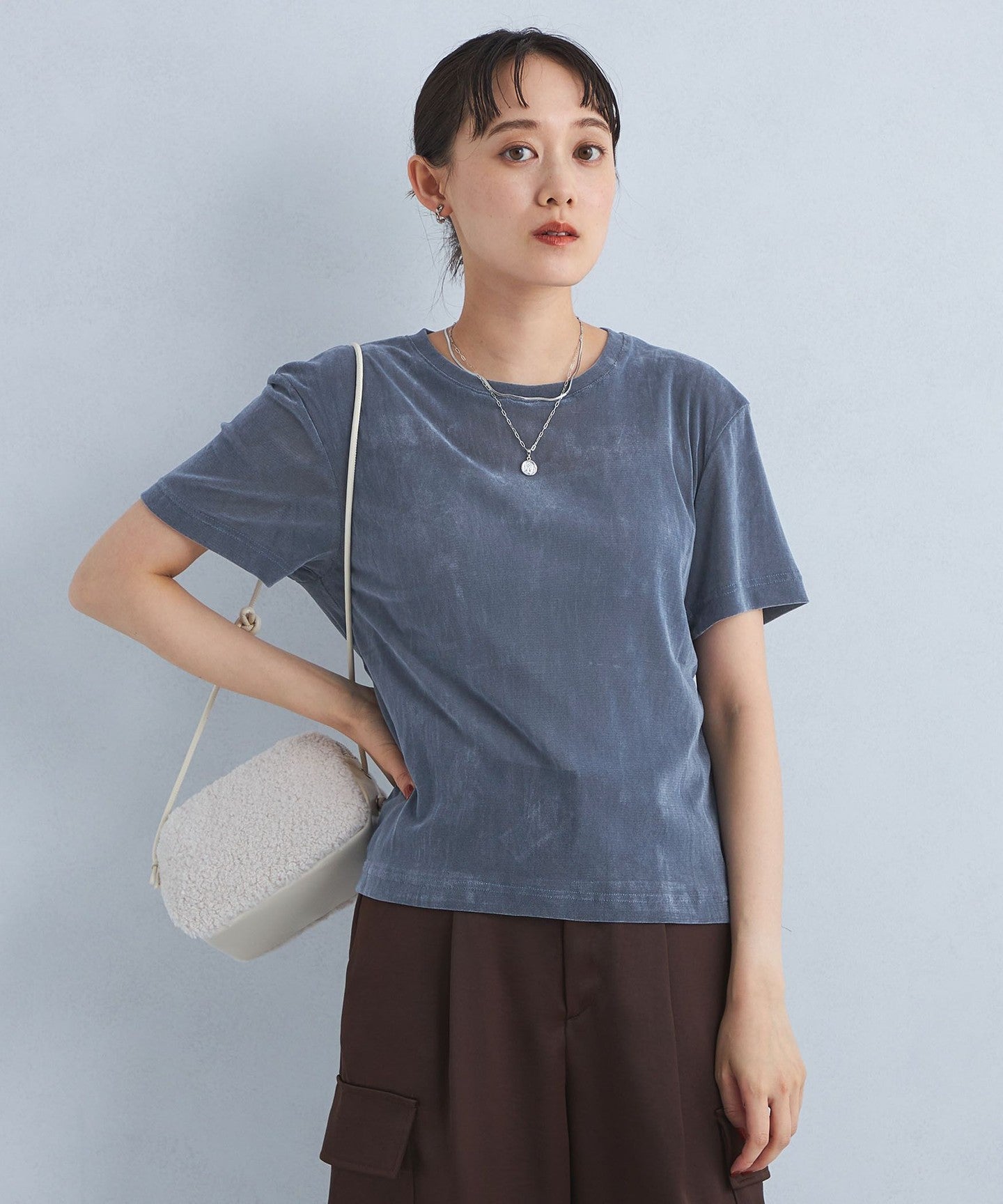 *The flocking is not permanent and may come off if rubbed or scraped. It may also become thinner with repeated washing. Please be careful of friction with bags, etc. when wearing the product.