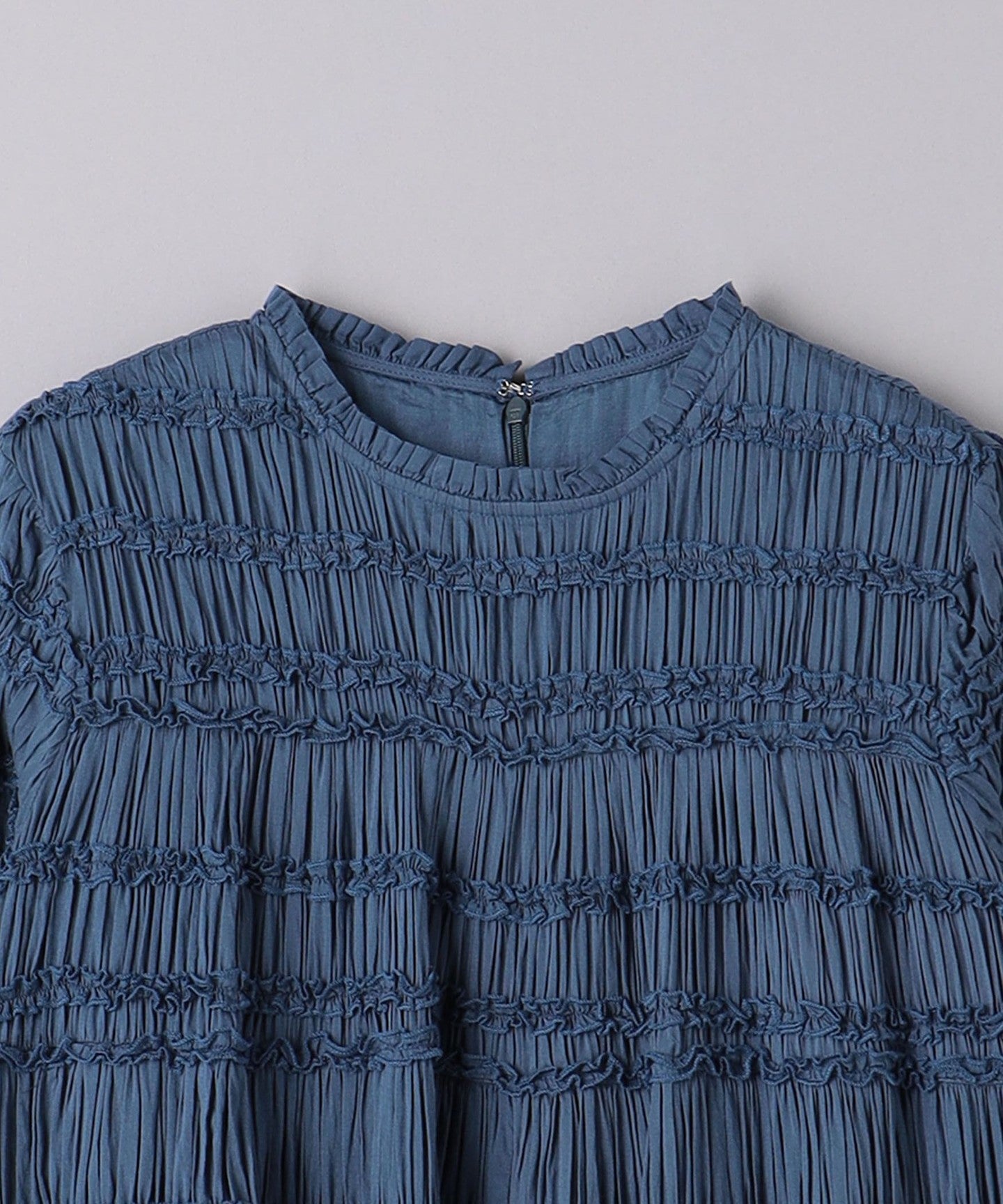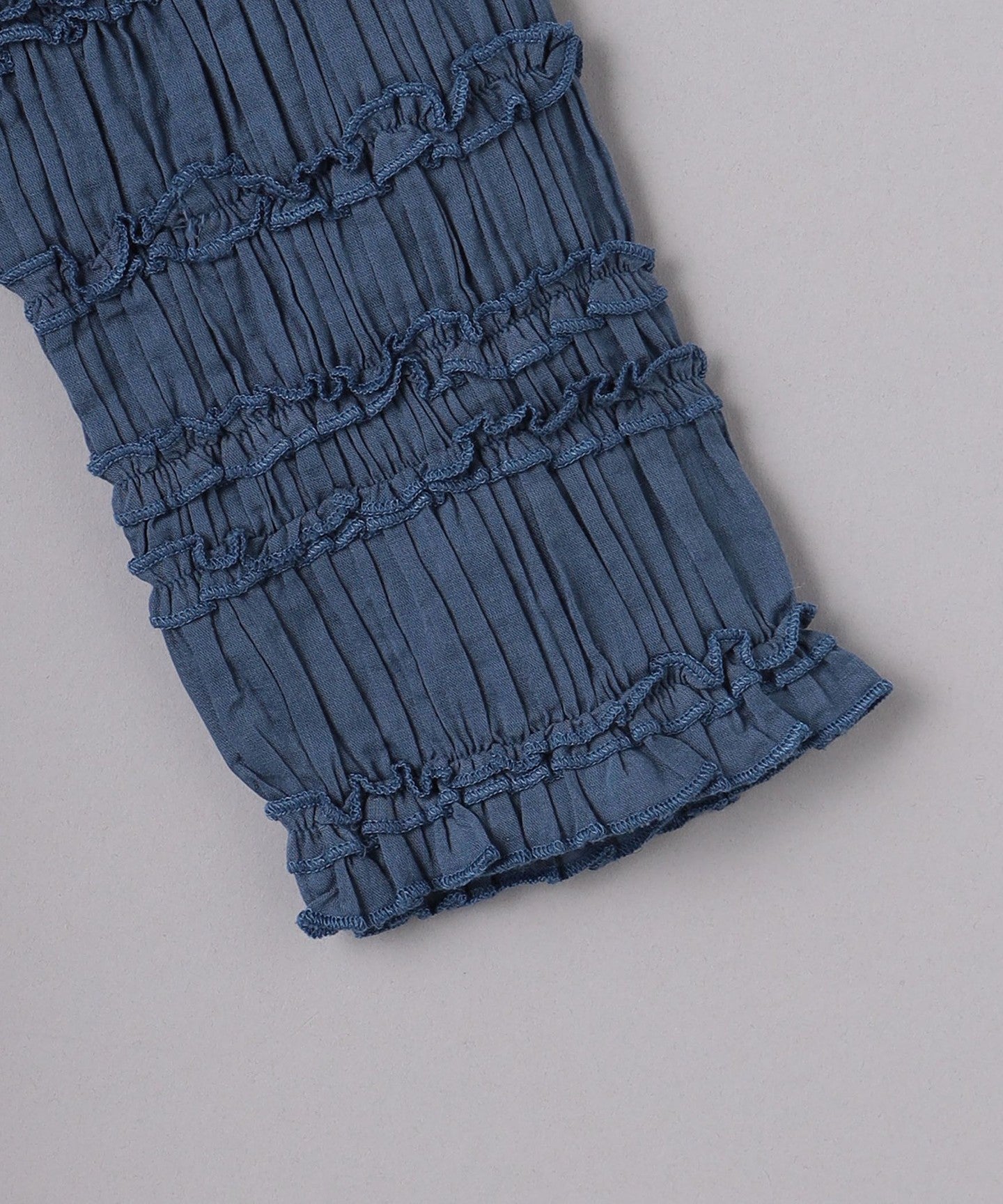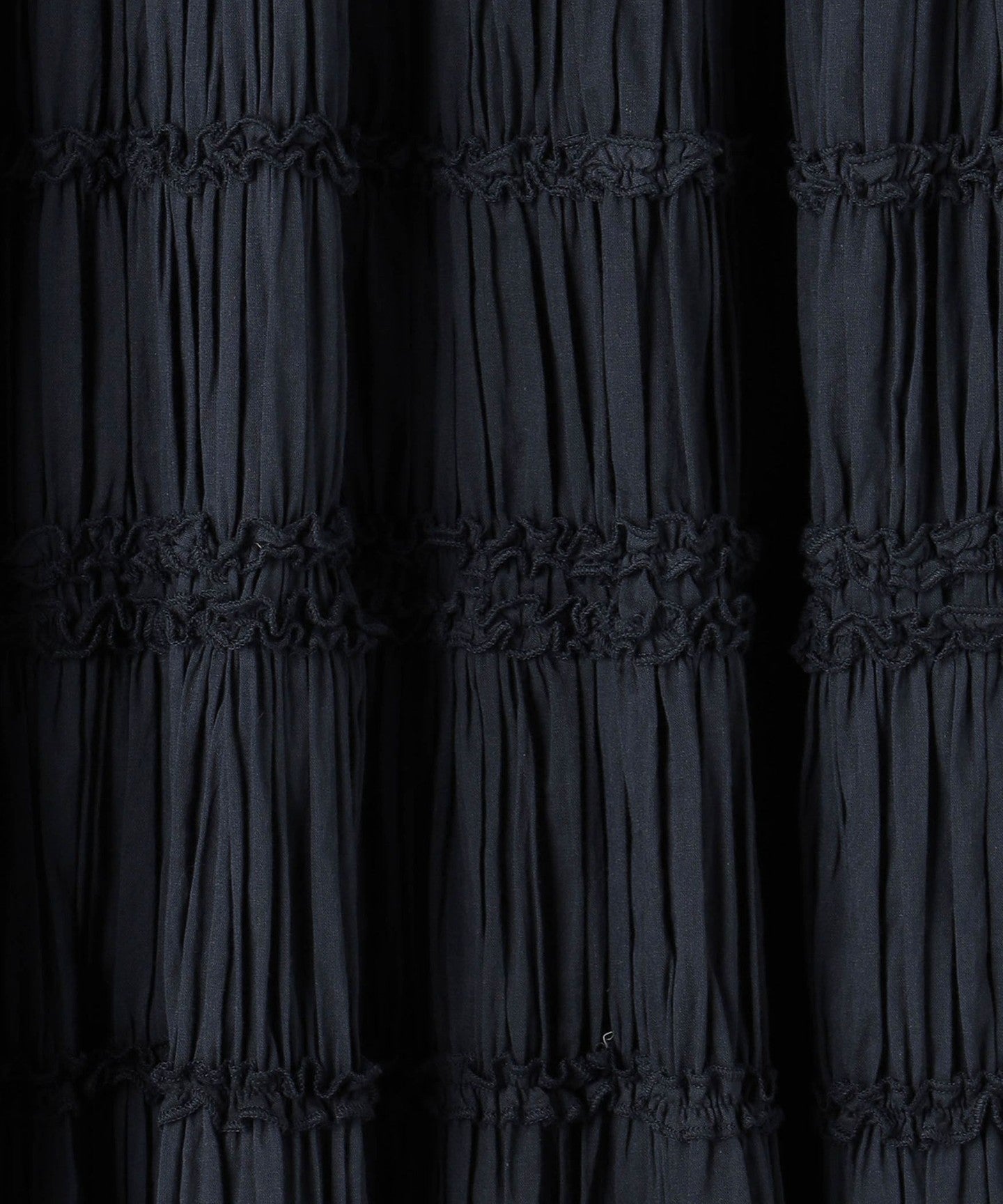 Taking advantage of the thinness of the voile, we gathered the fabric and sewed shirring elastic onto it along with the ruffles.
