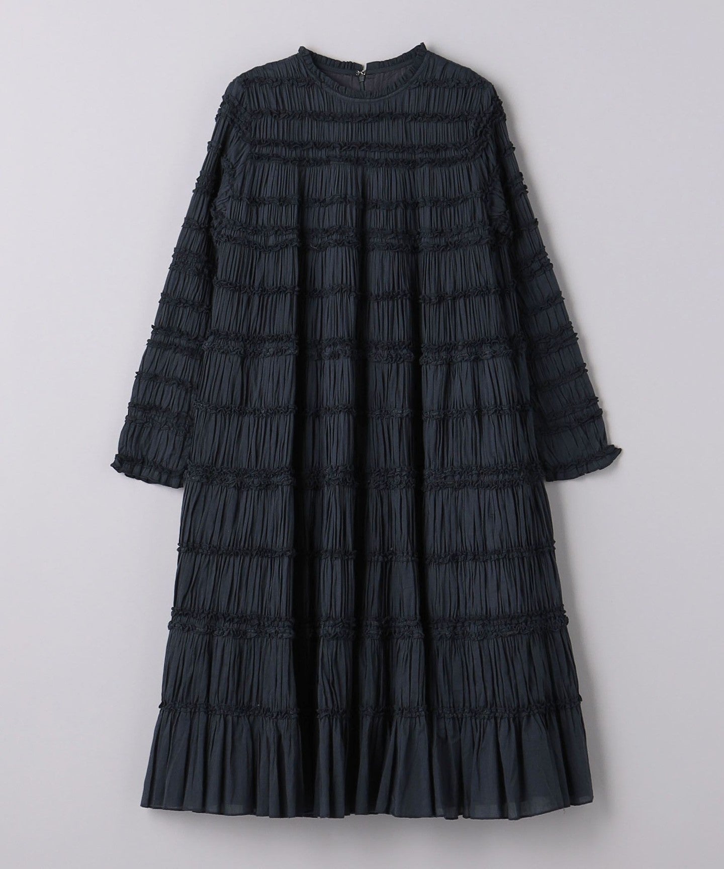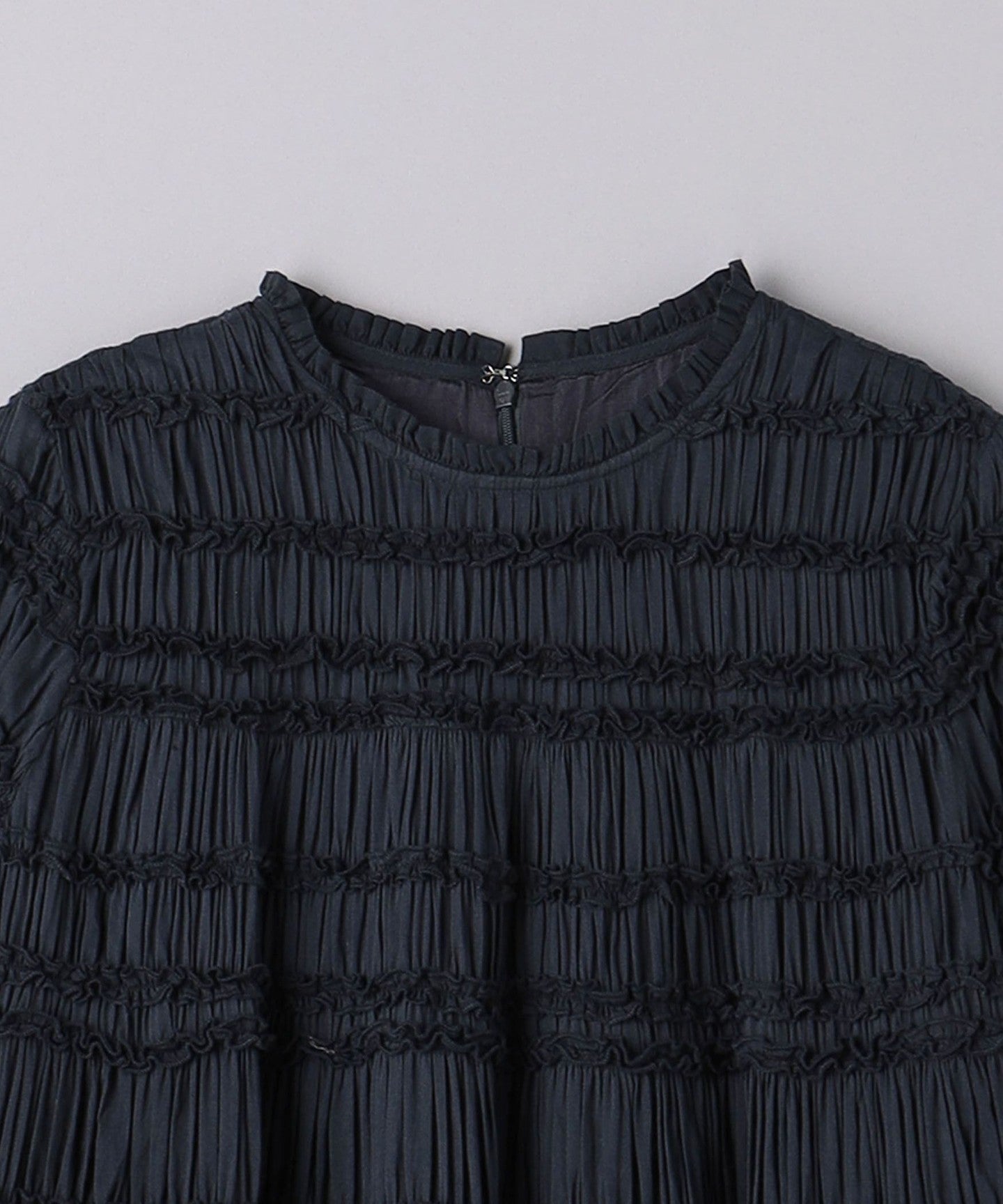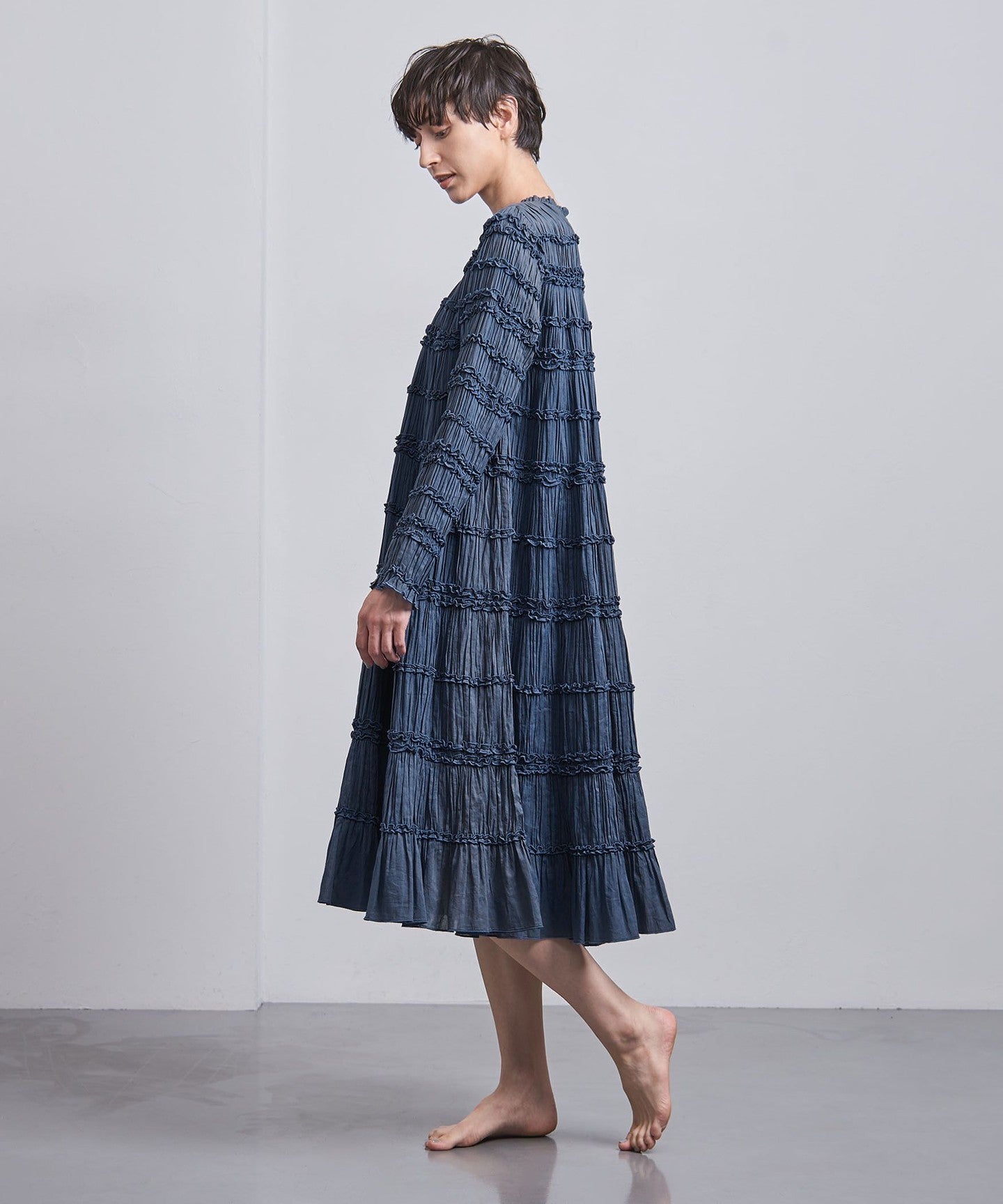 Taking advantage of the thinness of the voile, we gathered the fabric and sewed shirring elastic onto it along with the ruffles.