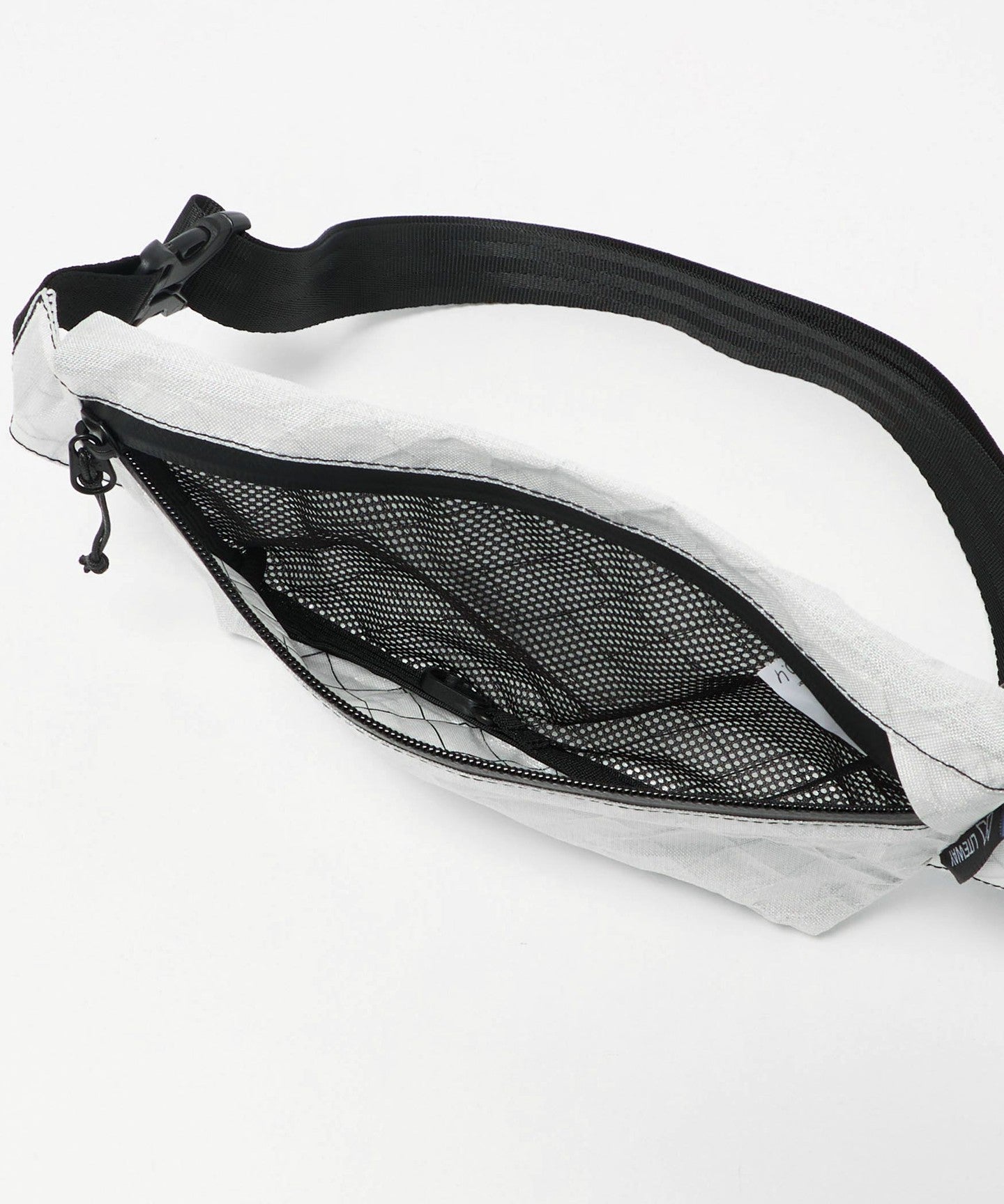 A waist pouch with a minimalist design that eliminates unnecessary decorations.