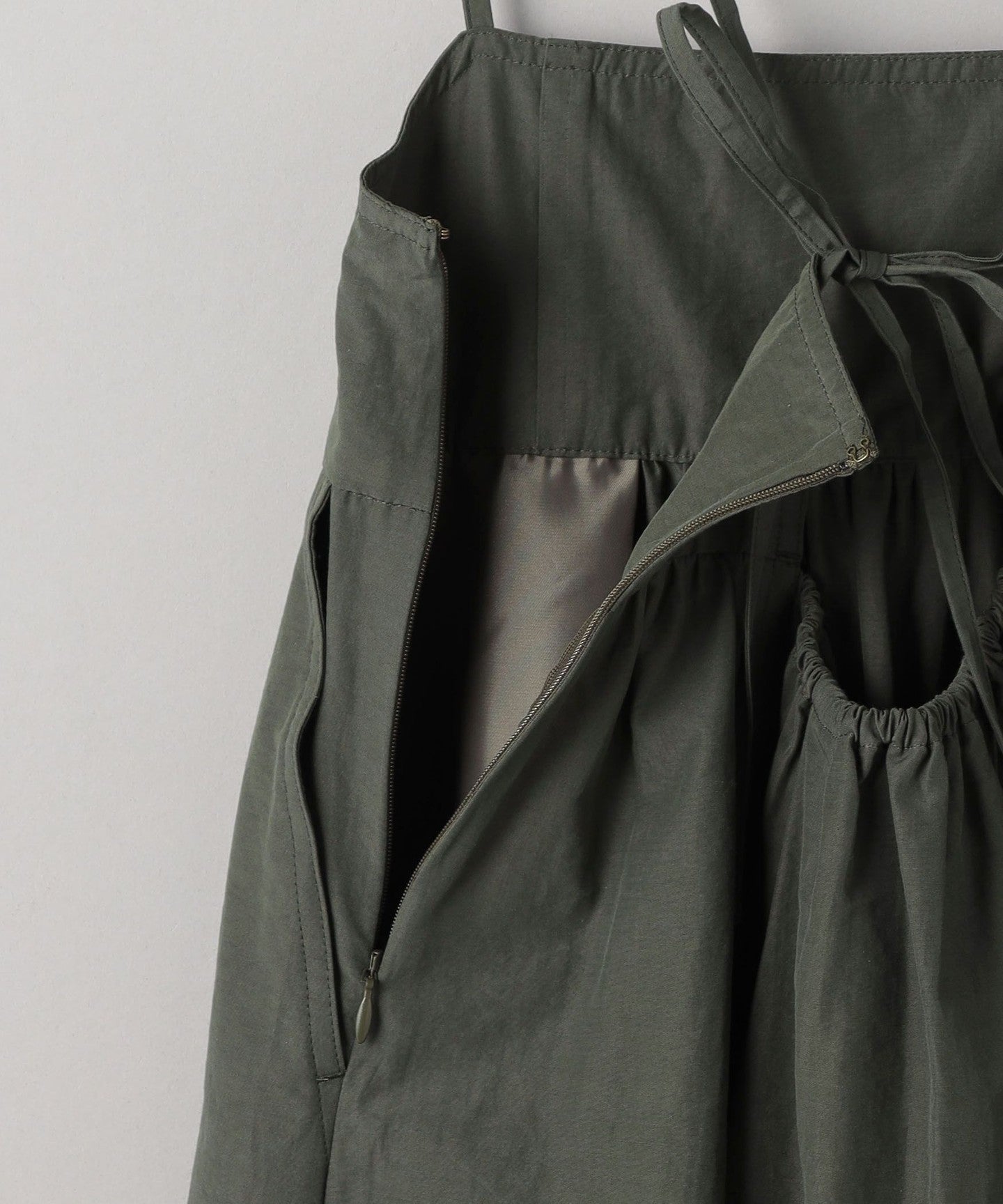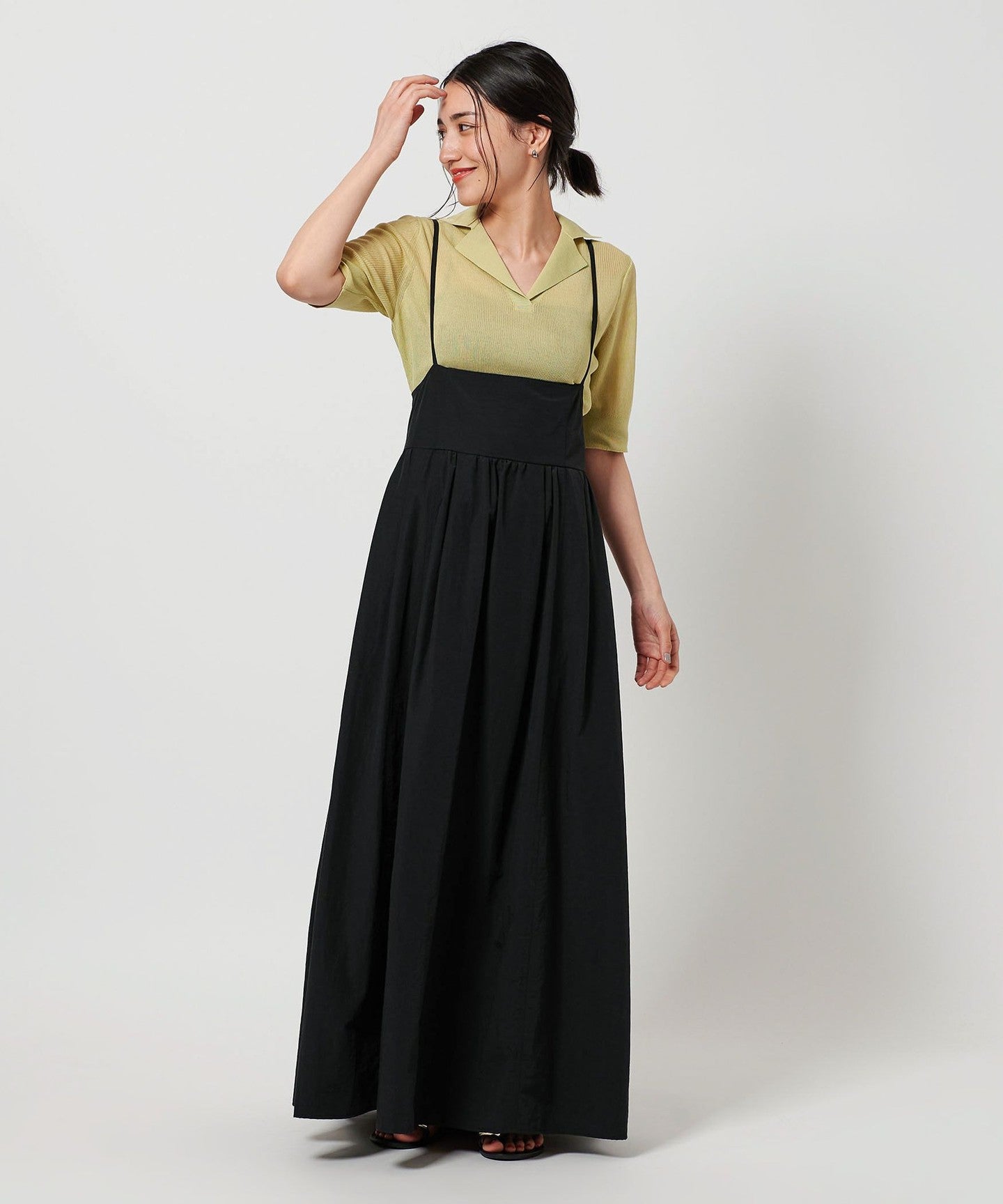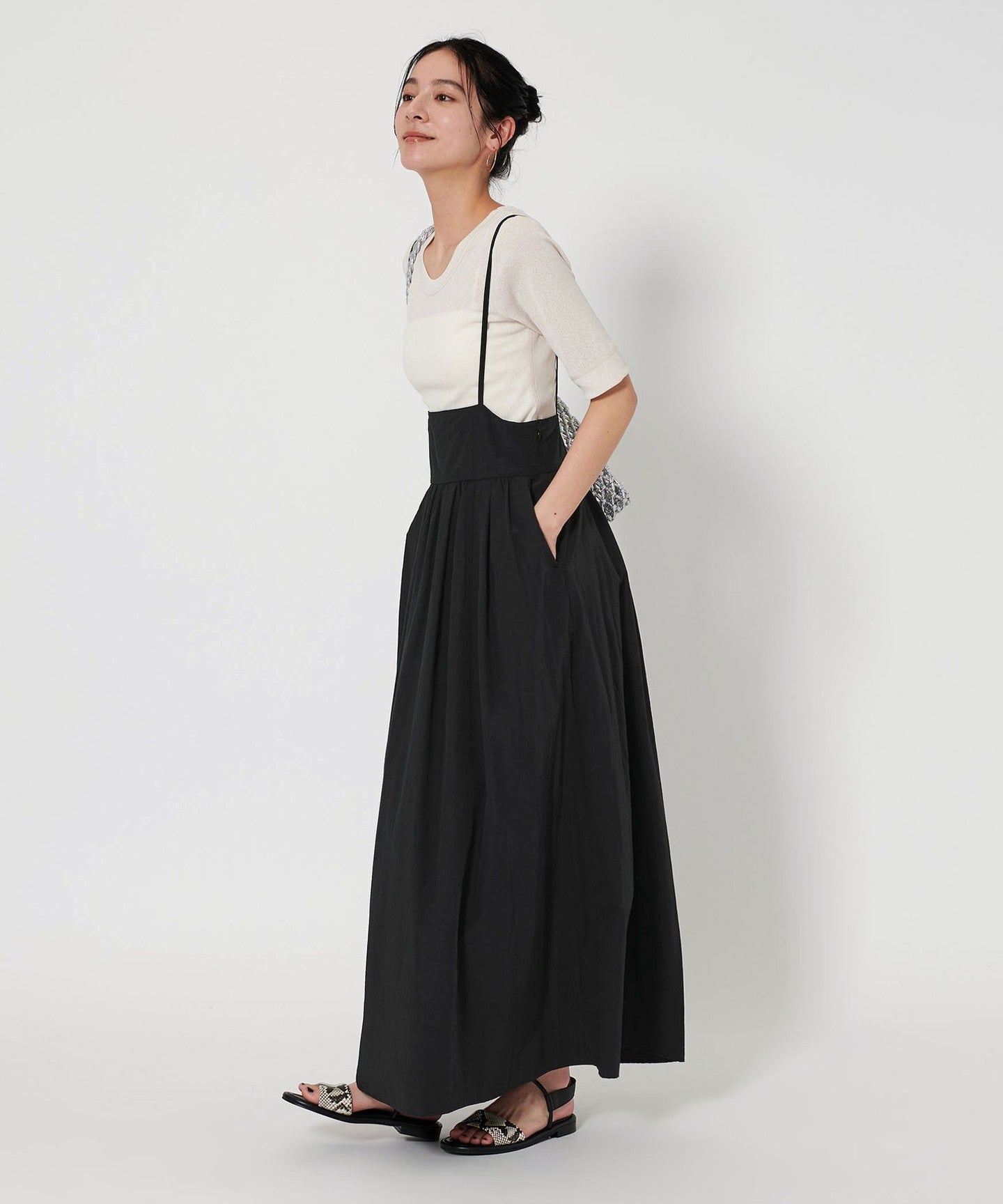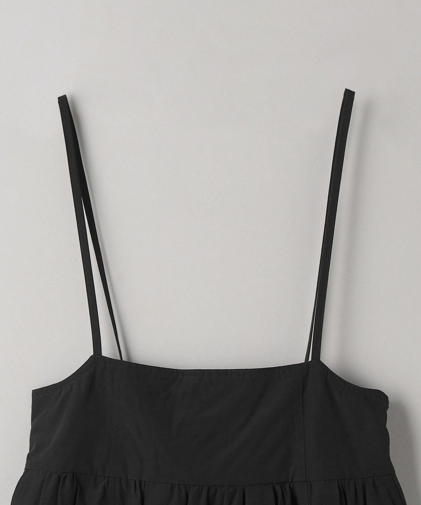 The natural volume that spreads from the gathers on the sleek body and the delicate straps enhance the feminine mood even when layered.