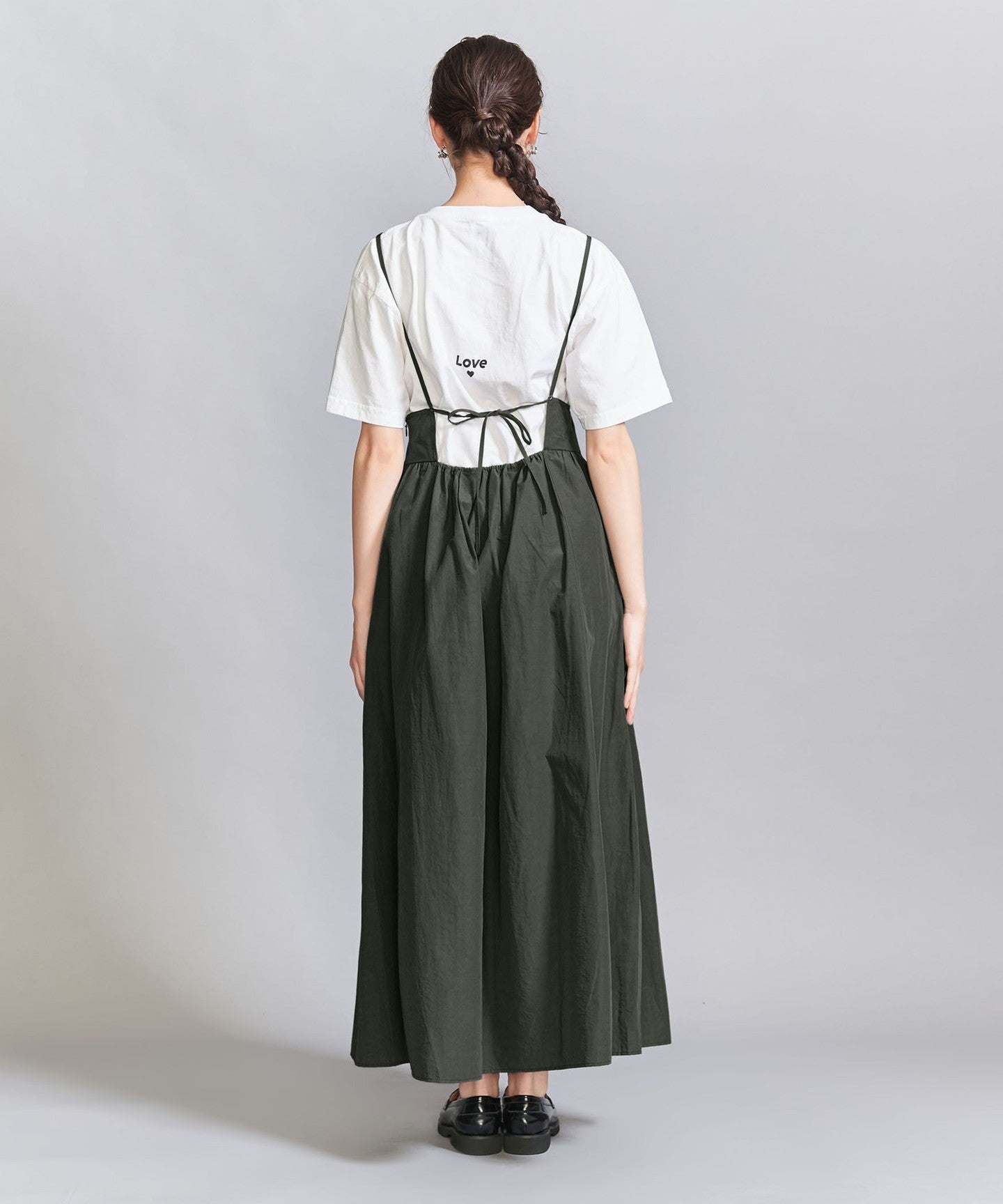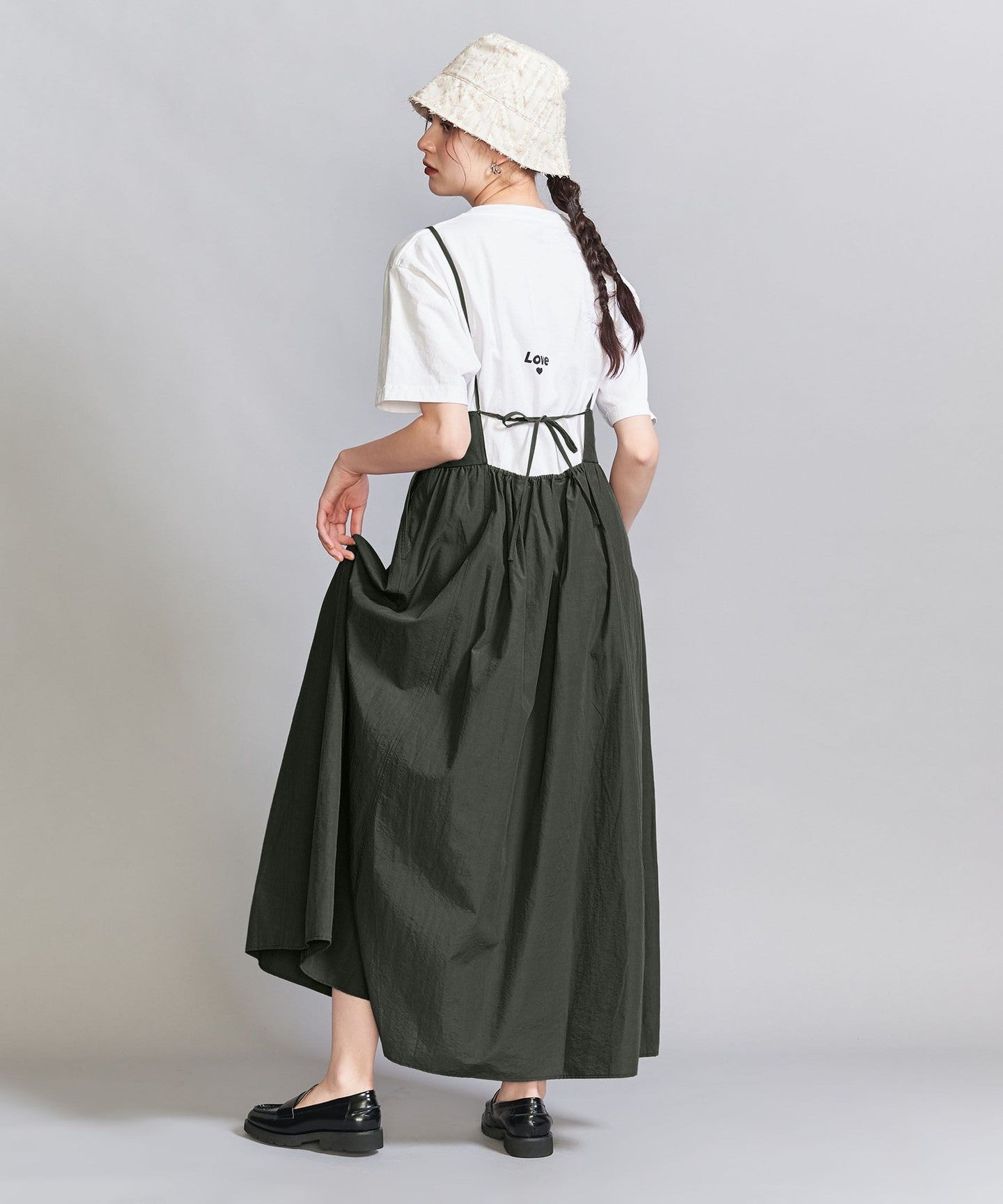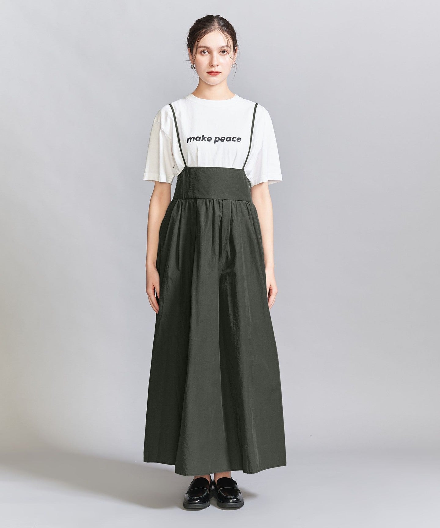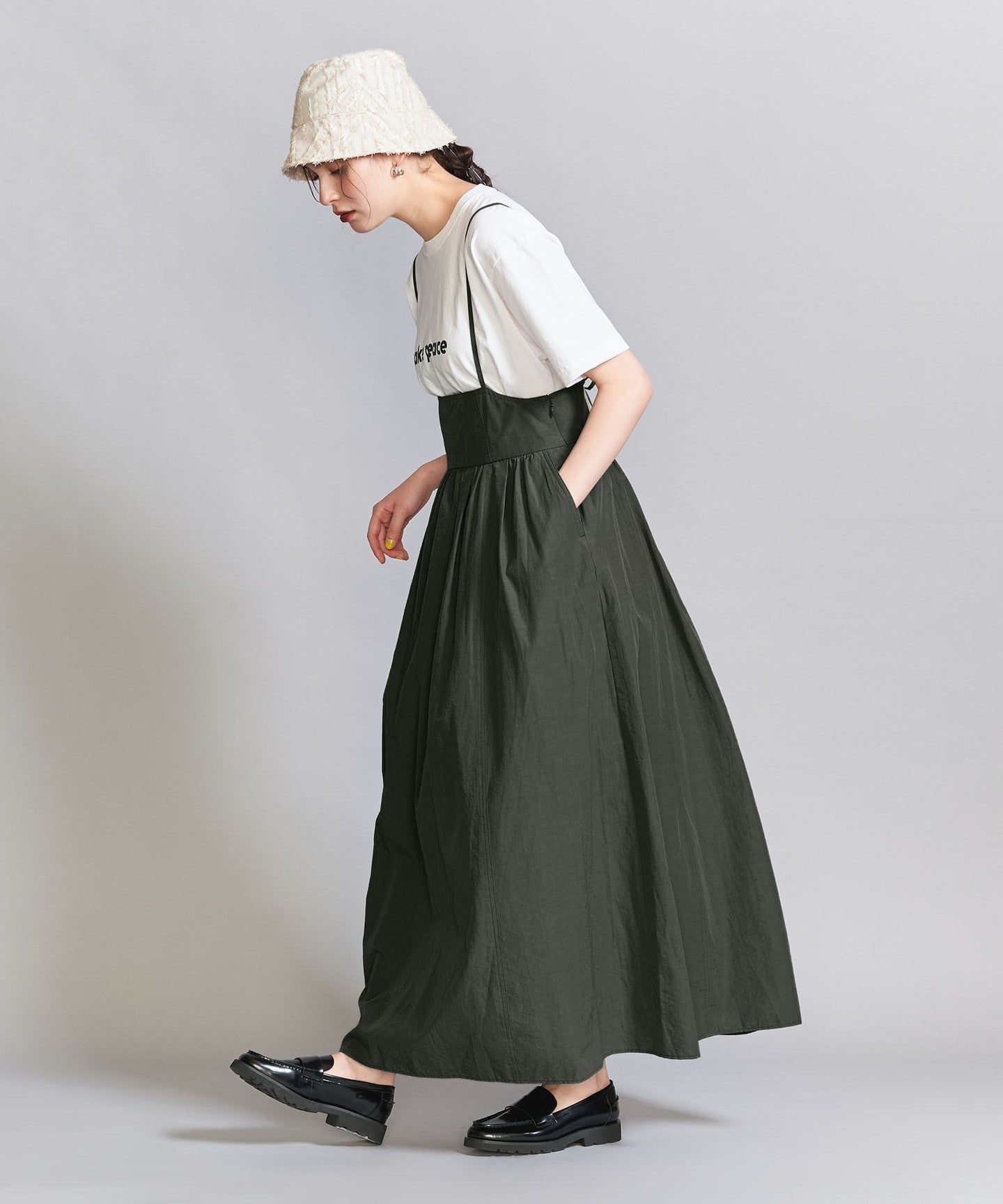 The natural volume that spreads from the gathers on the sleek body and the delicate straps enhance the feminine mood even when layered.