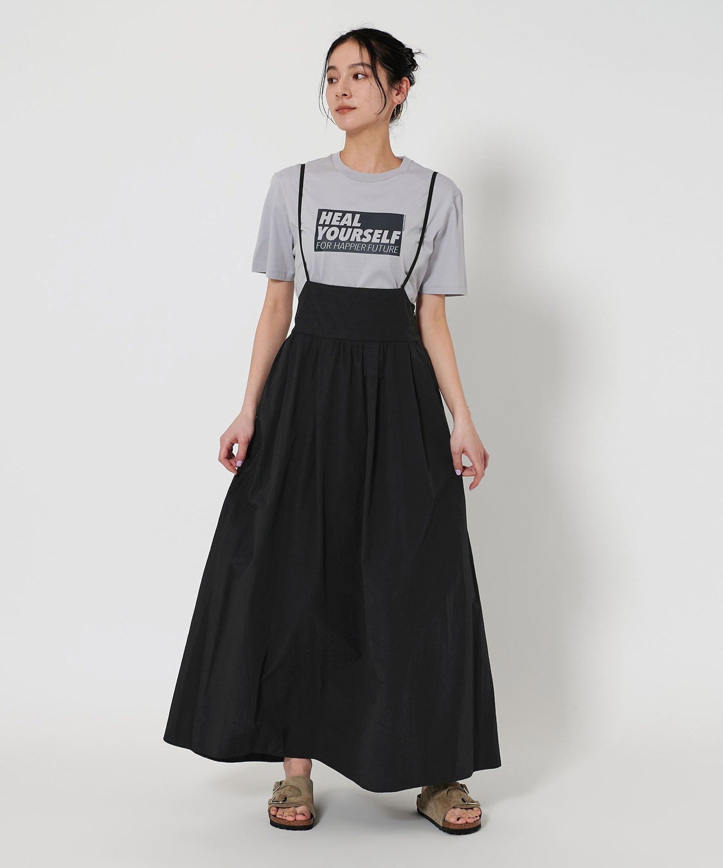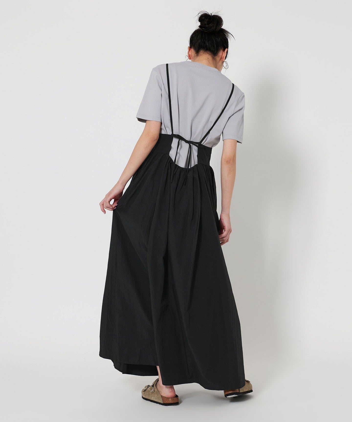 It has a 2-way design that can be worn as a camisole dress with the waistband facing up, or as a skirt with the waistband facing down.