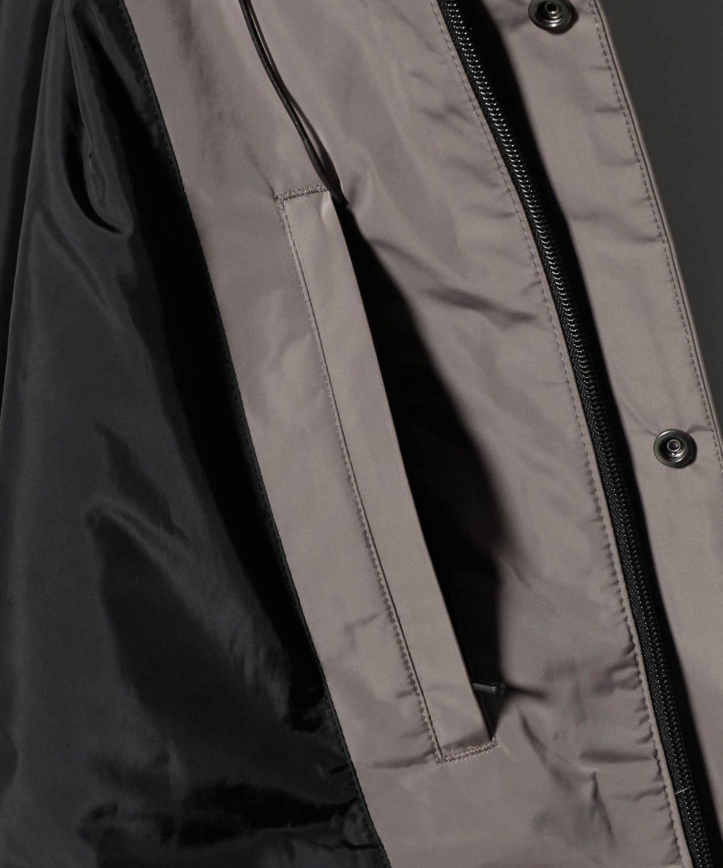 フロントはダブルジップ×スナップボタンを採用して、外気が入りにくいように工夫しています。