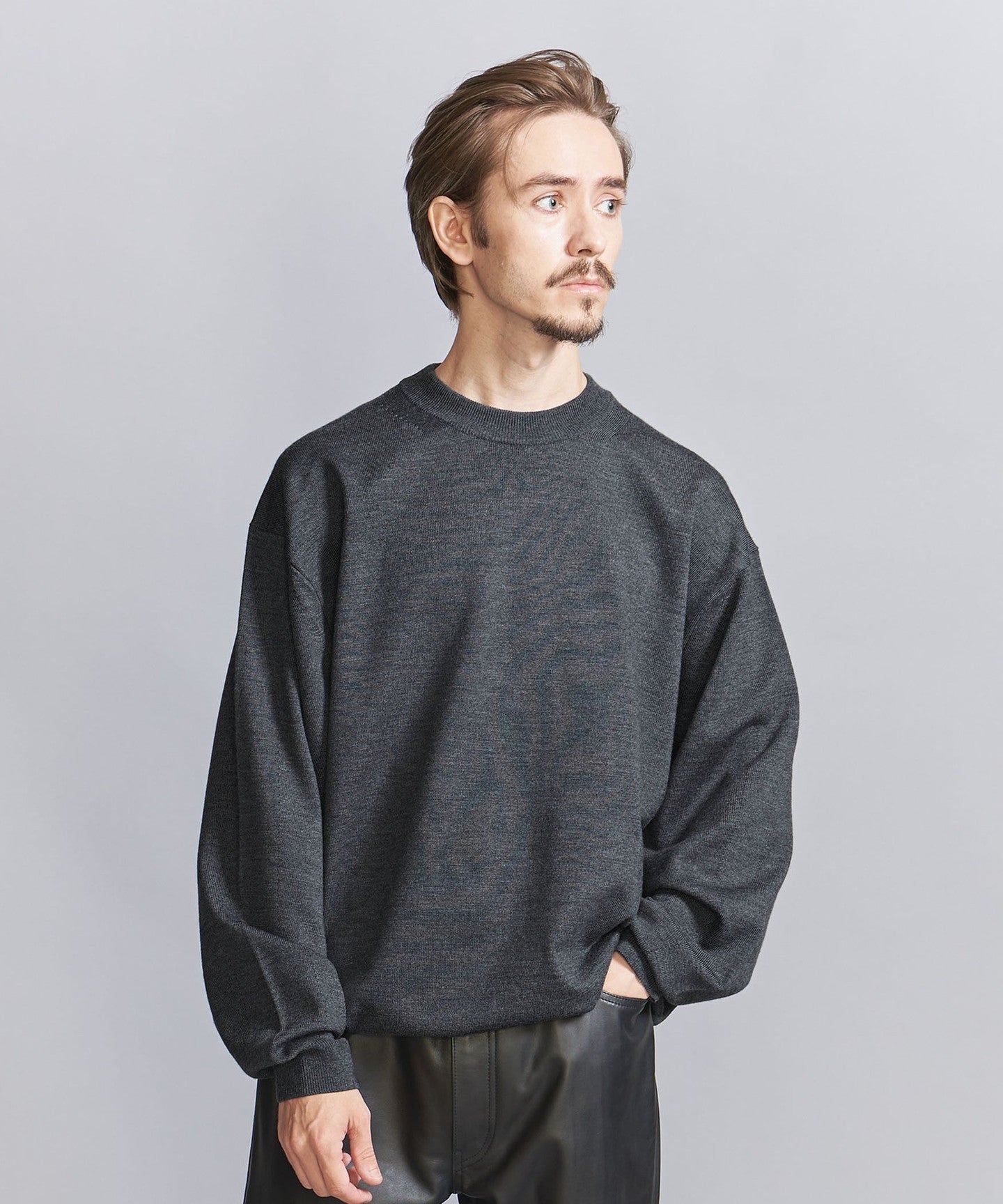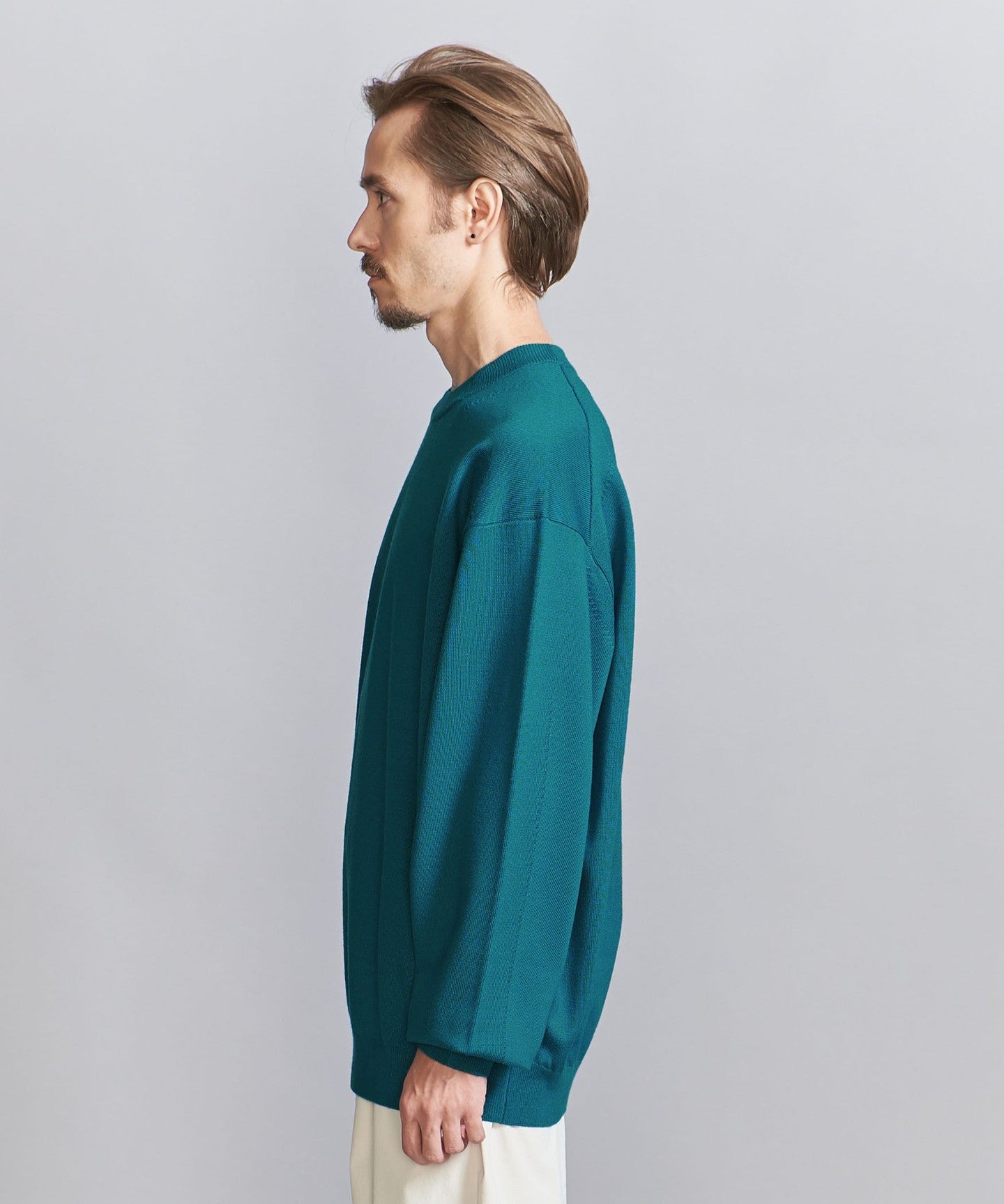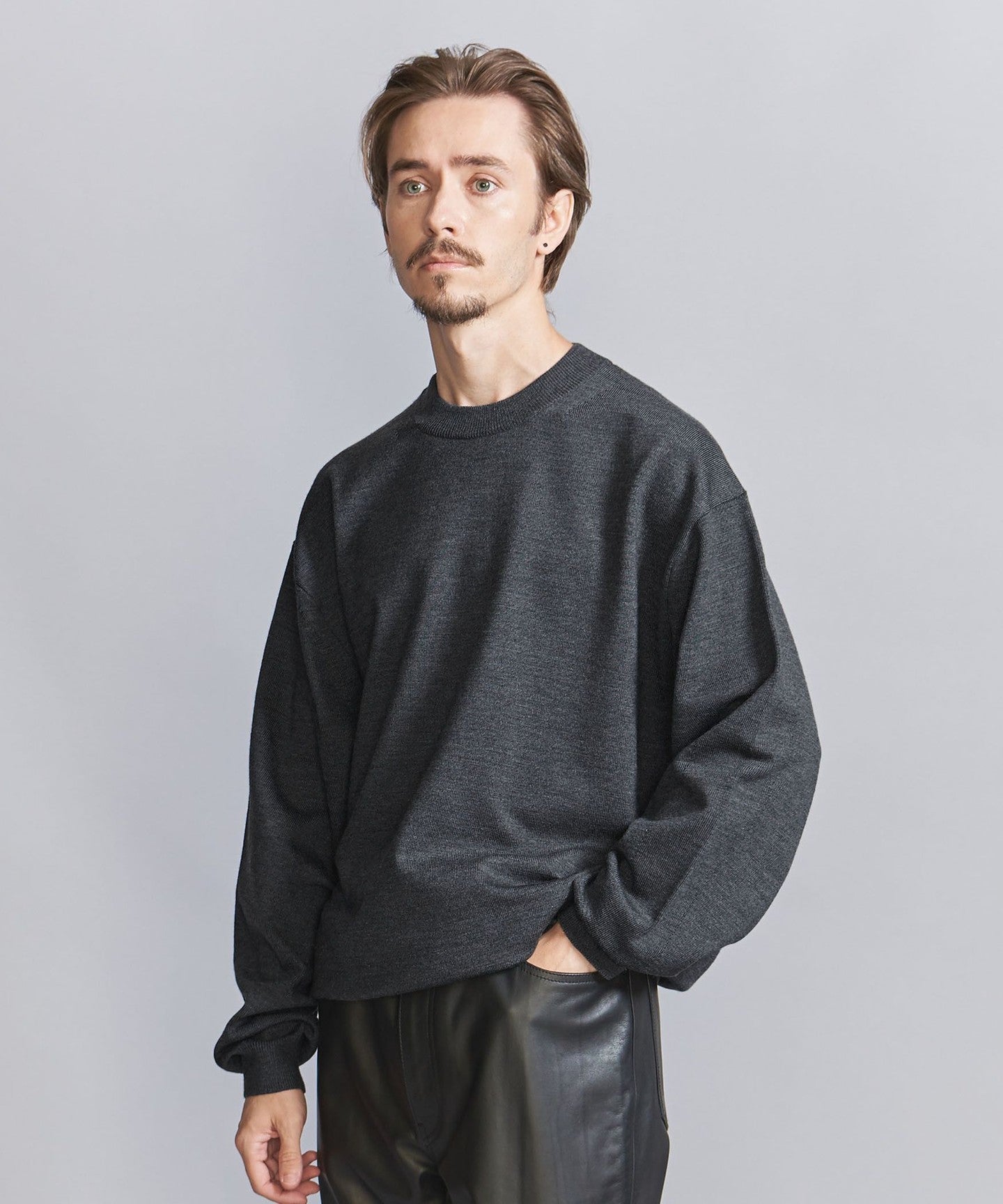 This high-gauge wool top features a firm body like a sweatshirt and a shapely silhouette.