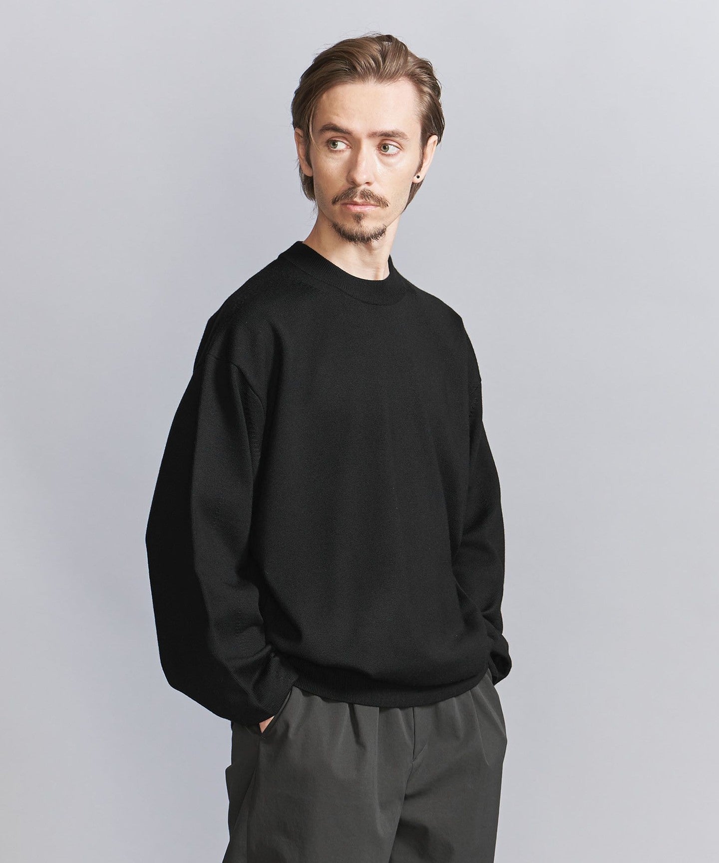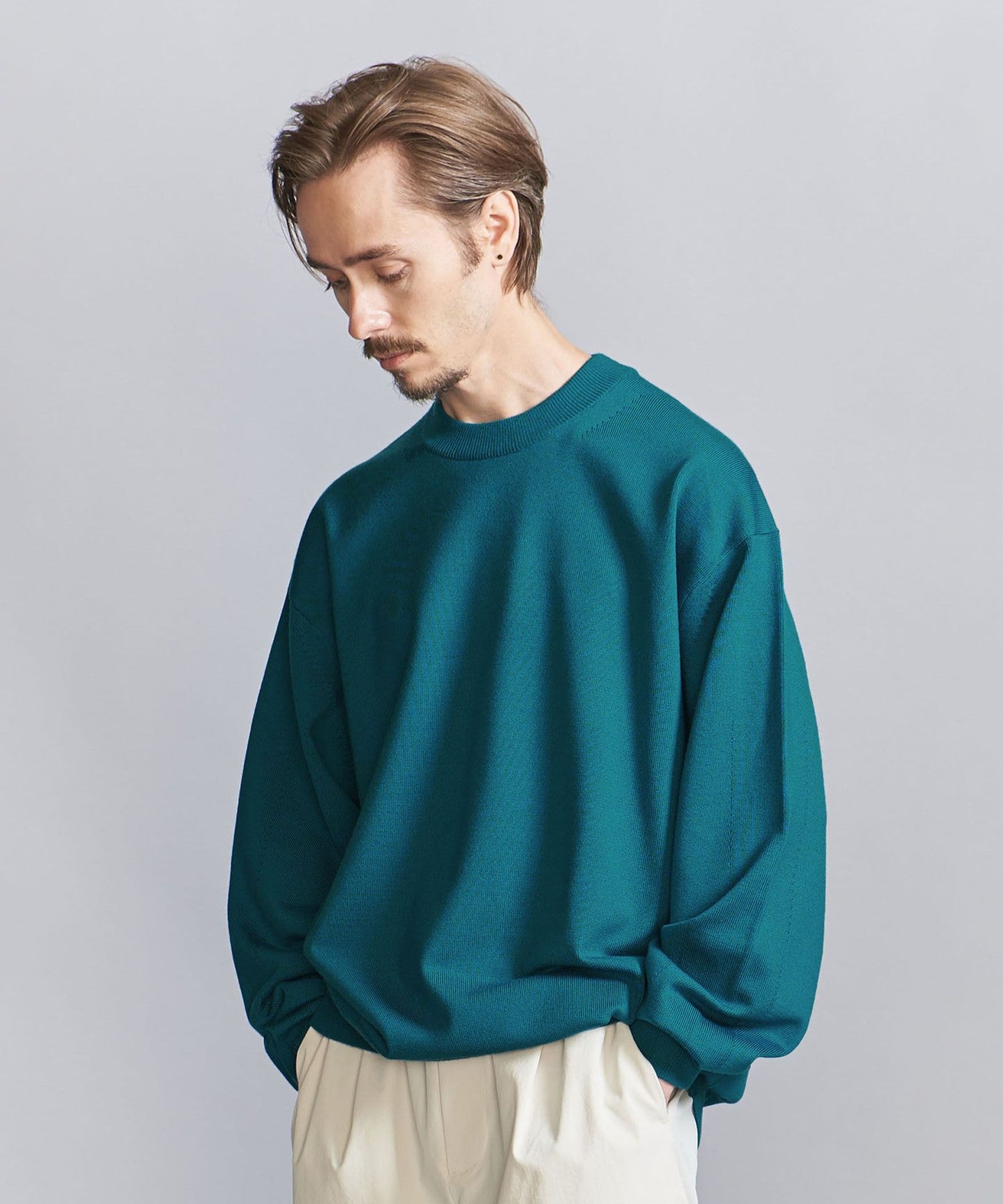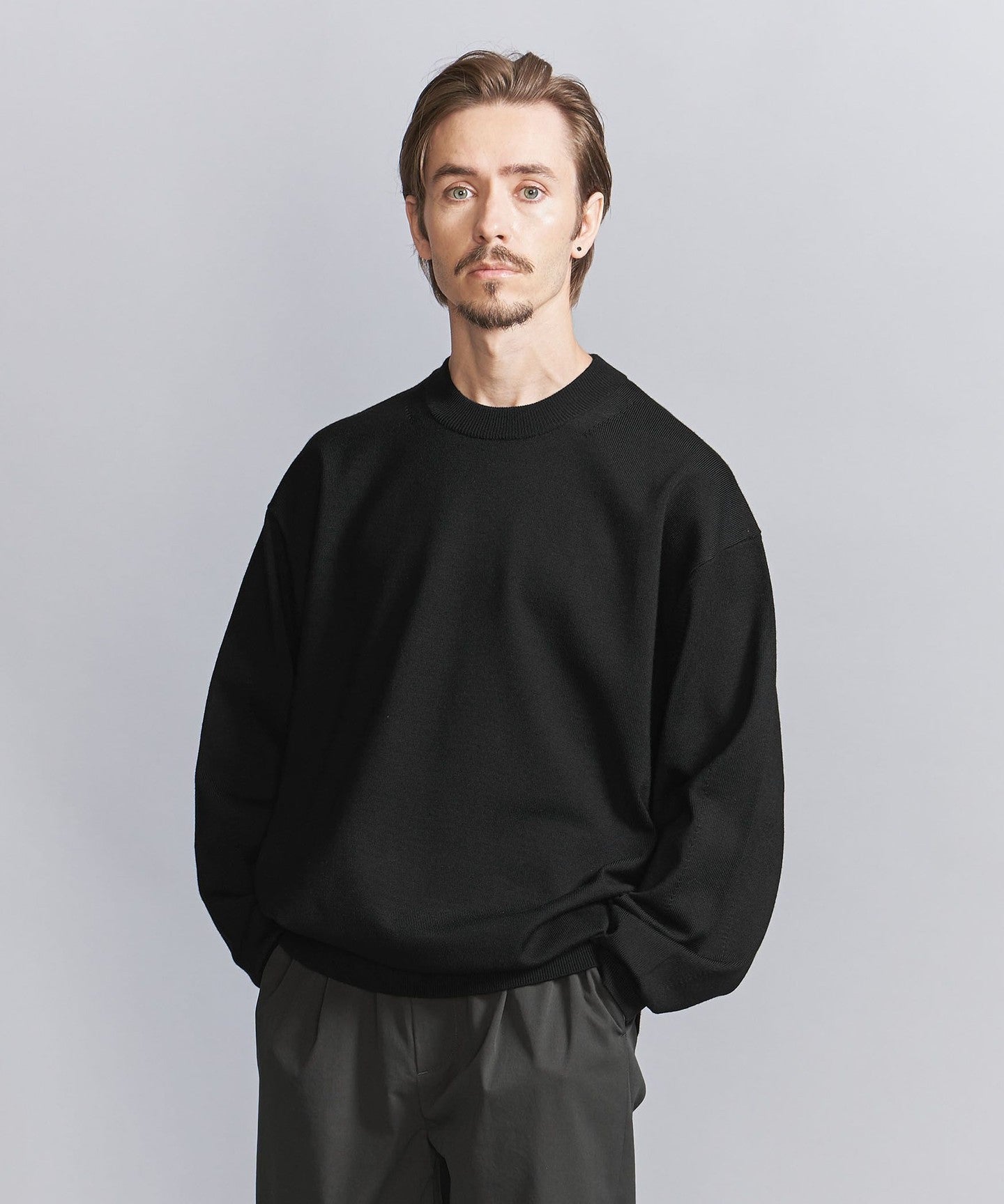 This high-gauge wool top features a firm body like a sweatshirt and a shapely silhouette.