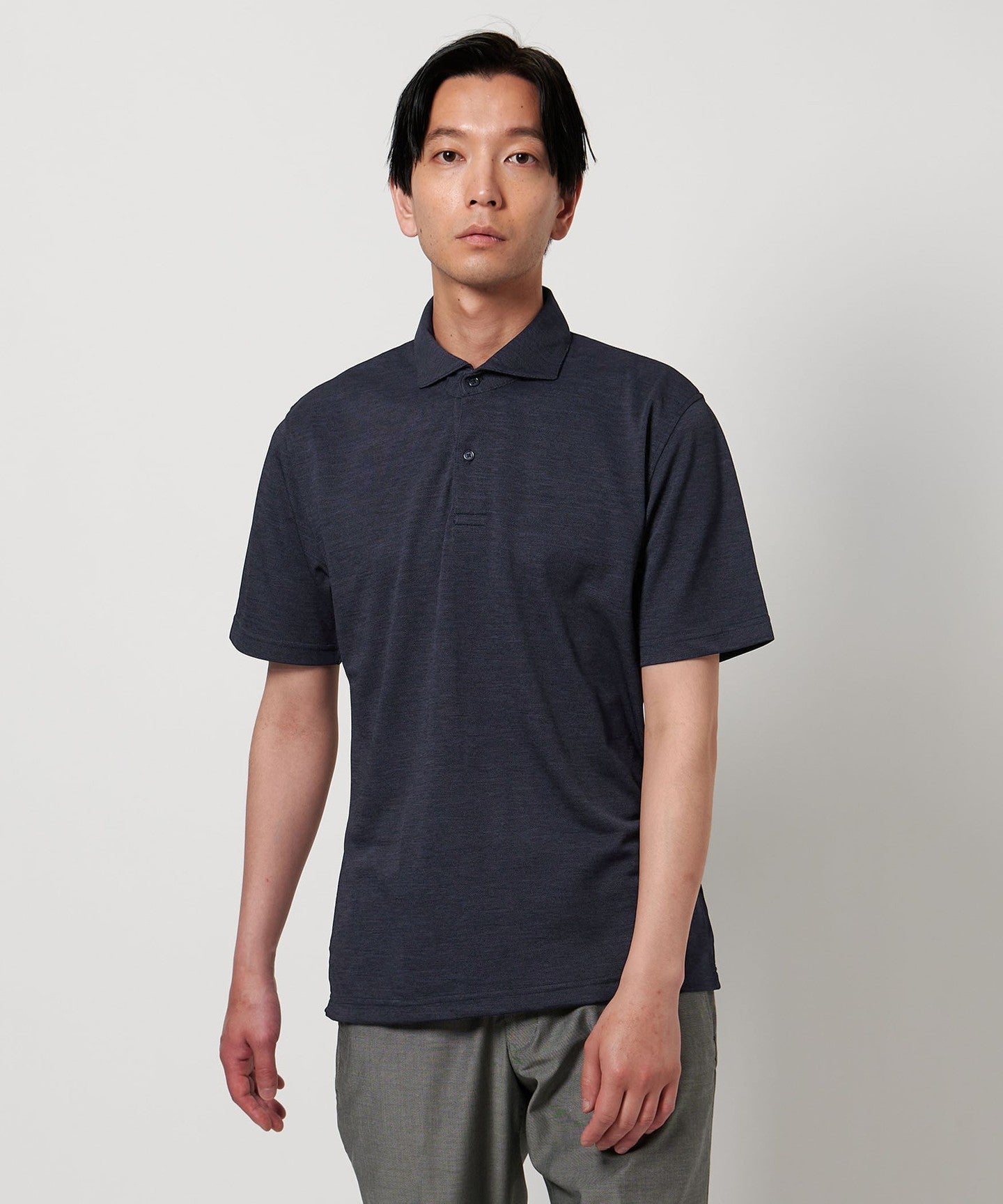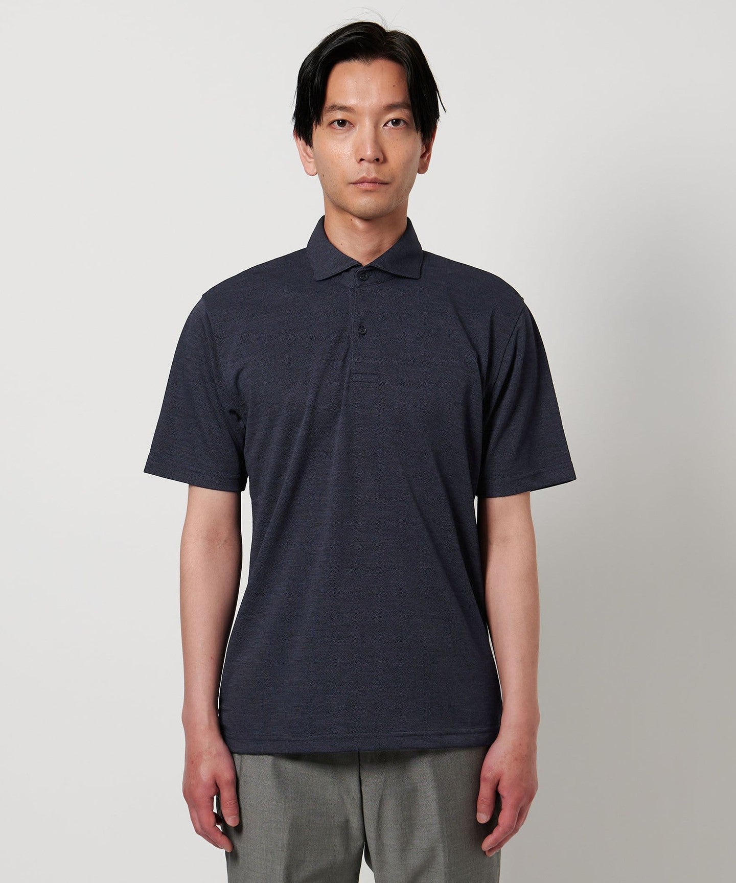 A wide-collar polo shirt that gives a clean look around the face and is perfect for the latest trends.