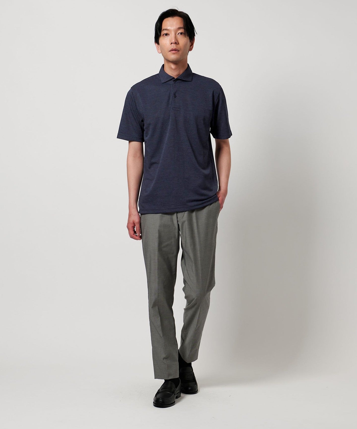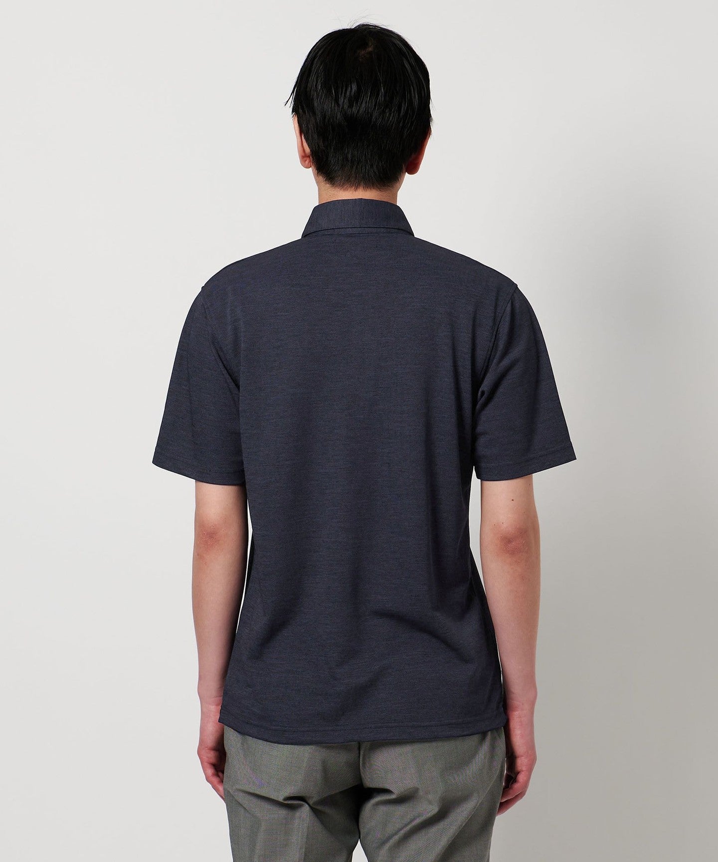 The collar maintains its shape even when the first button is unbuttoned, giving a stylish impression.