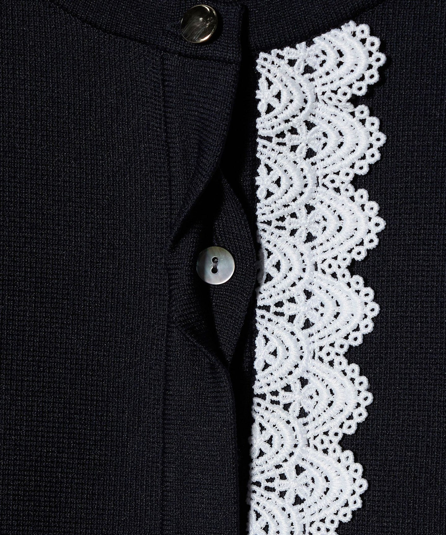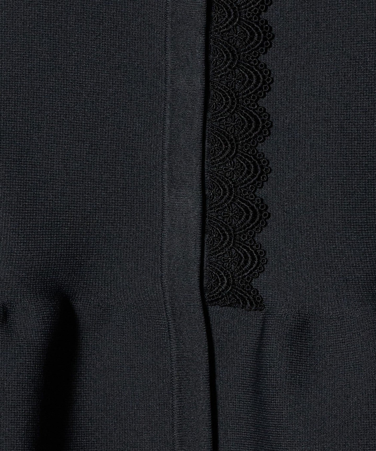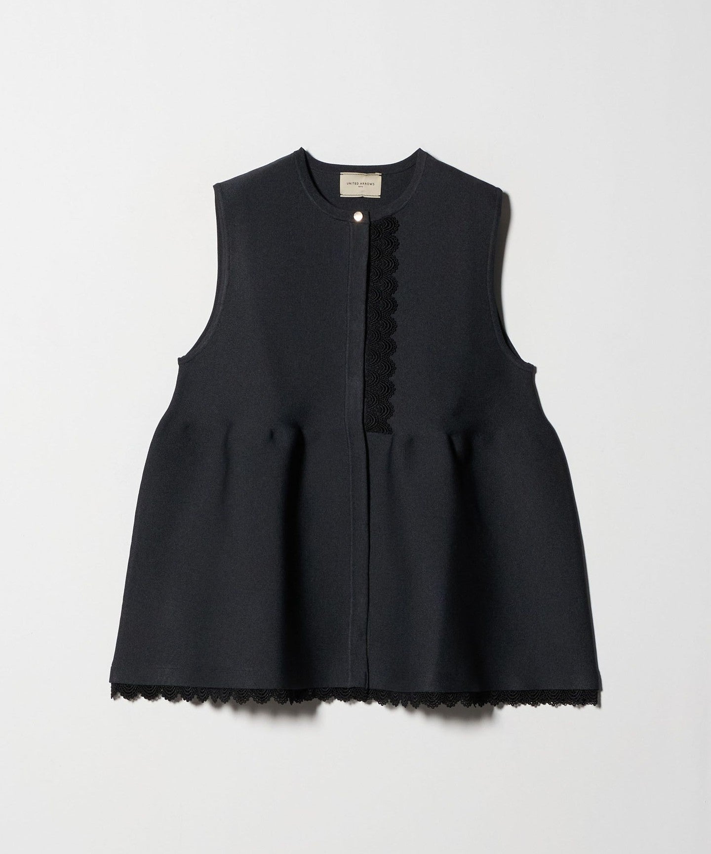This vest features original lace tape on one side of the front and around the hem, creating a glamorous impression.
