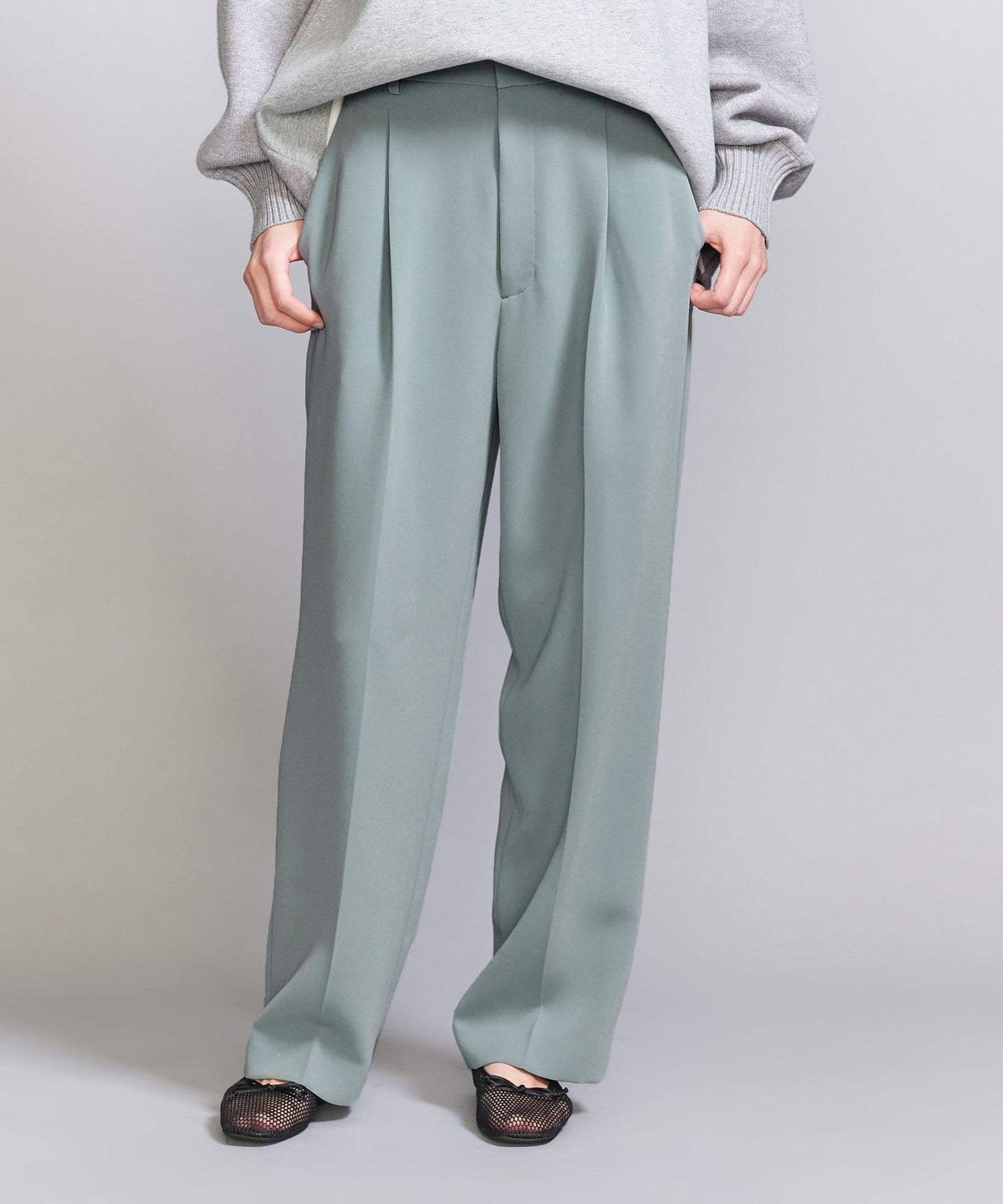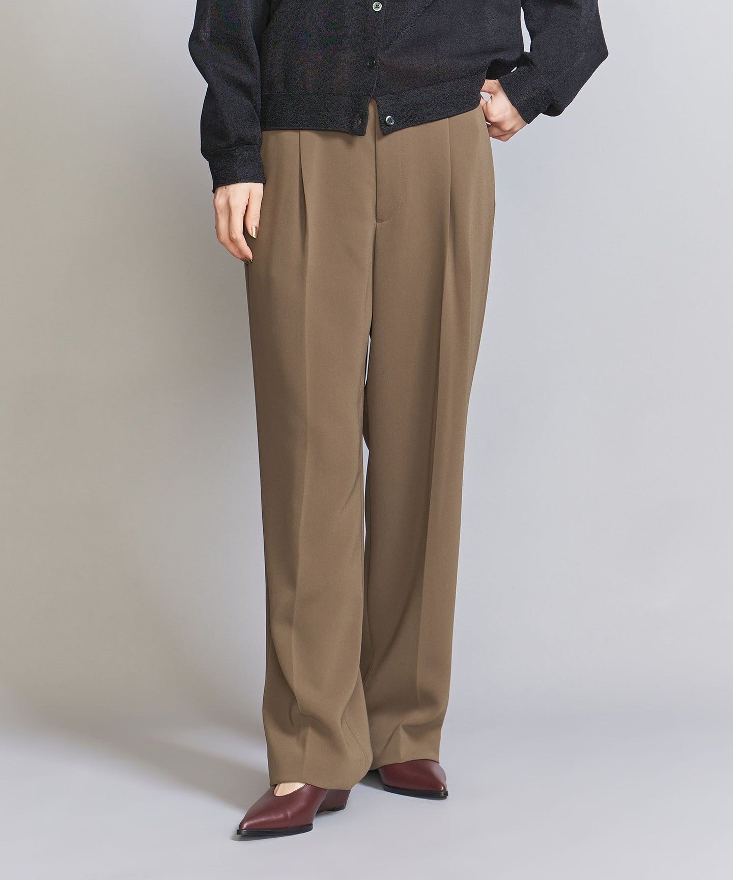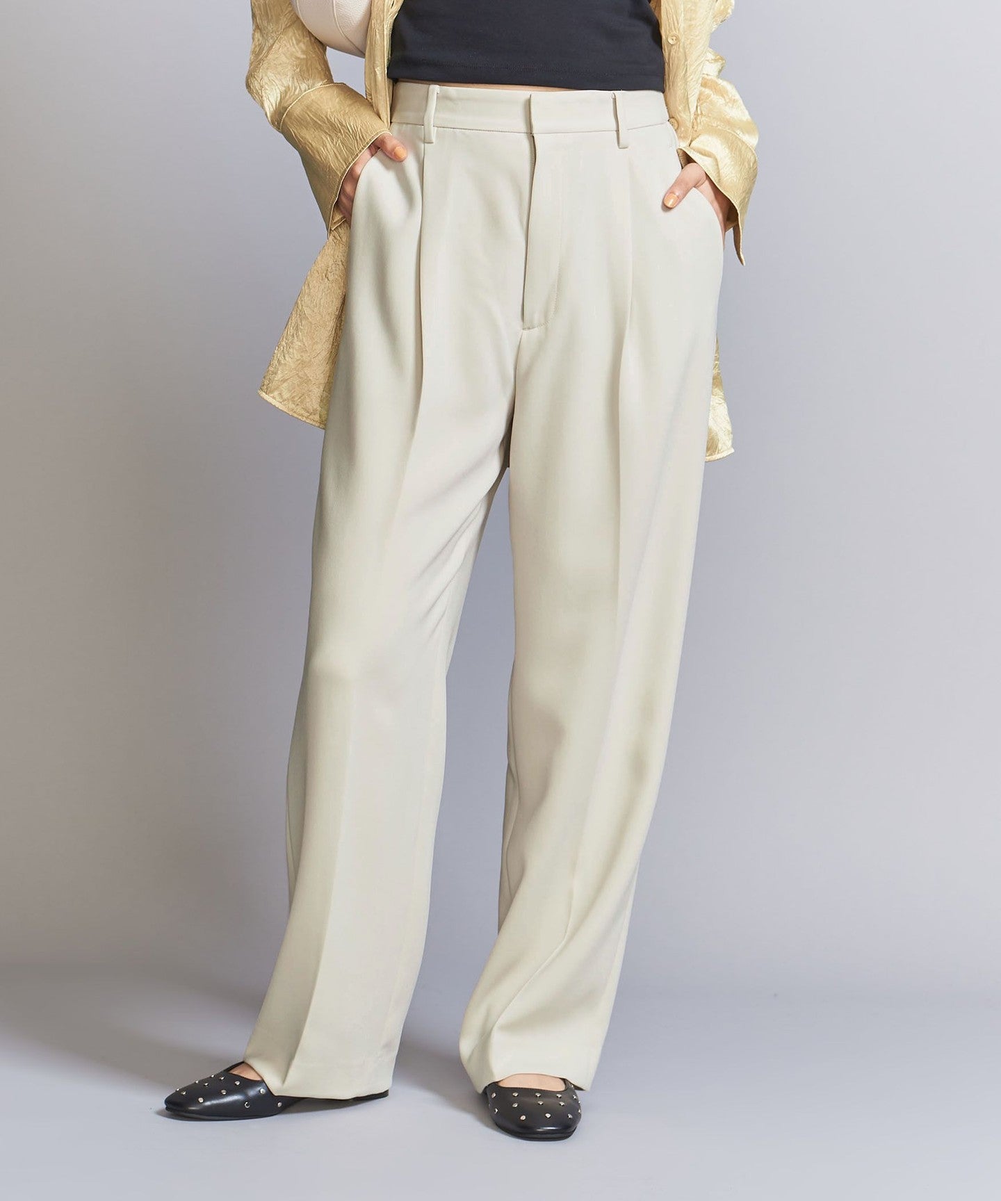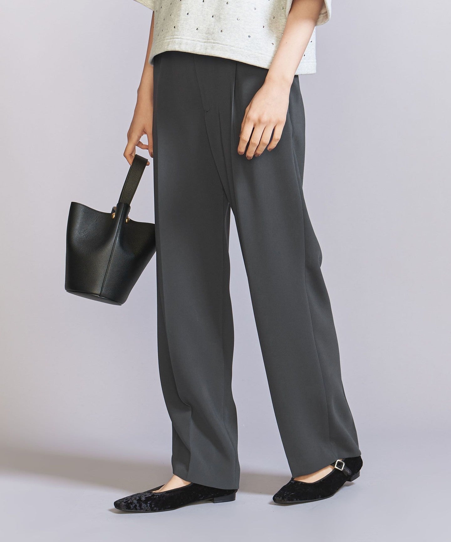 The high waist wraps around the waist, and the center crease with repeated tucks makes it both comfortable to wear and looks stylish.