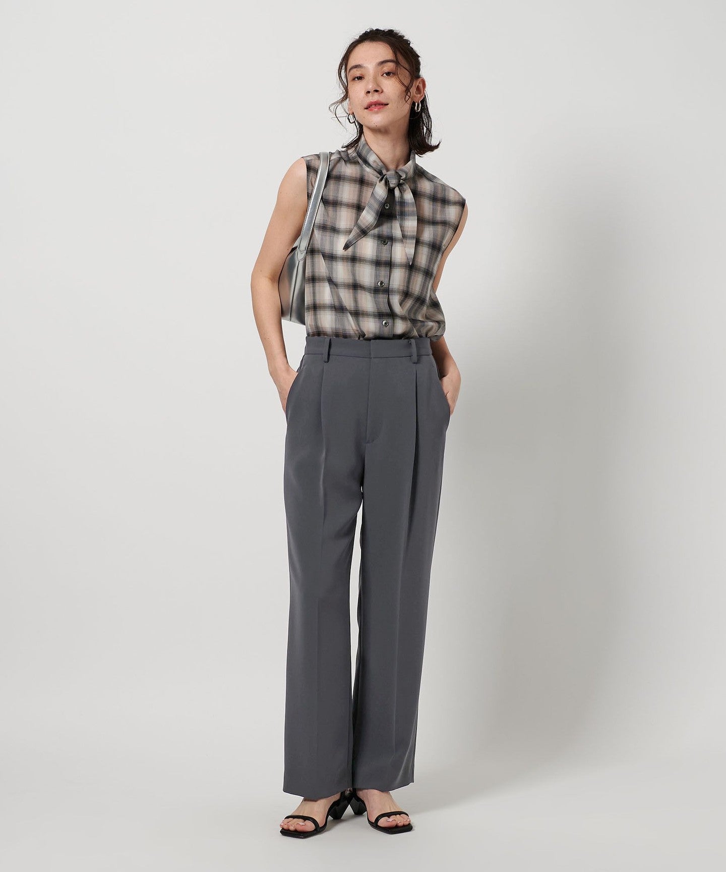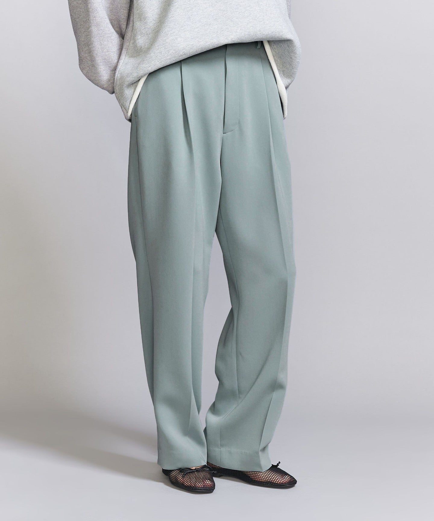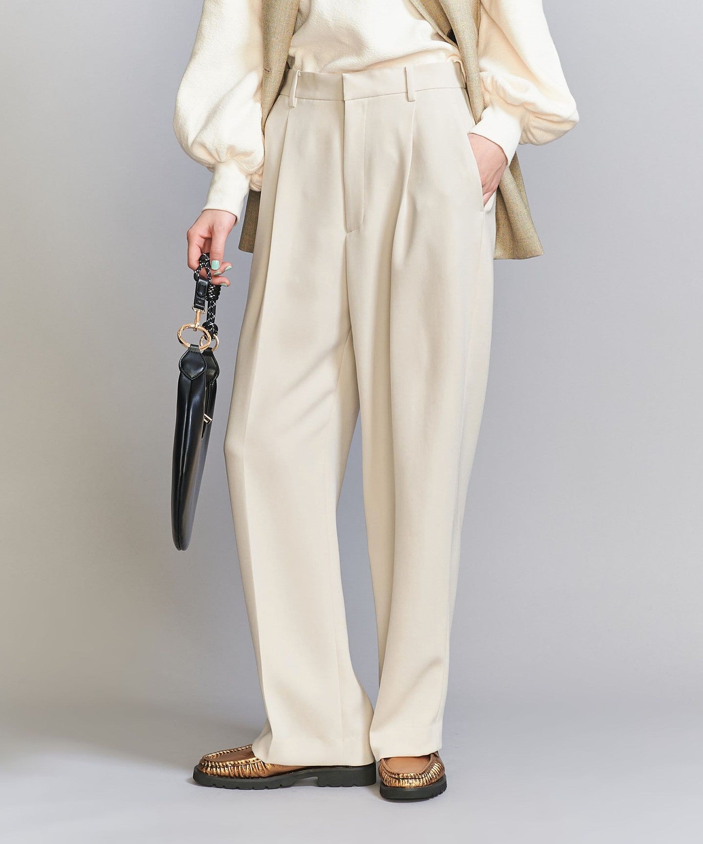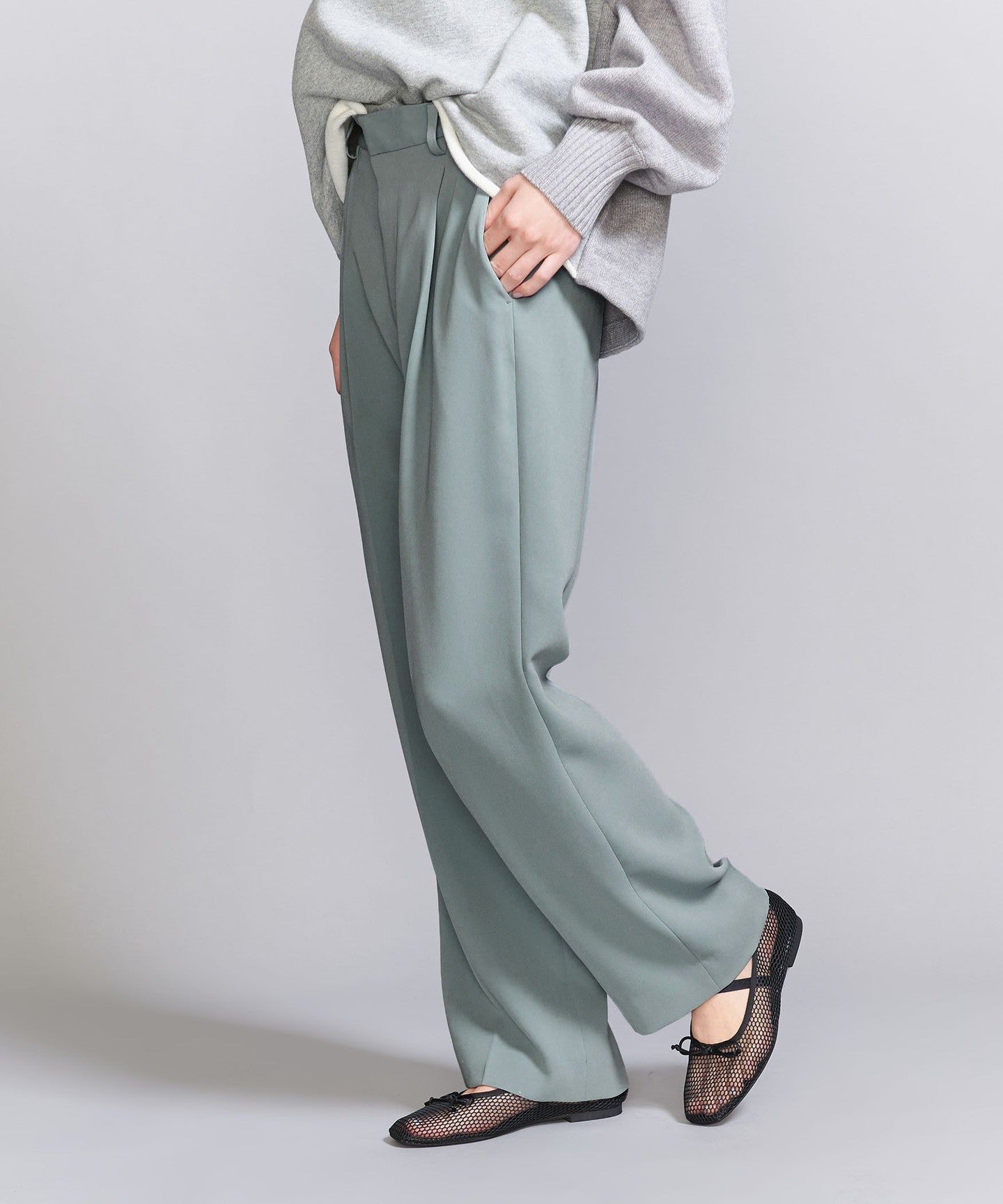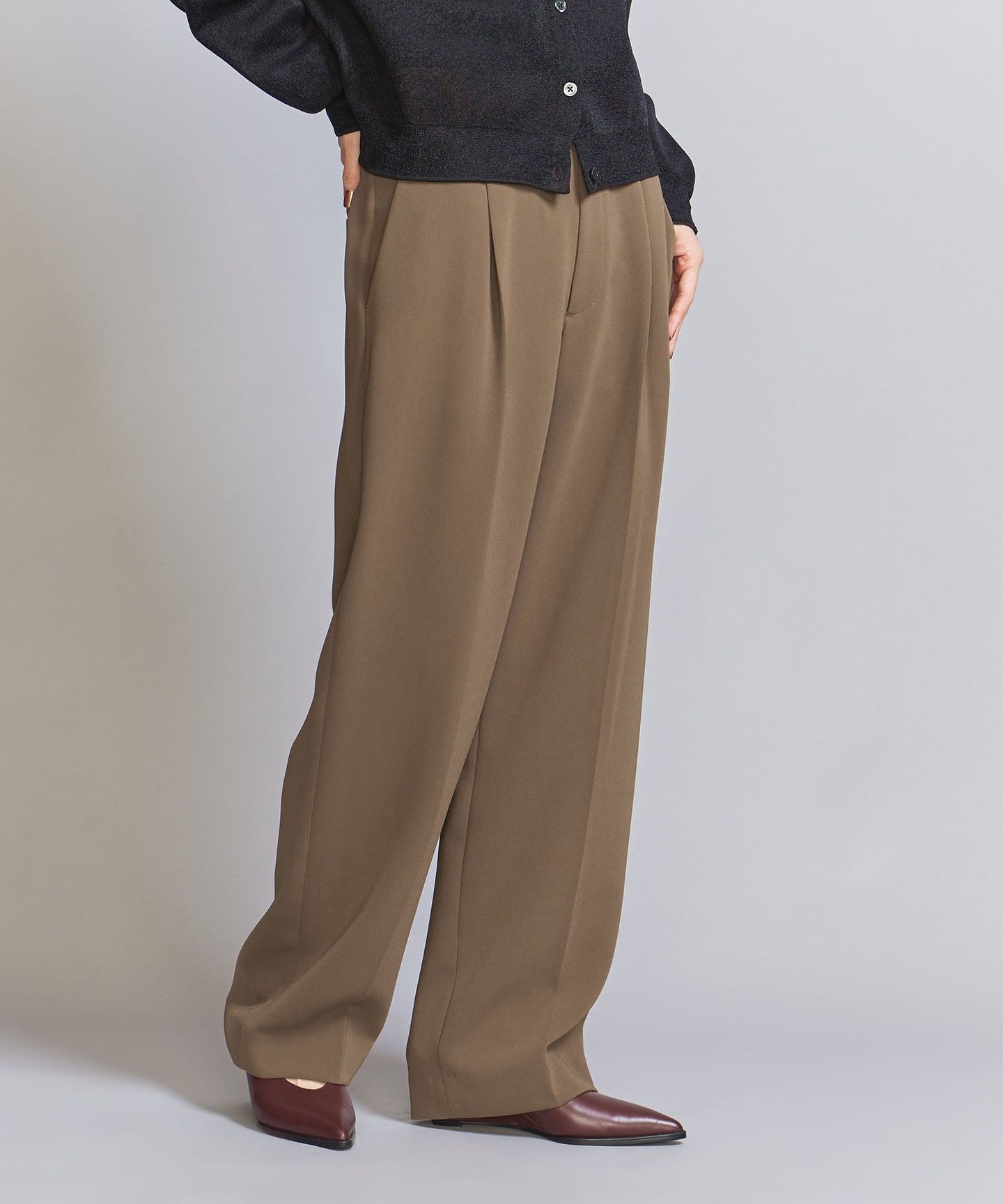 The high waist wraps around the waist, and the center crease with repeated tucks makes it both comfortable to wear and looks stylish.