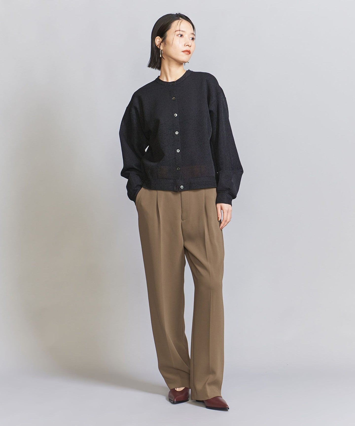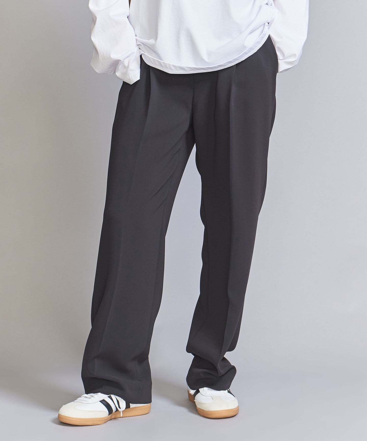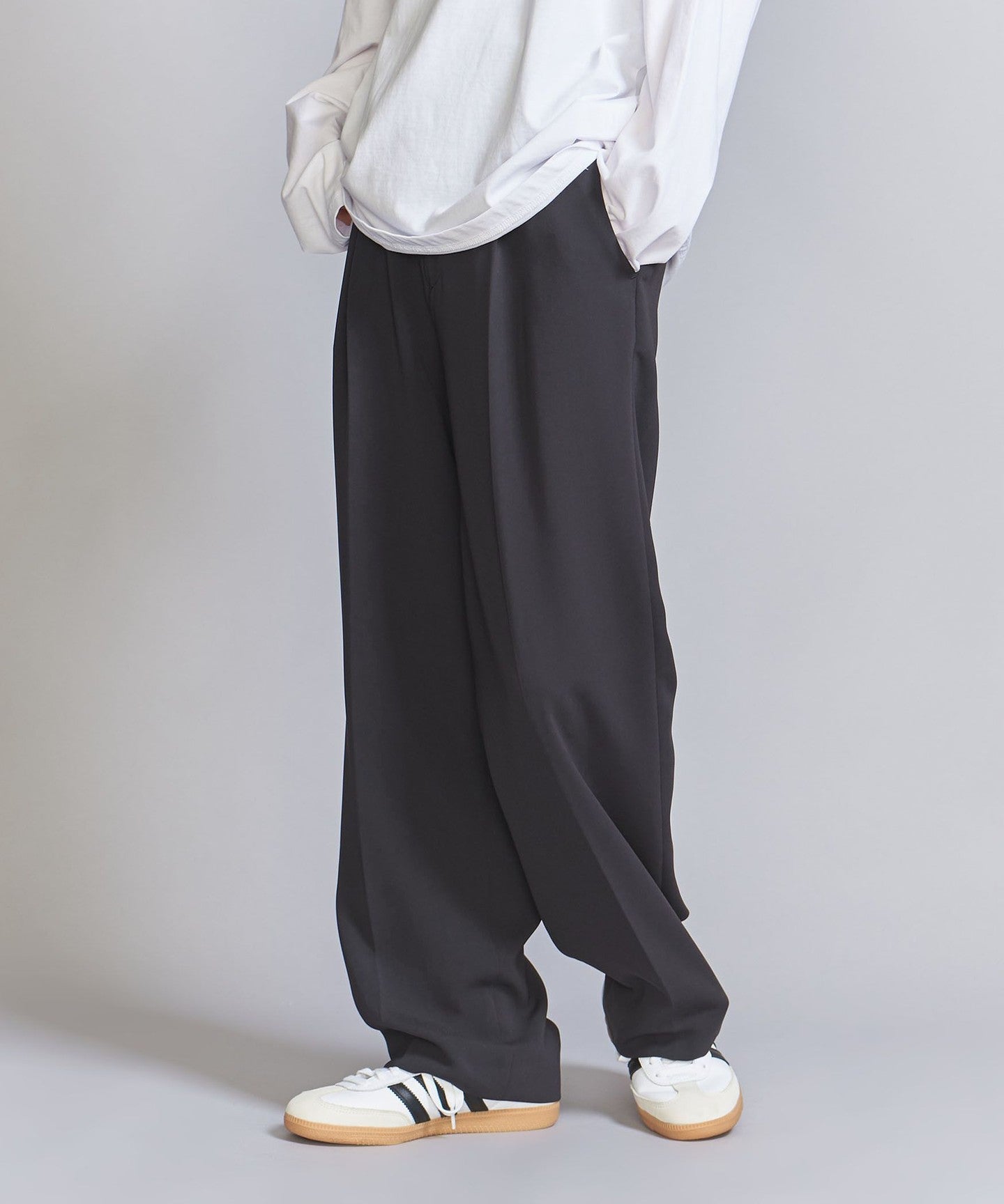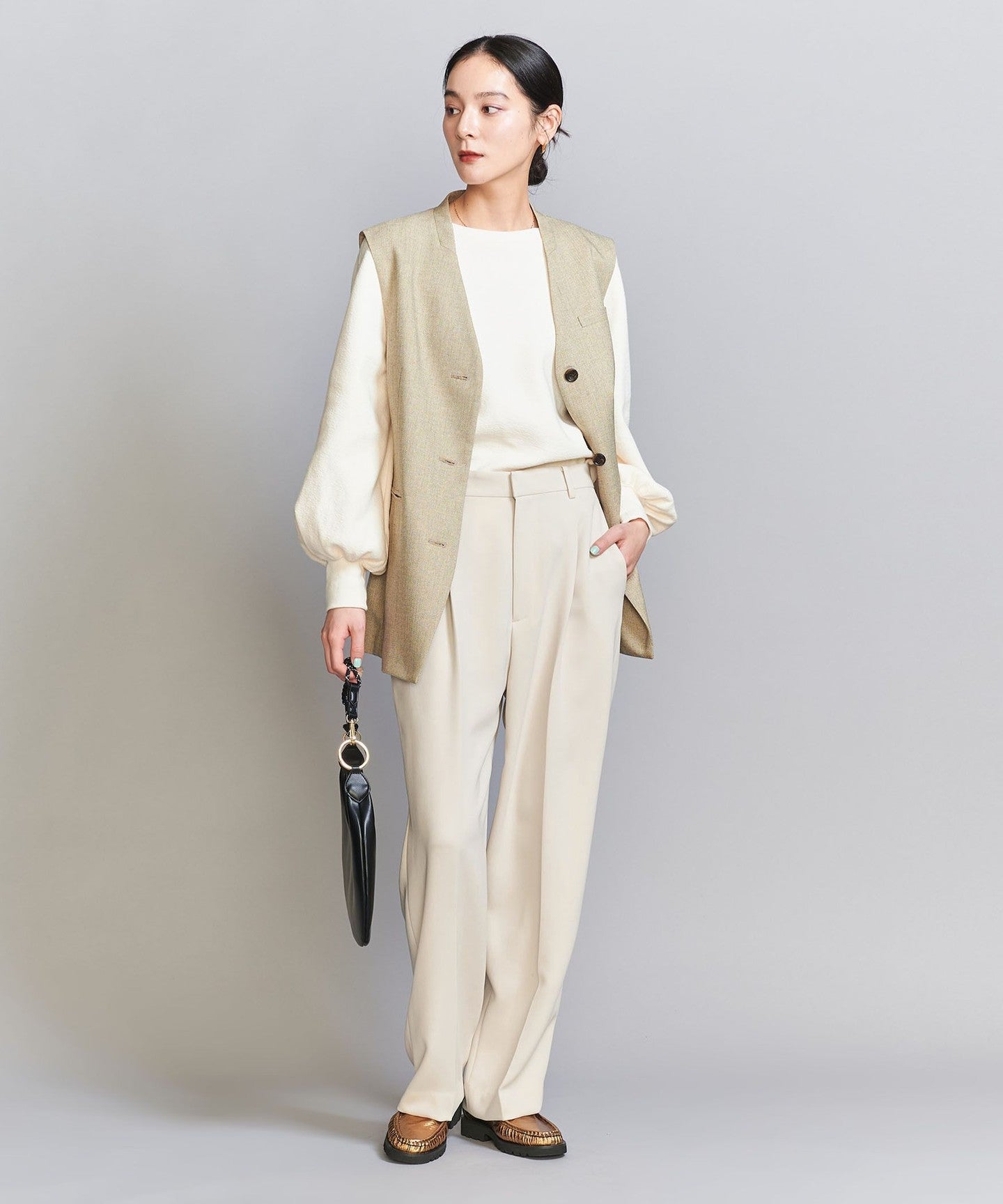 The high waist wraps around the waist, and the center crease with repeated tucks makes it both comfortable to wear and looks stylish.