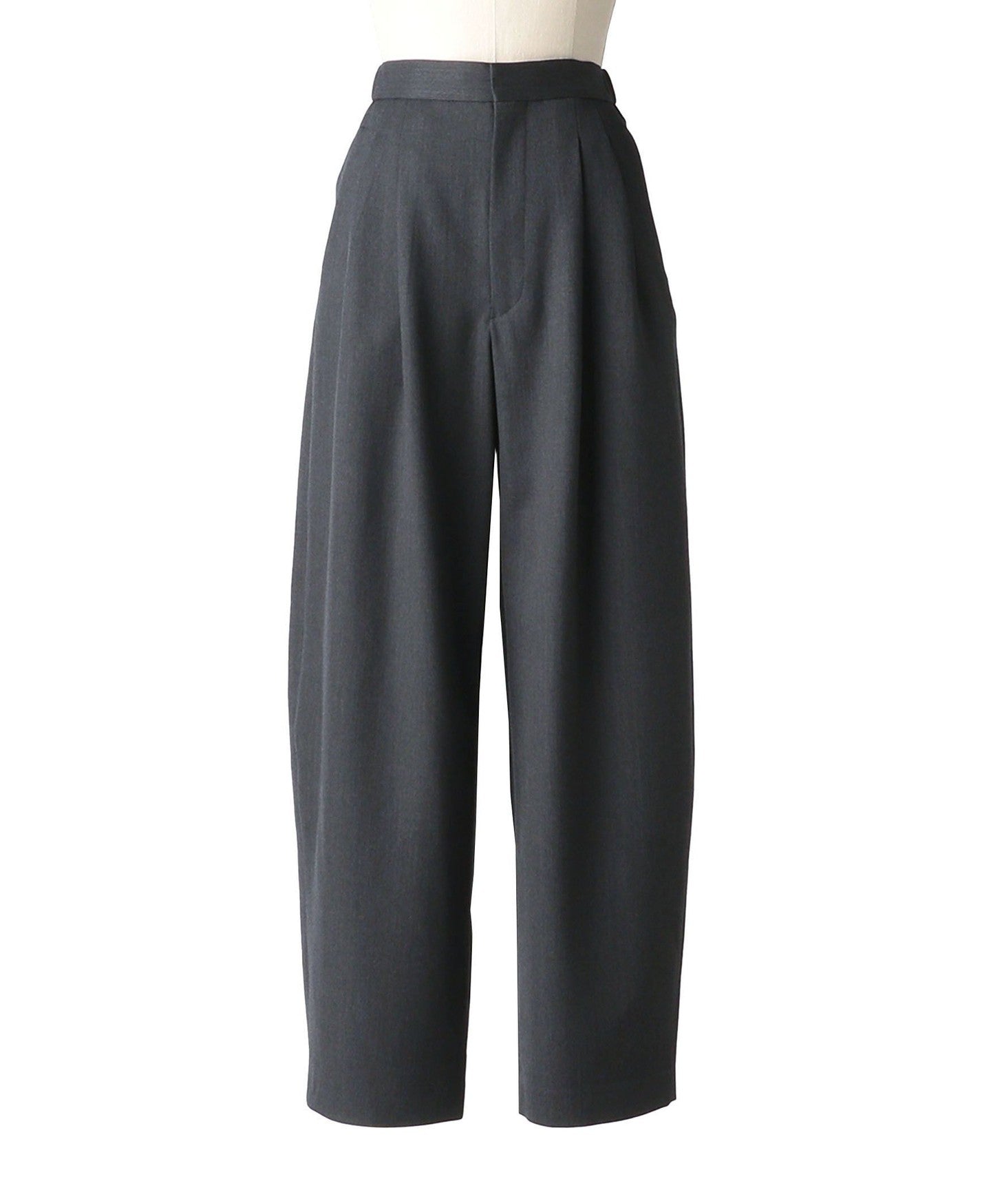 These pants feature a relaxed, three-dimensional silhouette with tucks.