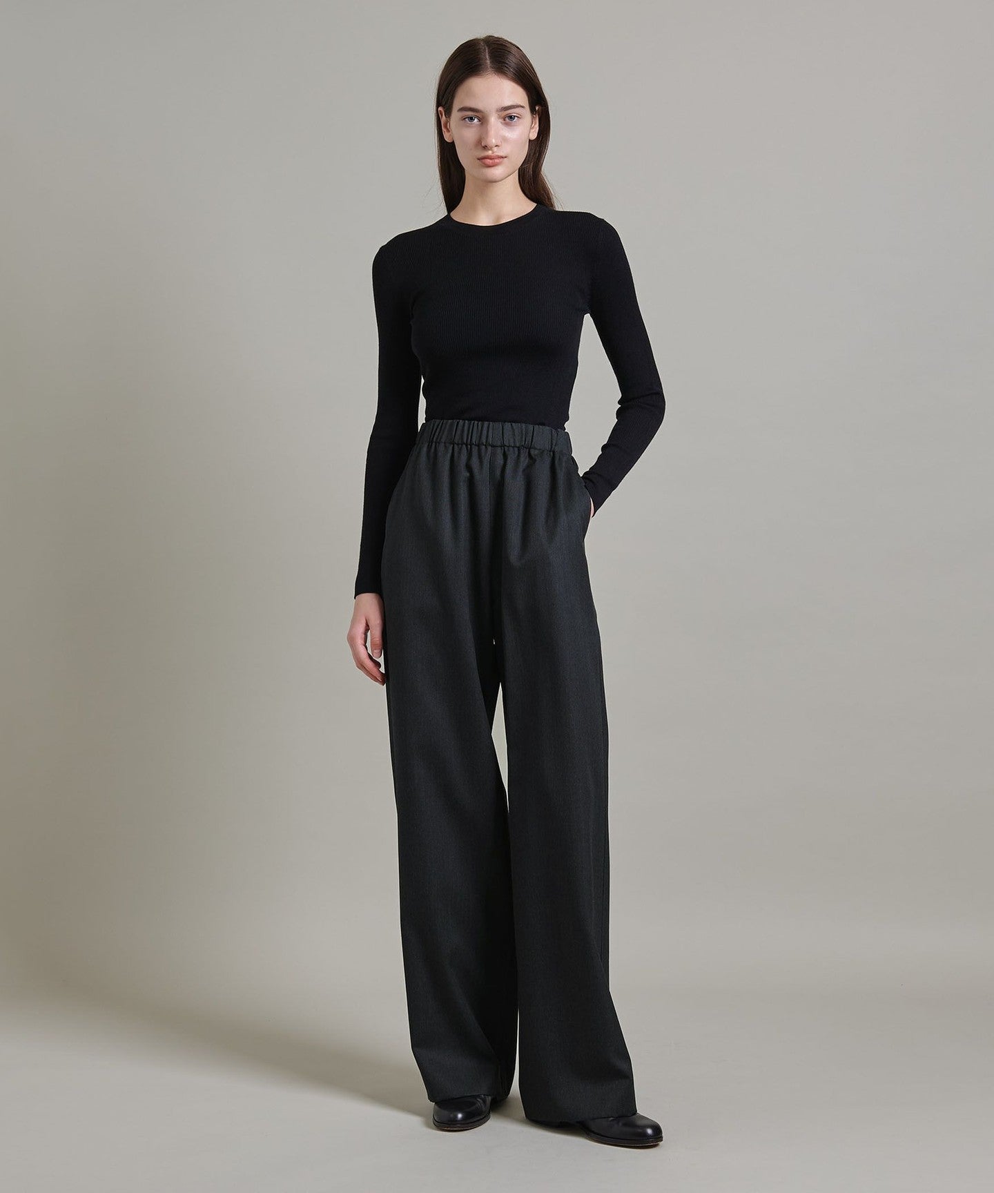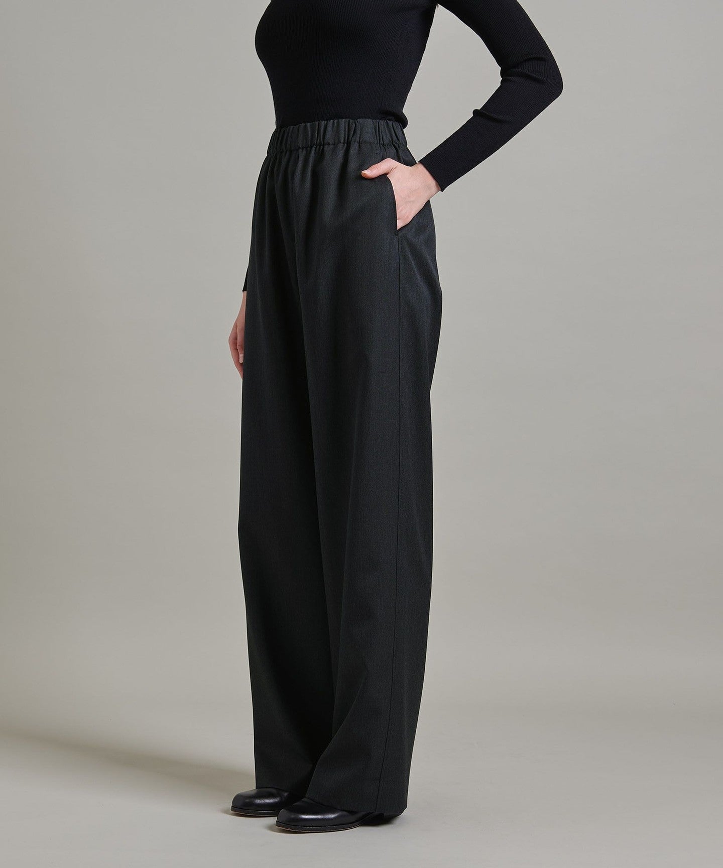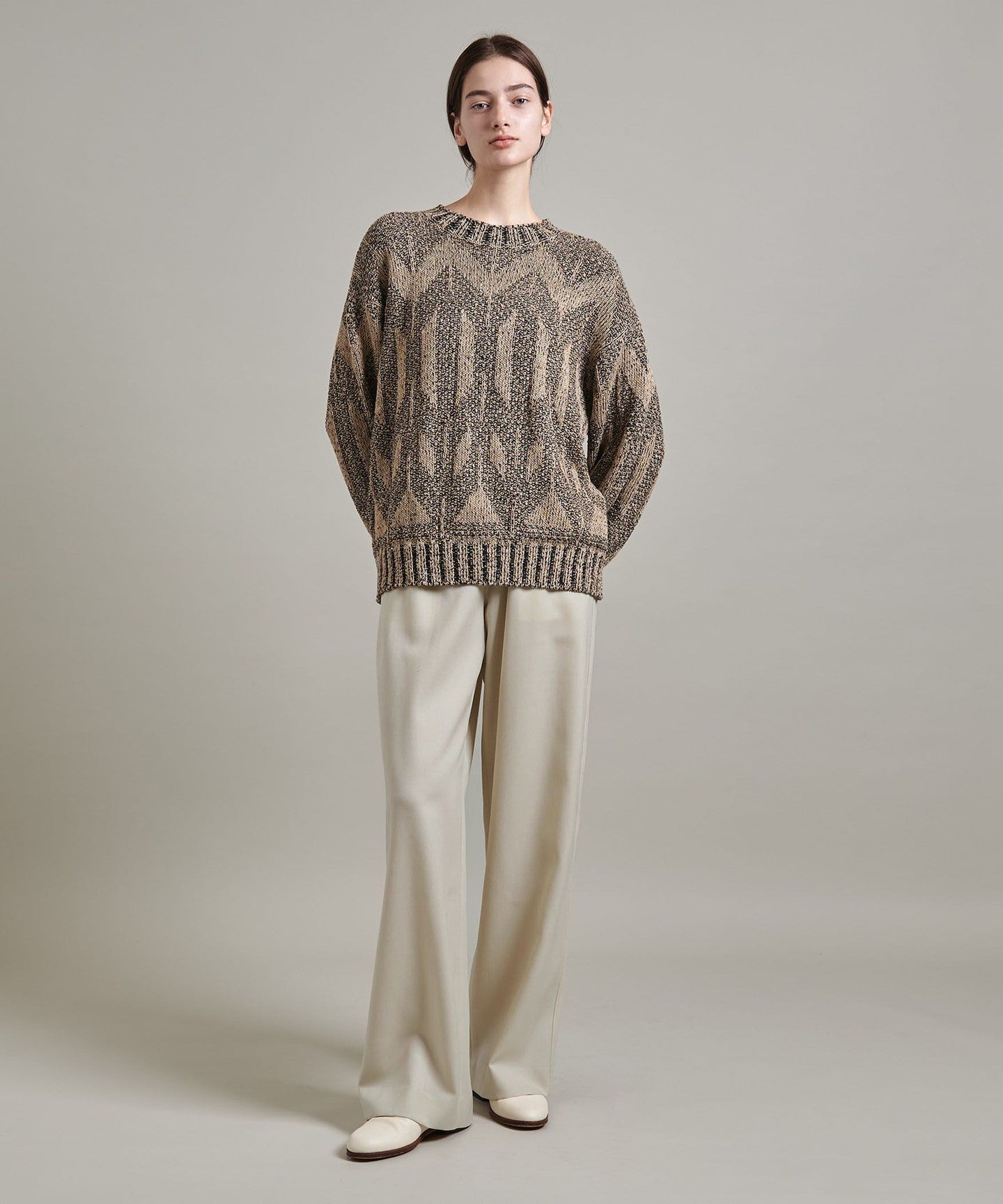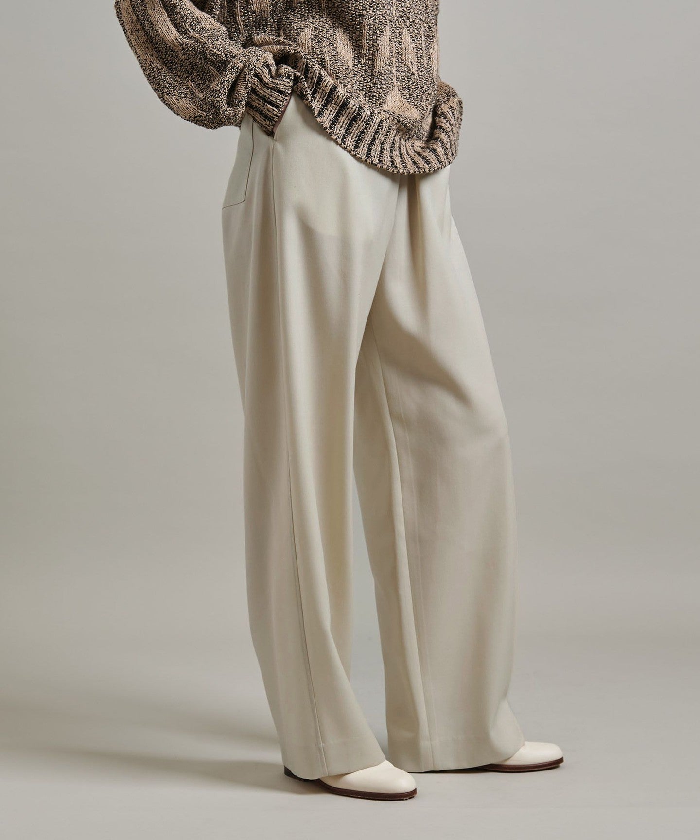 Loose-fitting pants with a mannish feel