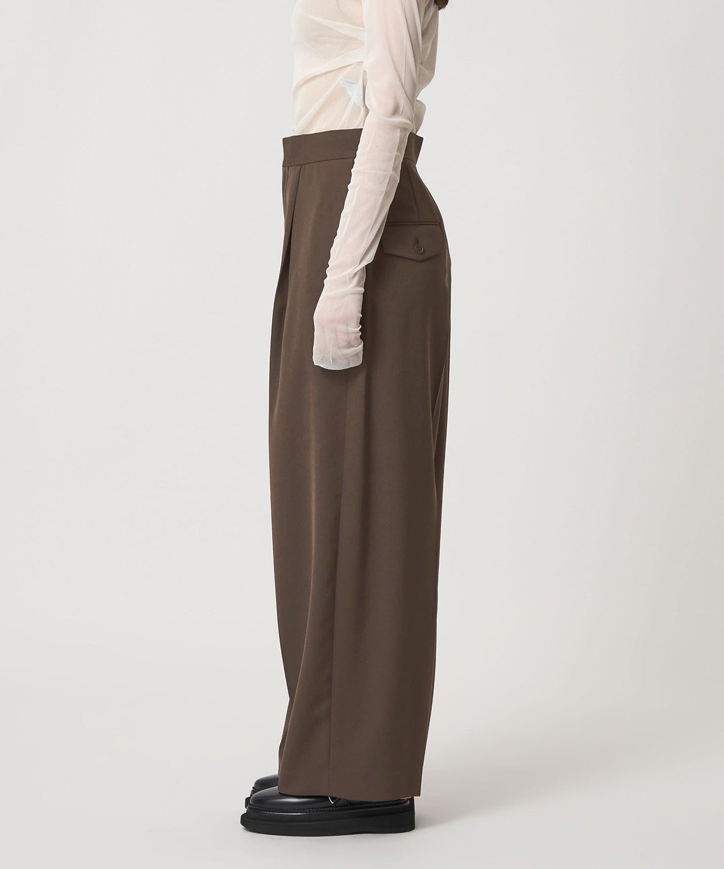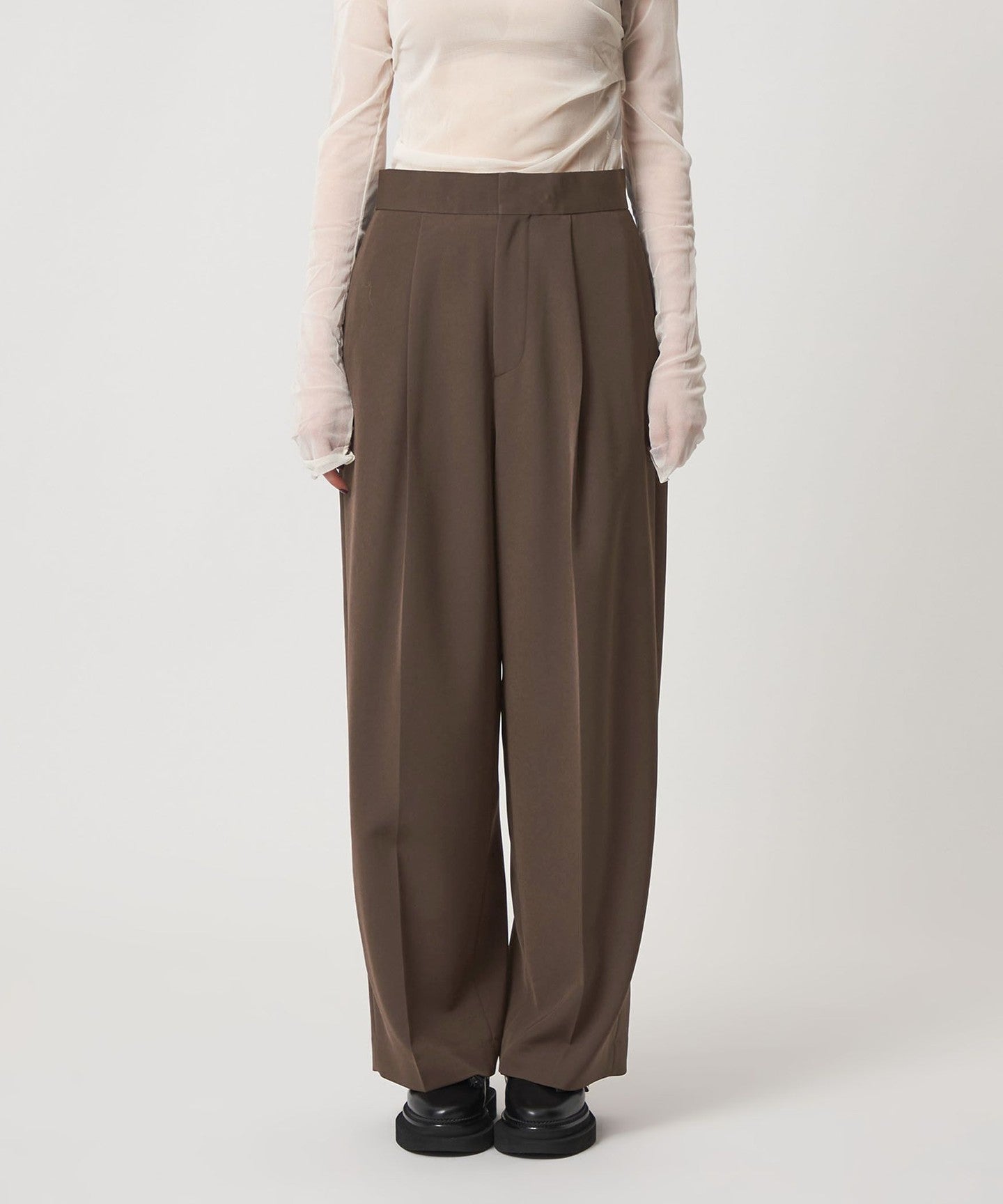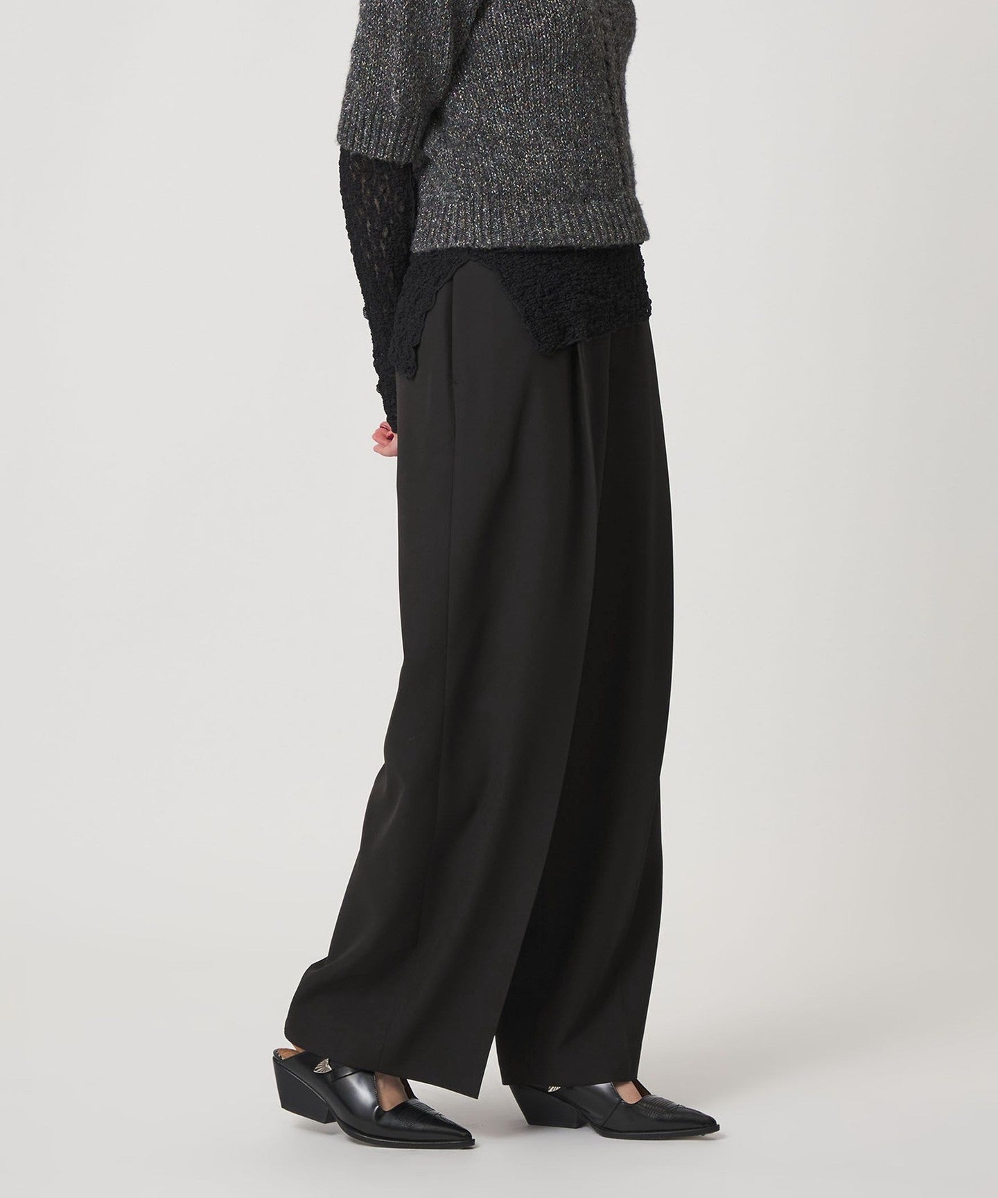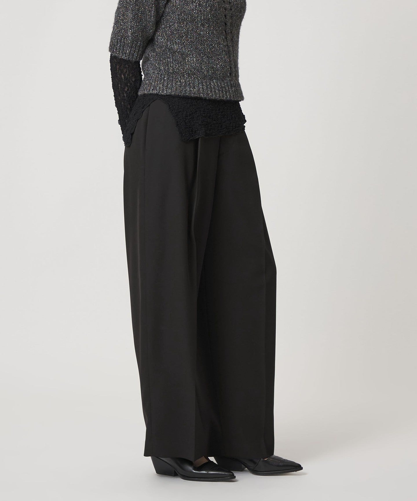 タックを施したたっぷりしたわたりと股上深めのワイドパンツ。