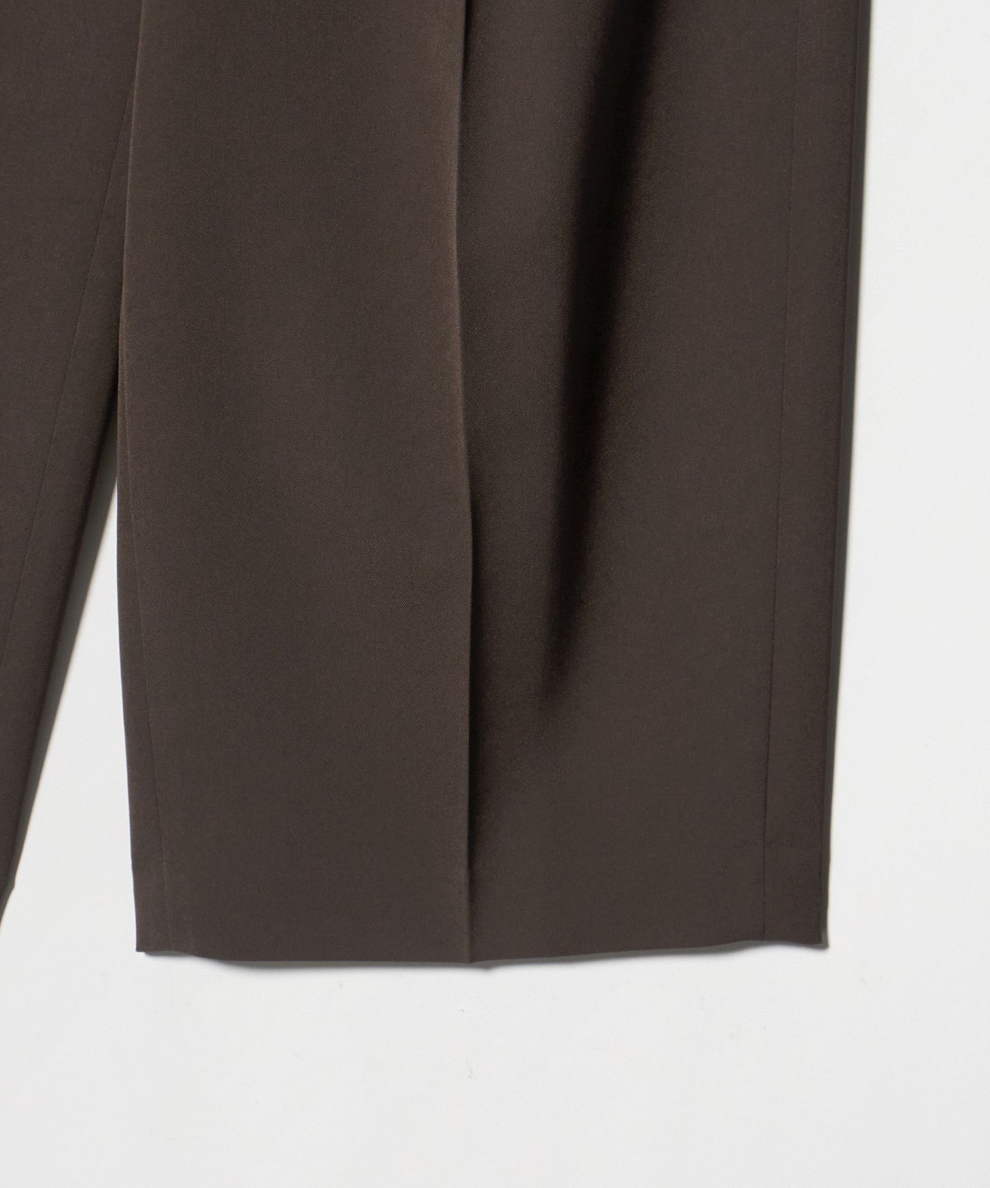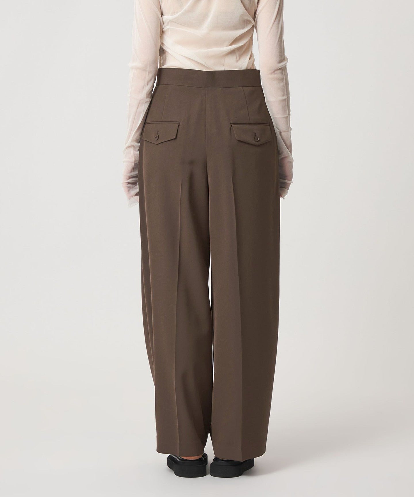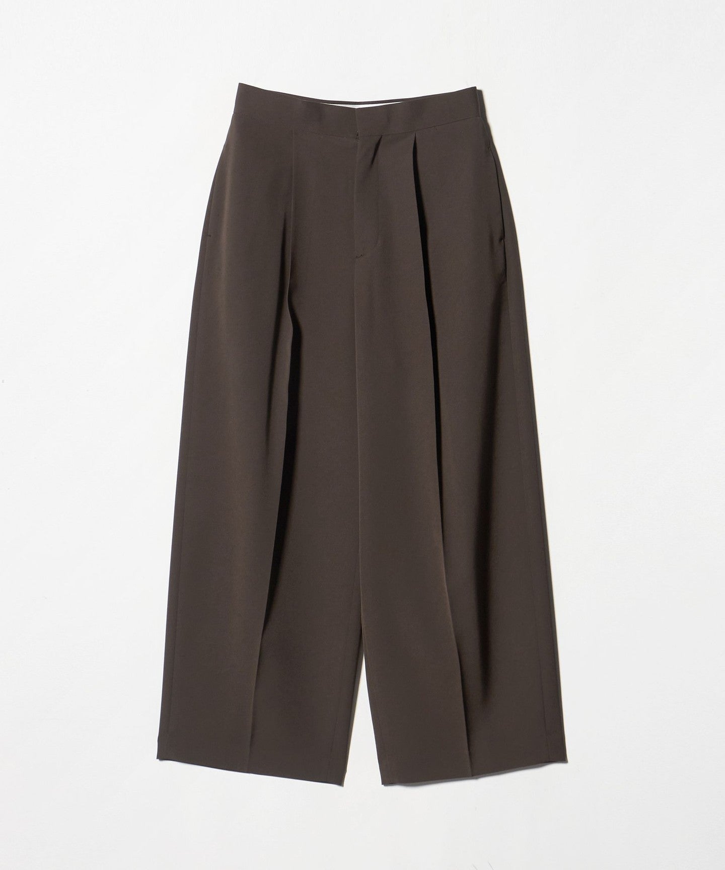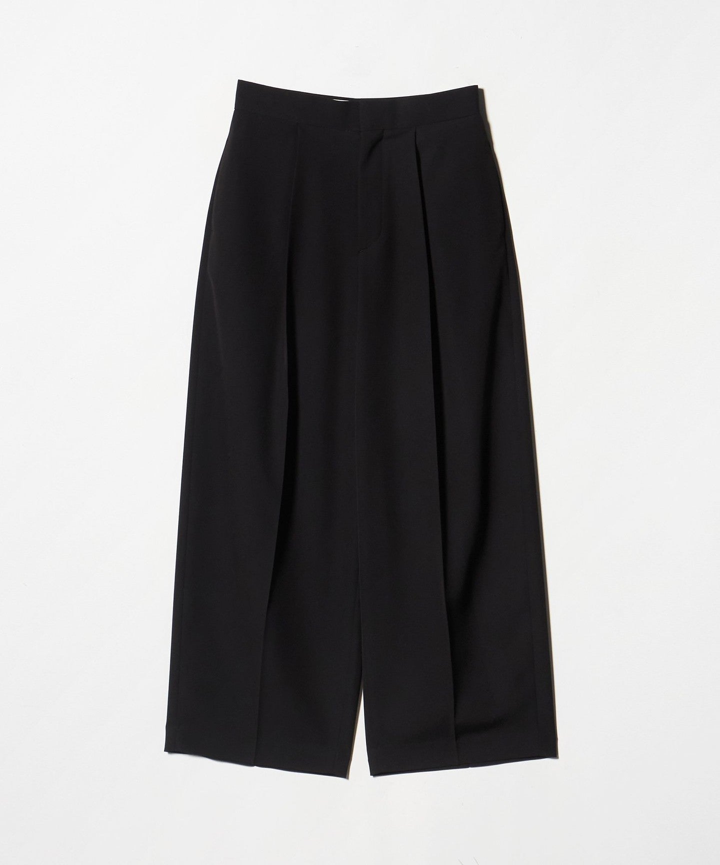 タックを施したたっぷりしたわたりと股上深めのワイドパンツ。