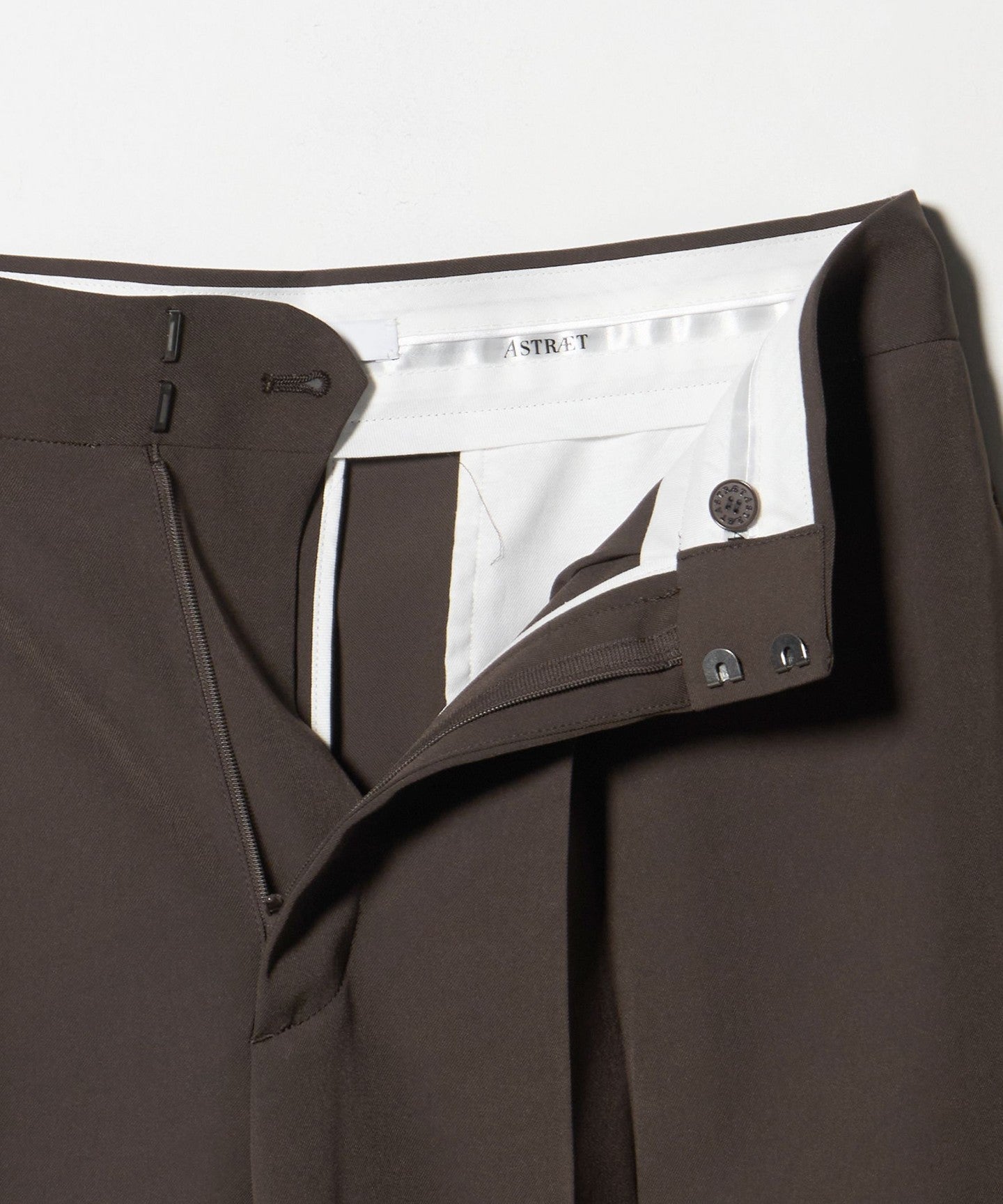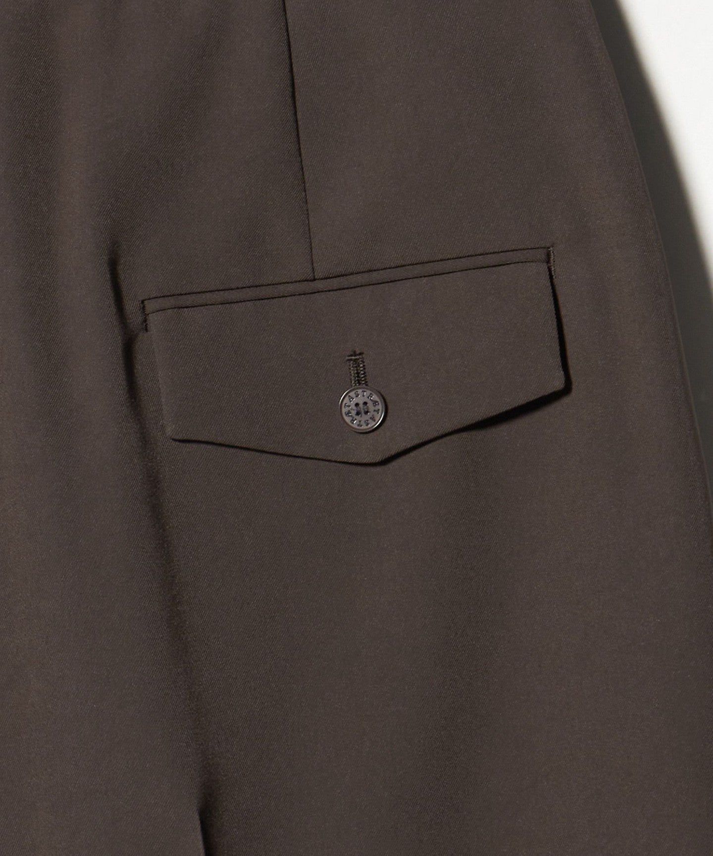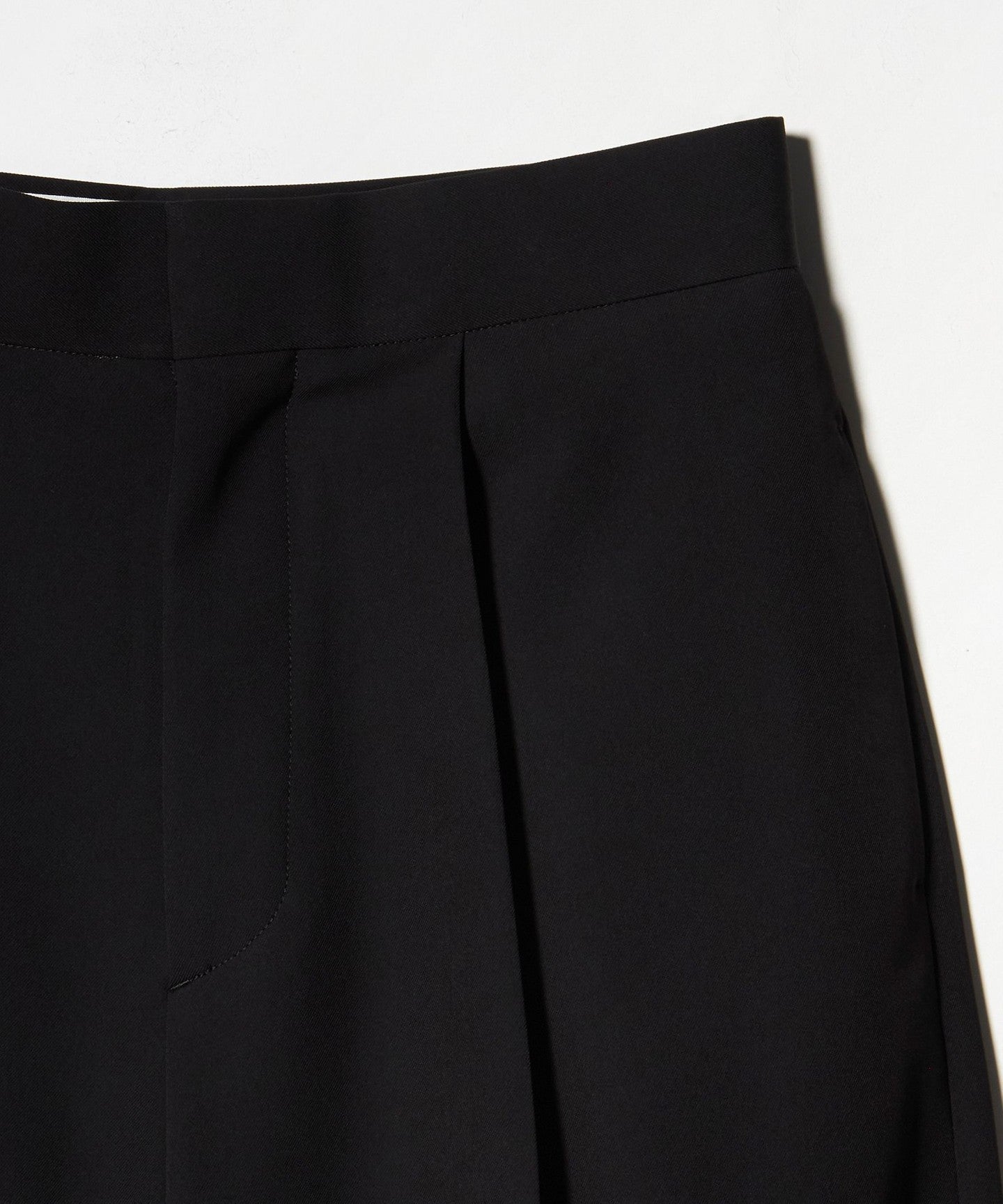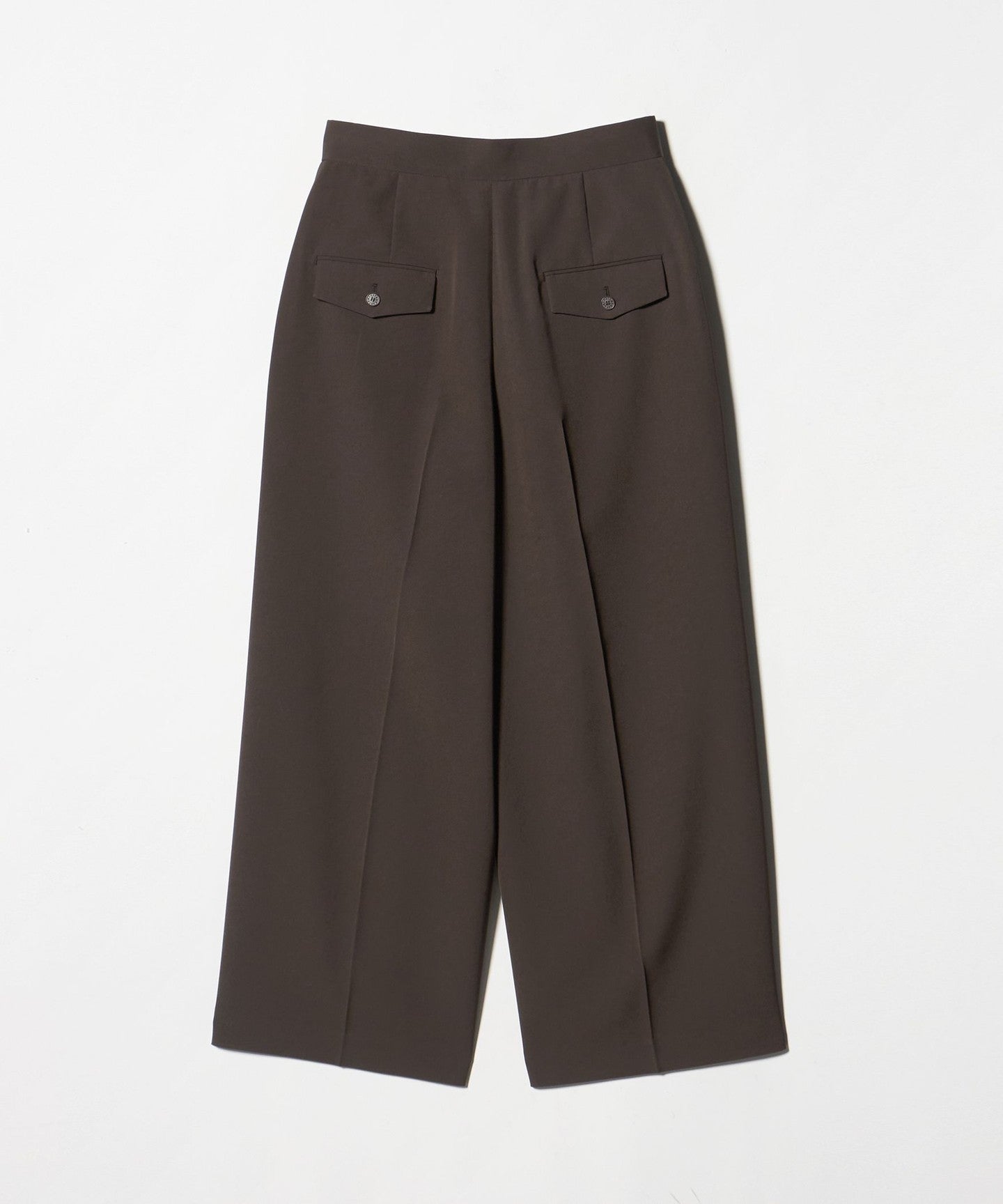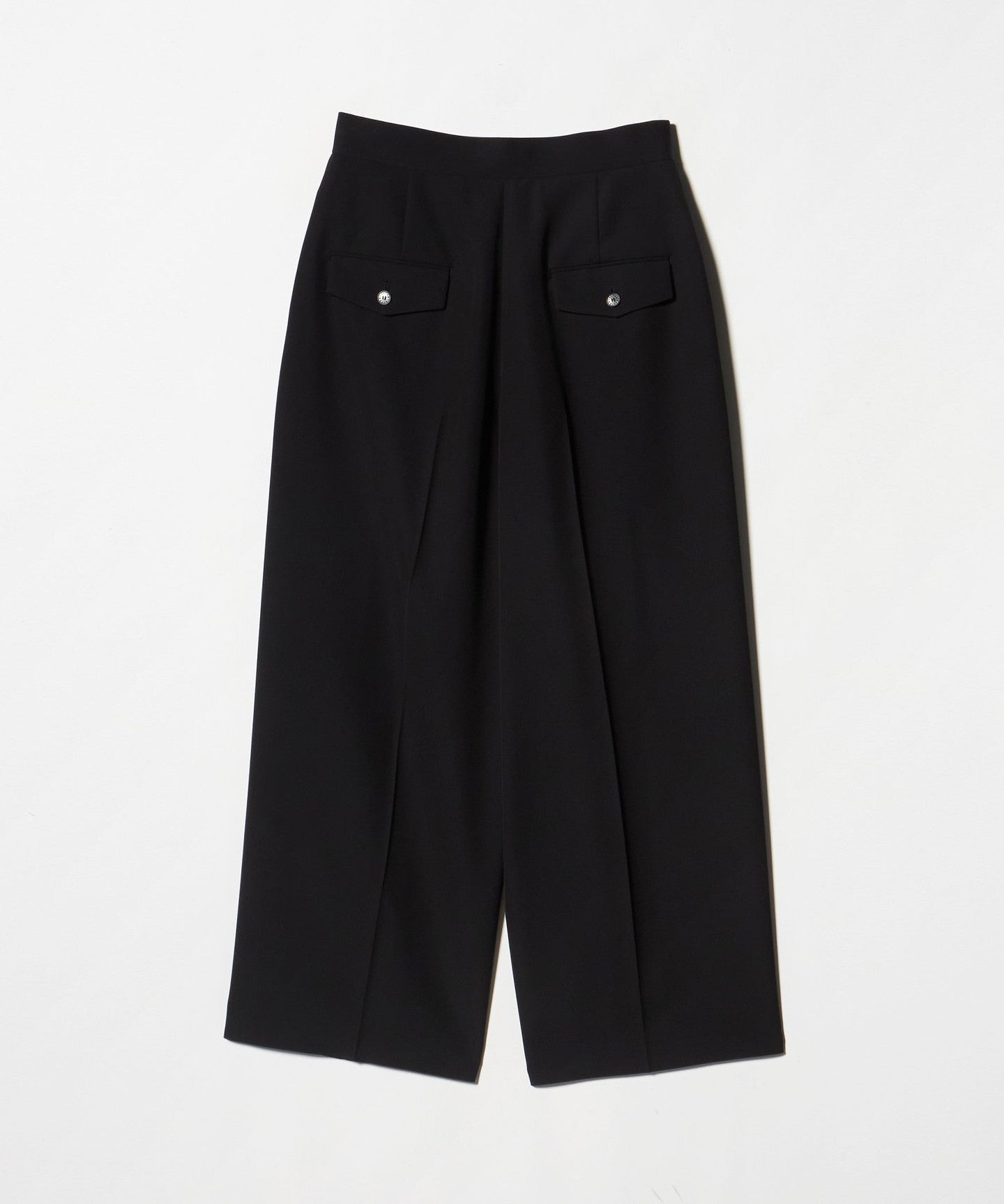 タックを施したたっぷりしたわたりと股上深めのワイドパンツ。