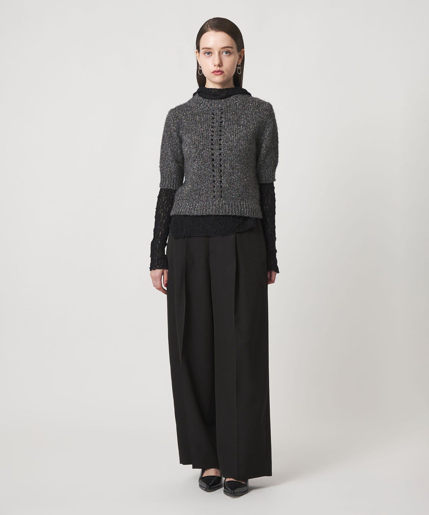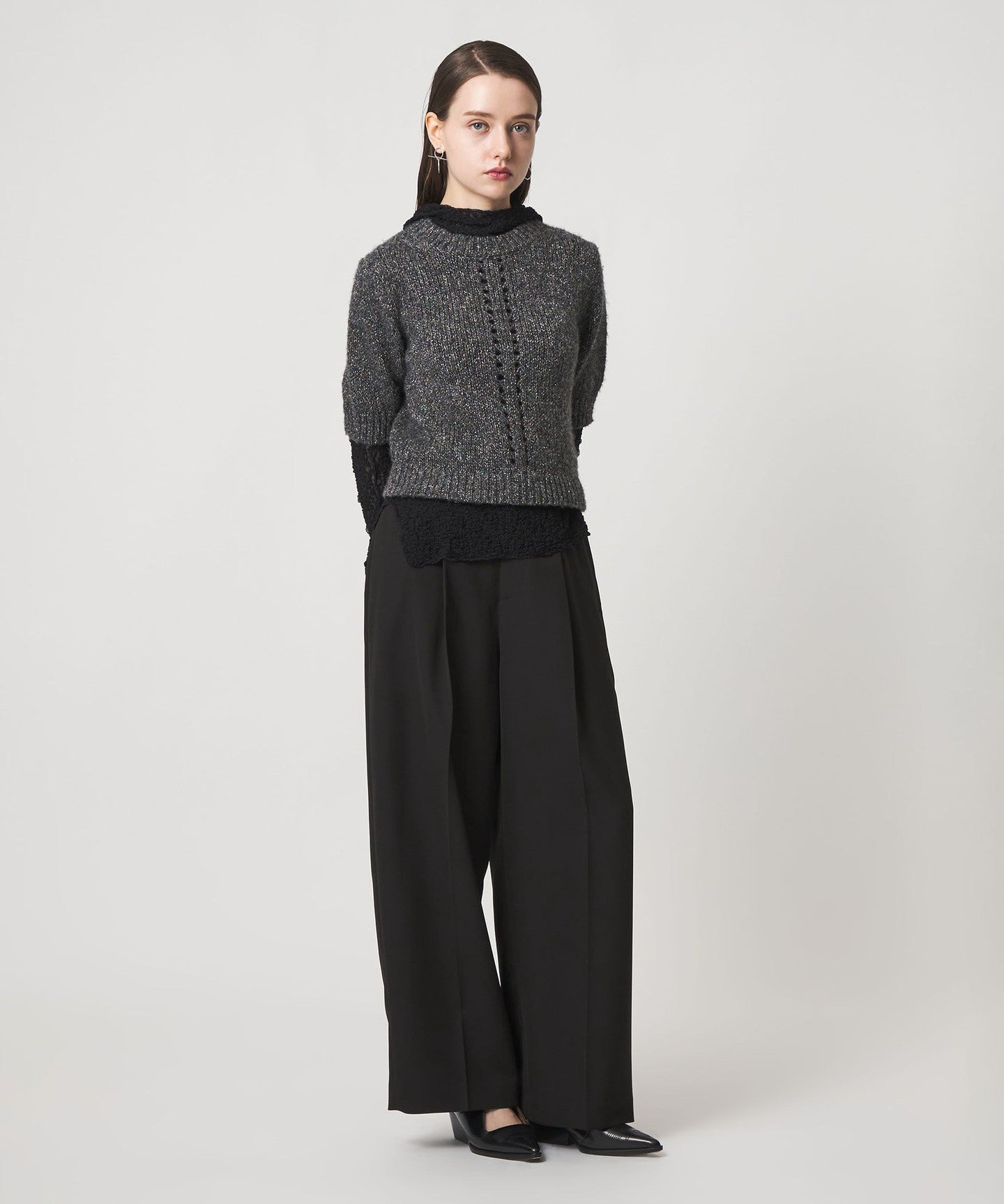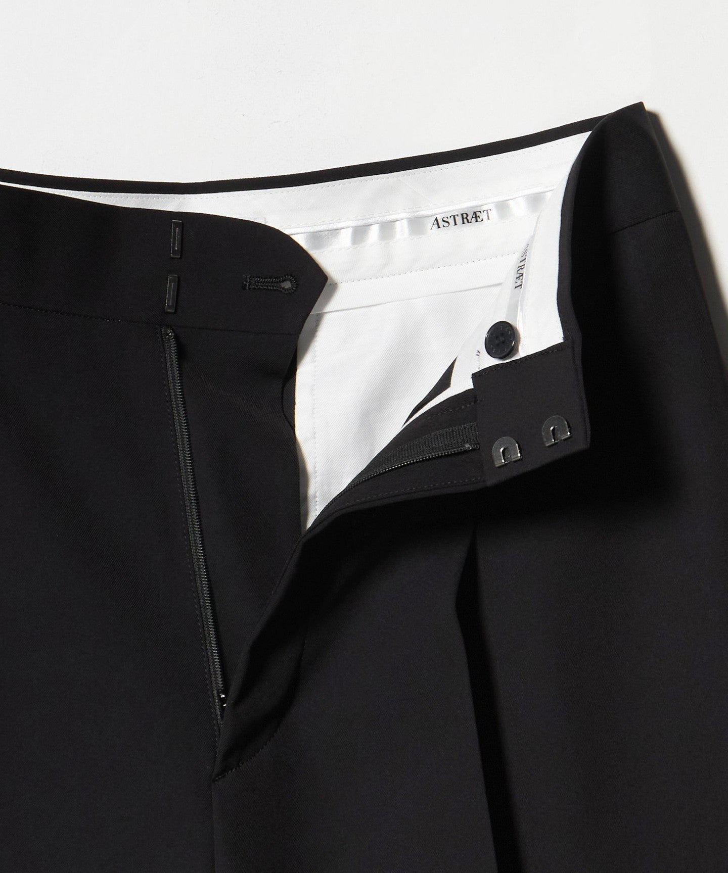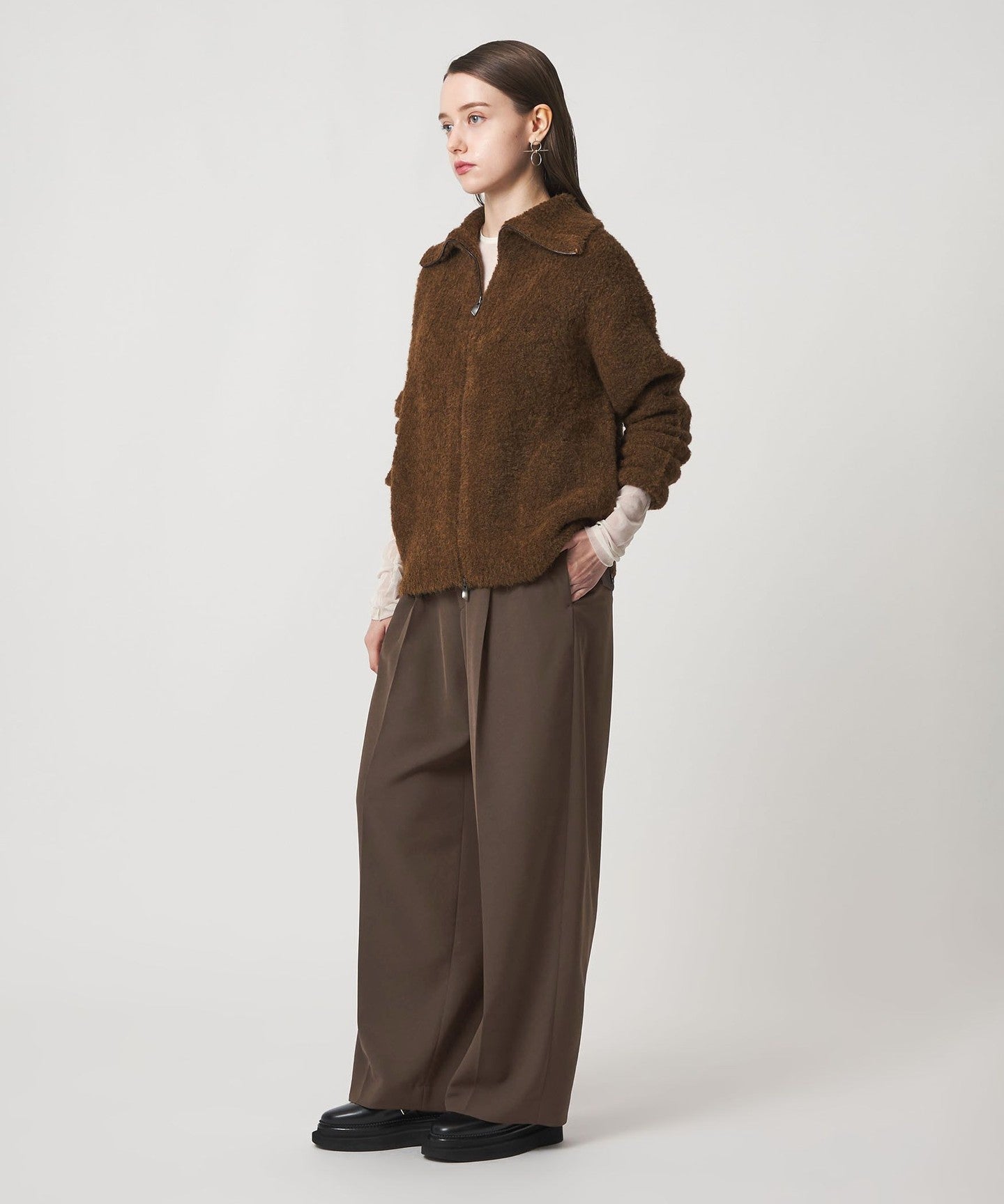 タックを施したたっぷりしたわたりと股上深めのワイドパンツ。