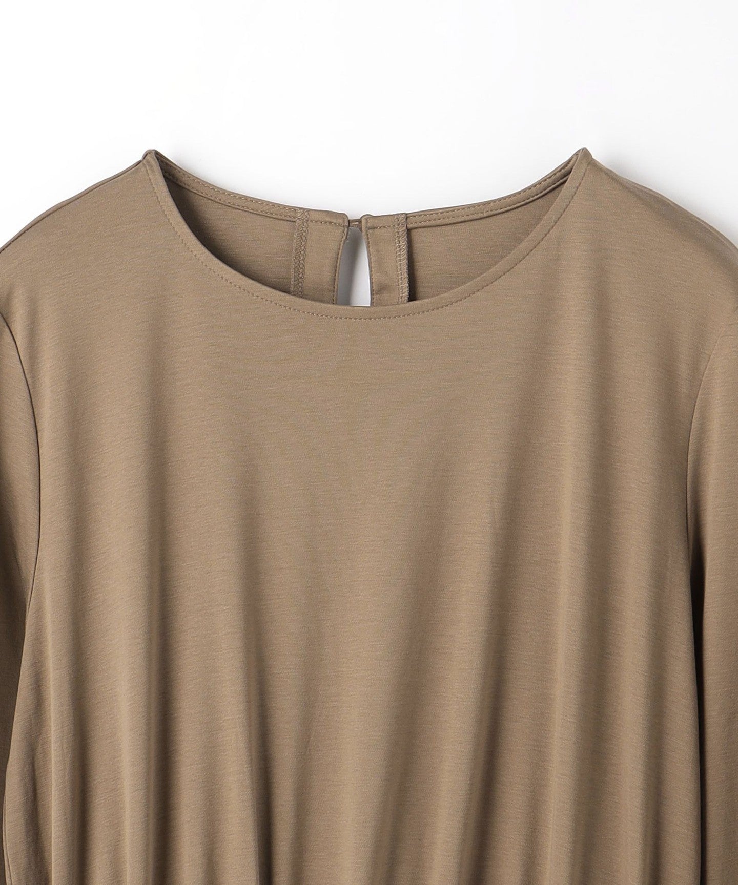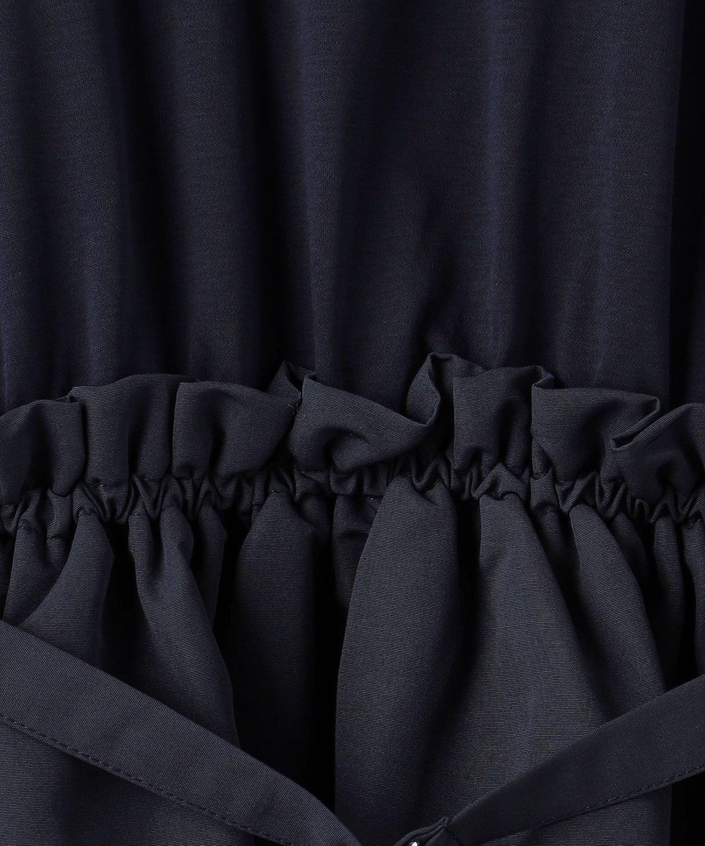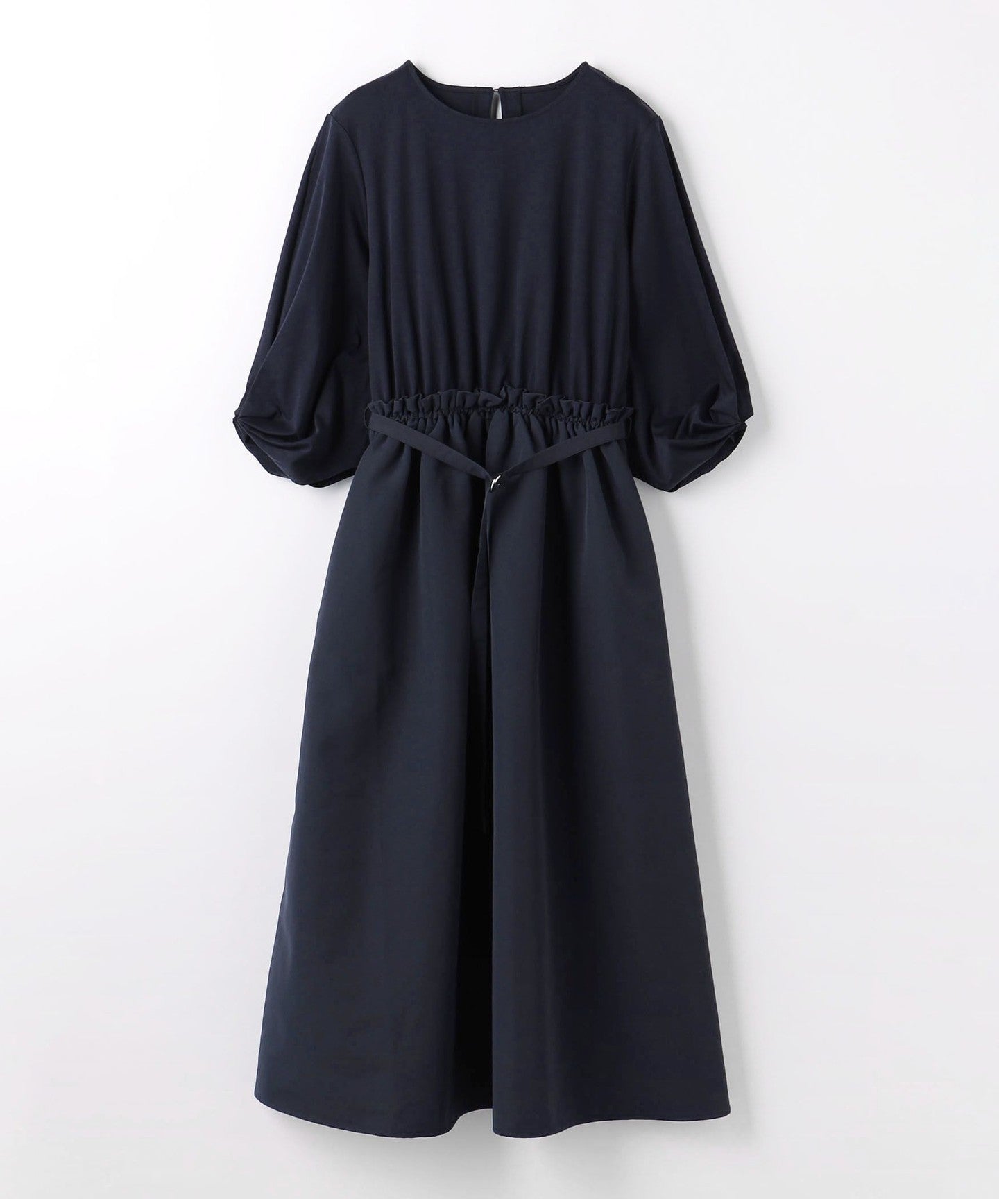 This dress features a skirt made of a smooth material and an upper body made of cut and sew material.