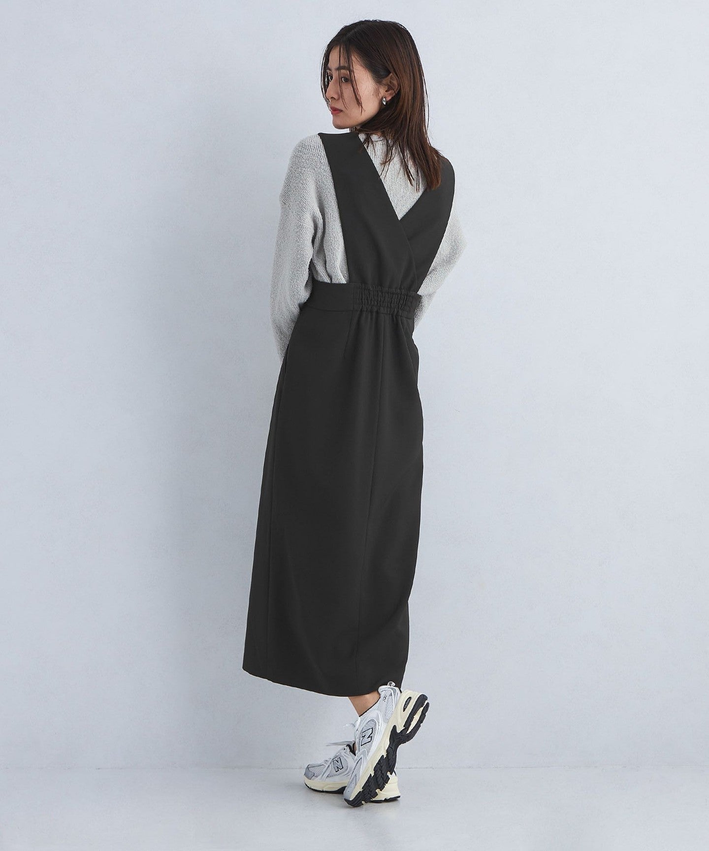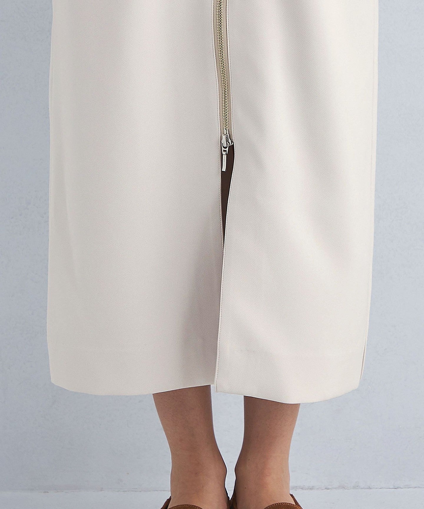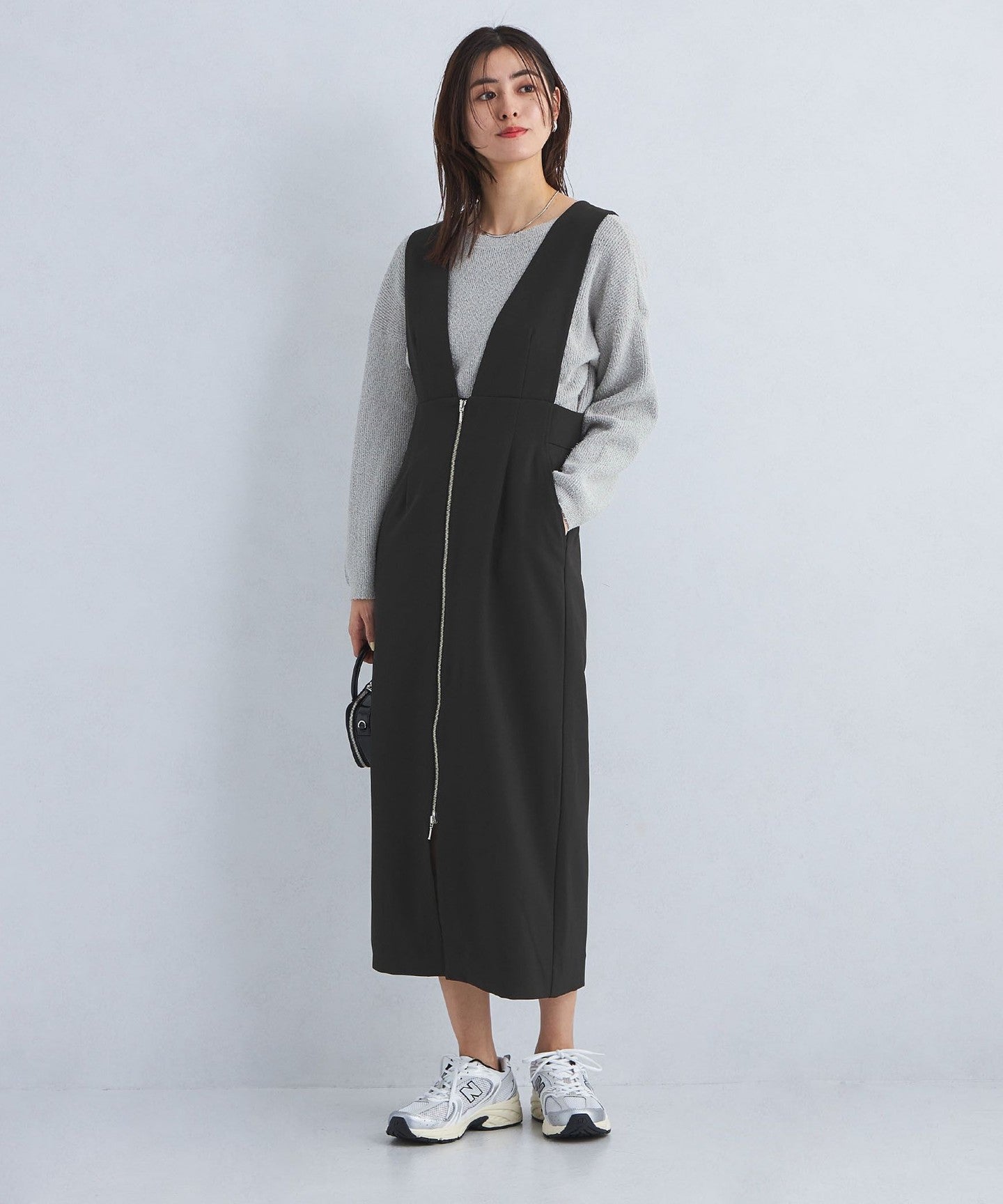 This jumper skirt with zip details shows just the right amount of skin like a slit skirt, creating a feminine and relaxed look.