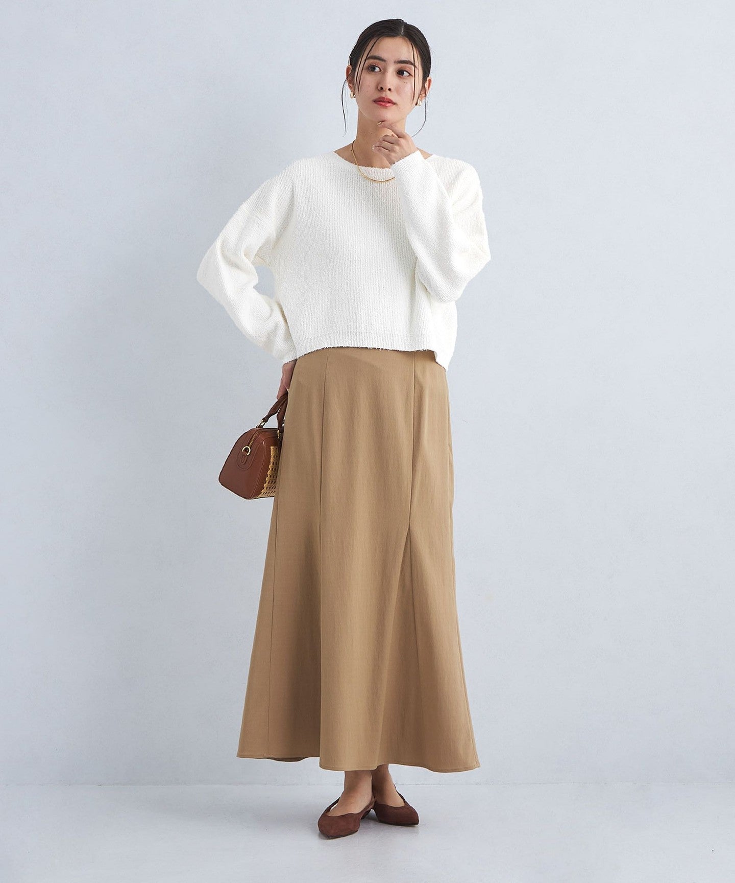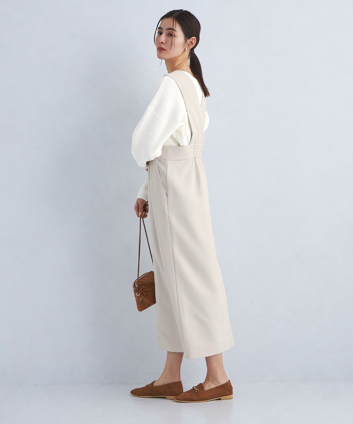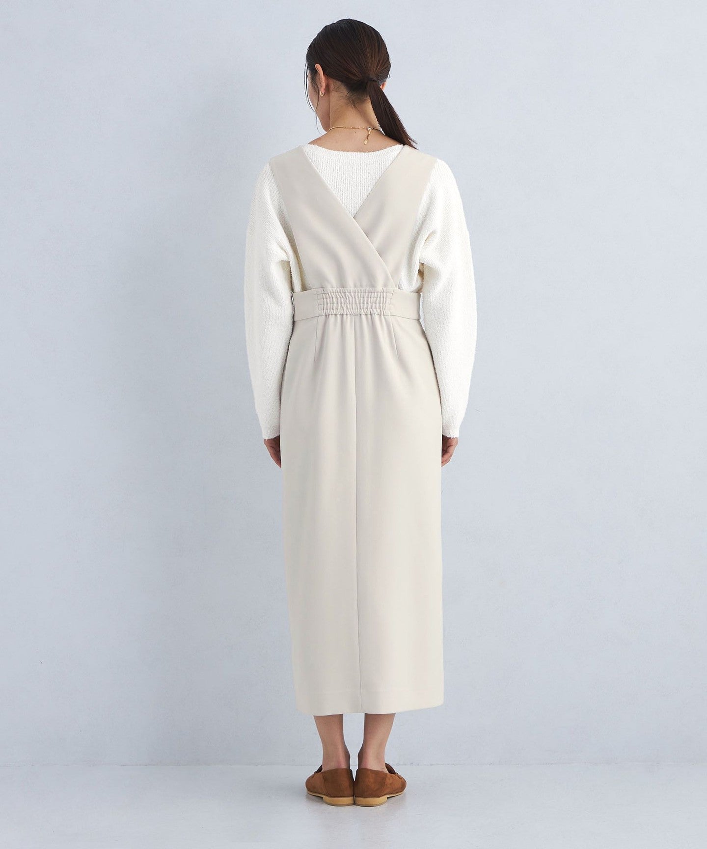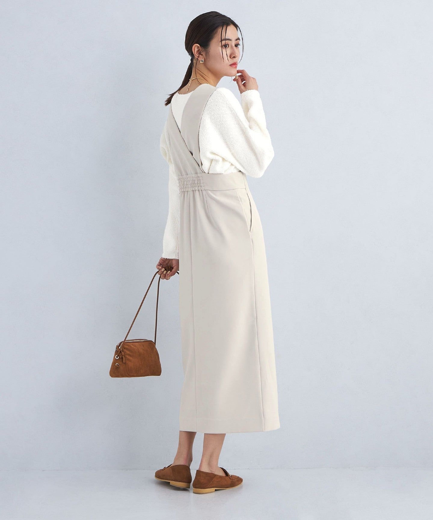 This jumper skirt with zip details shows just the right amount of skin like a slit skirt, creating a feminine and relaxed look.