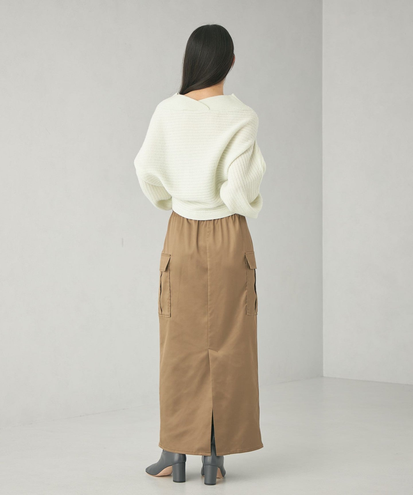 This piece can be worn front to back and upside down, allowing you to enjoy a variety of silhouettes and styles.