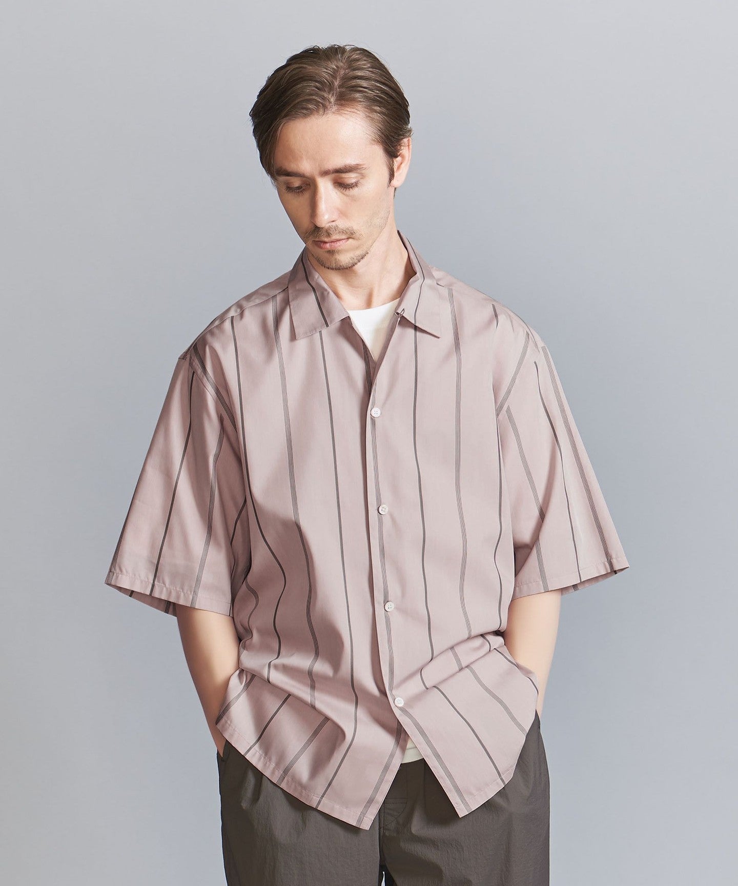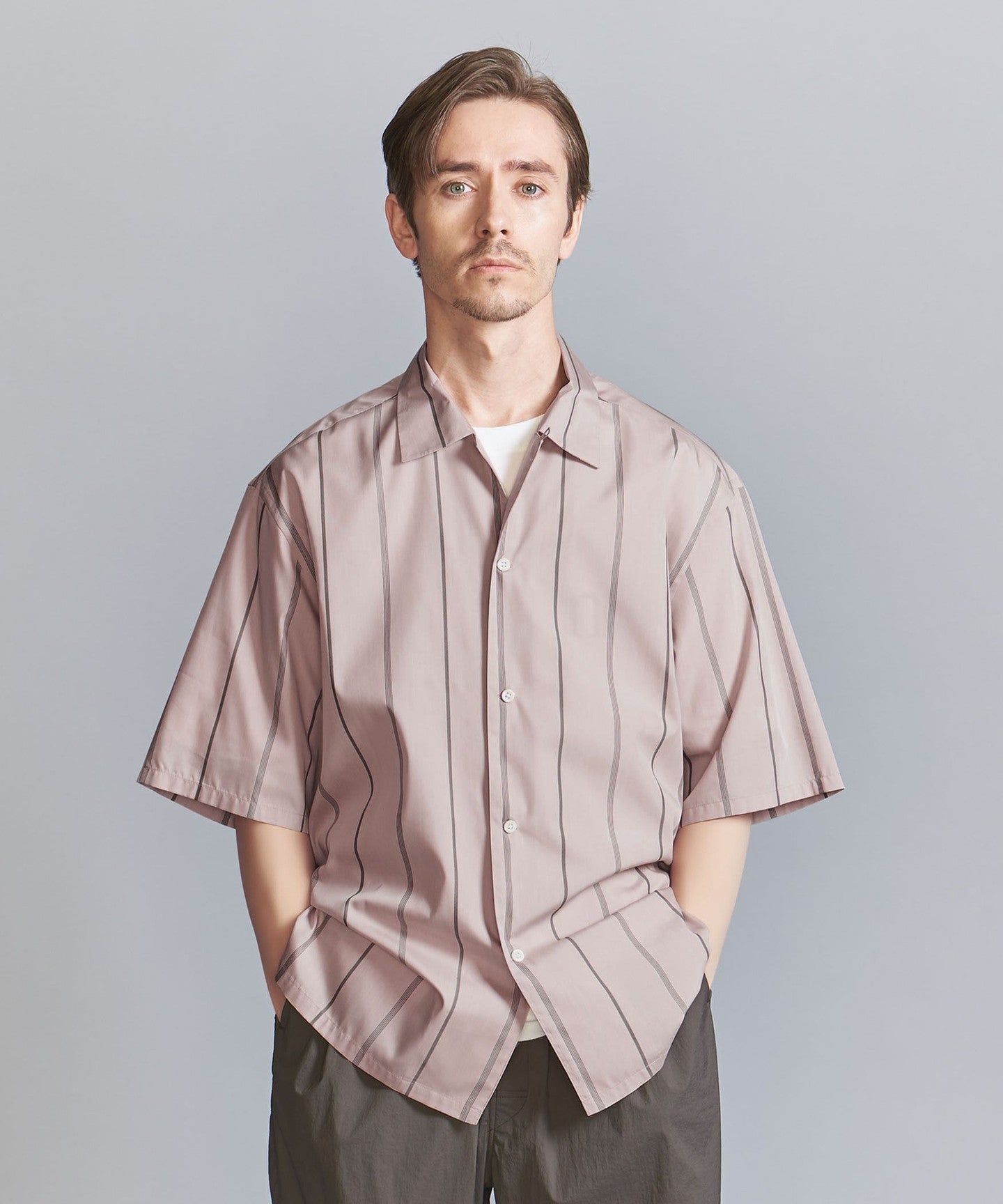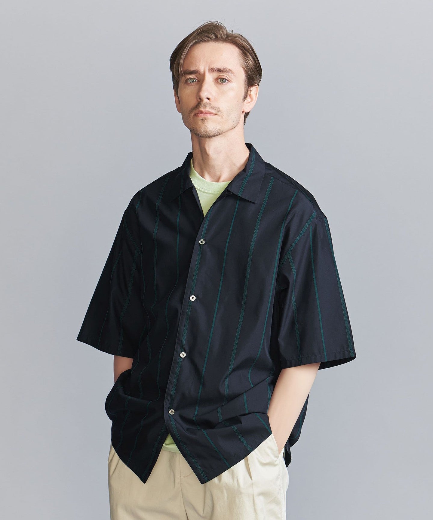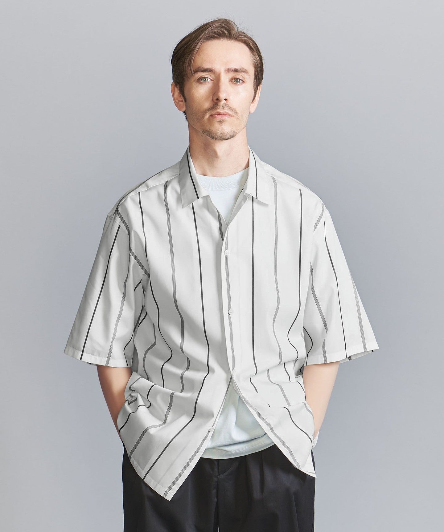 An open-collar shirt with a relaxed feel, featuring a wide stripe pattern that adds a sophisticated touch.