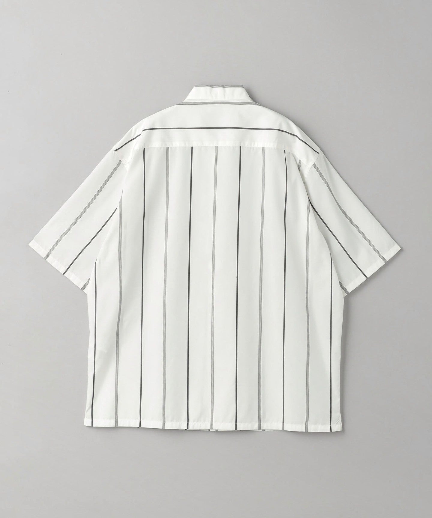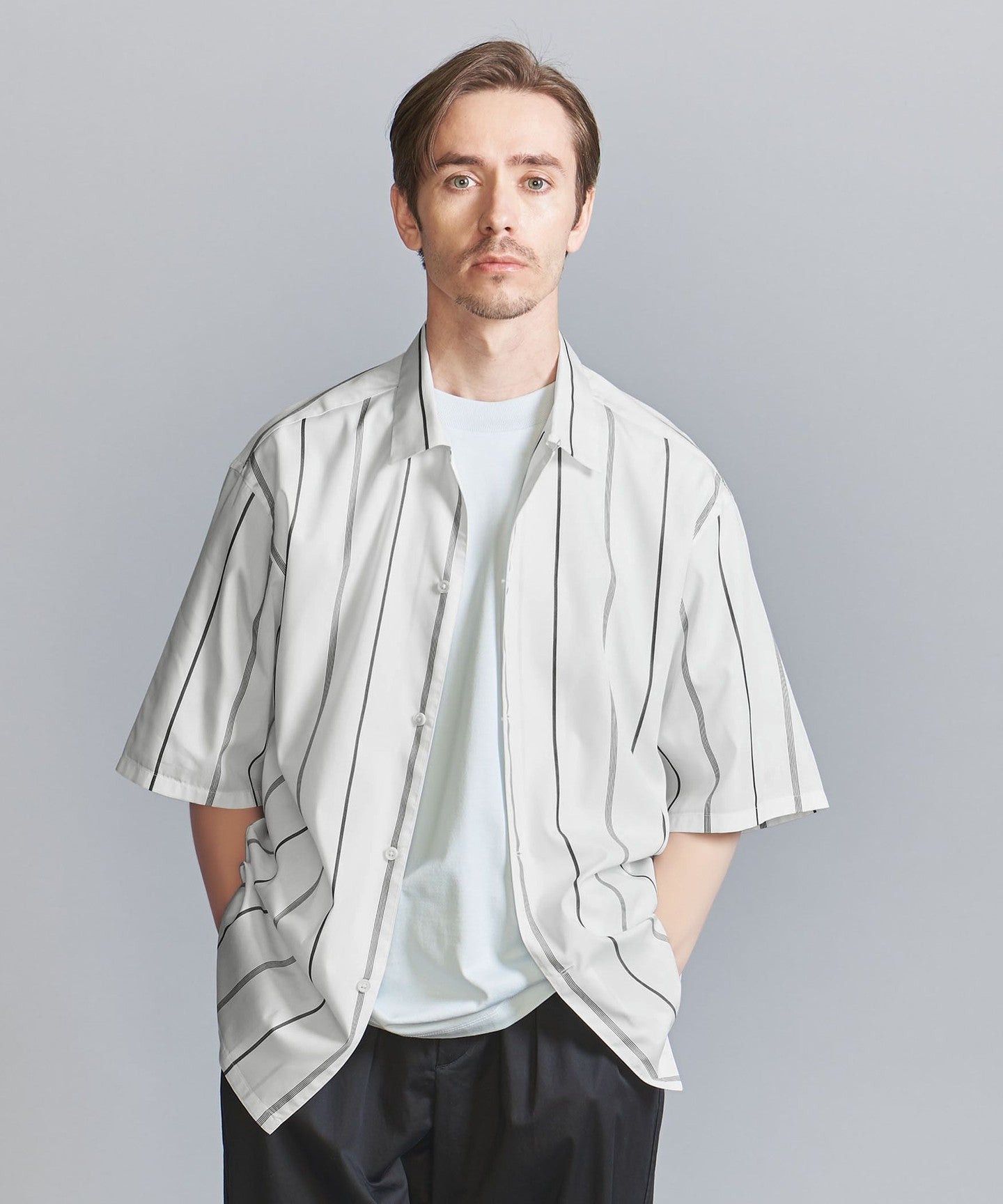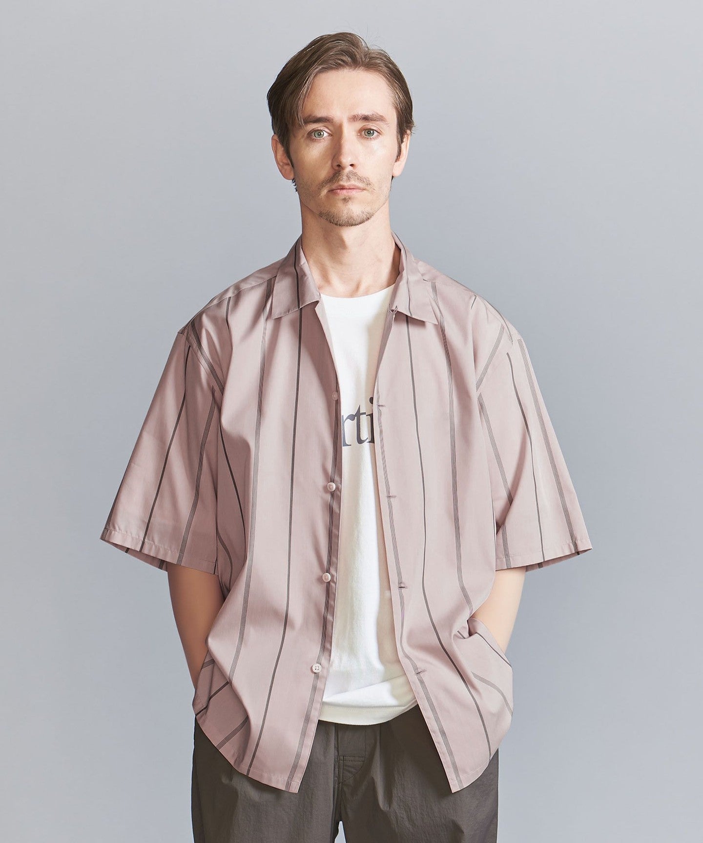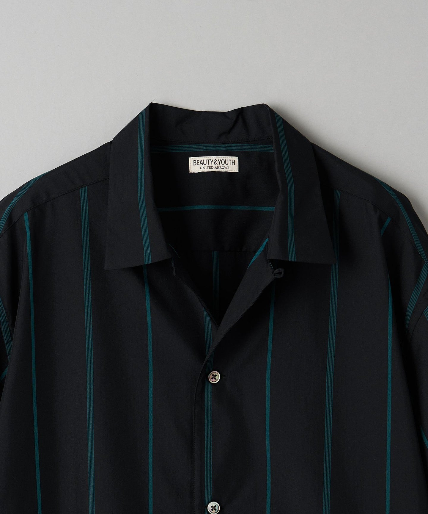 An open-collar shirt with a relaxed feel, featuring a wide stripe pattern that adds a sophisticated touch.