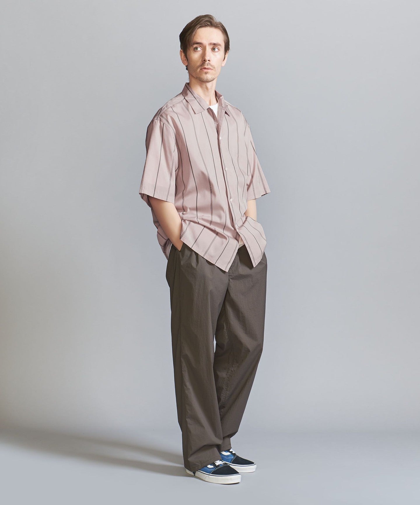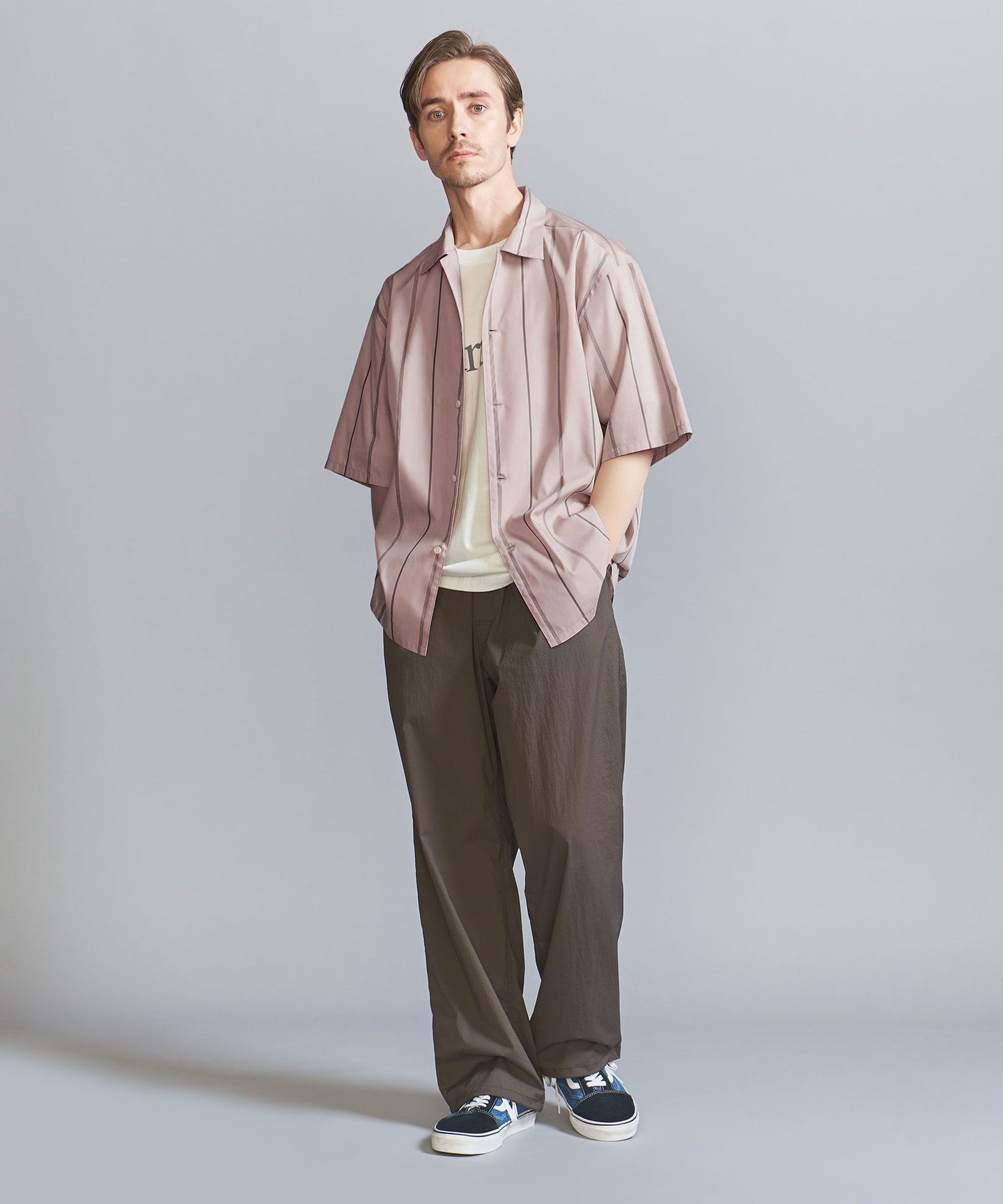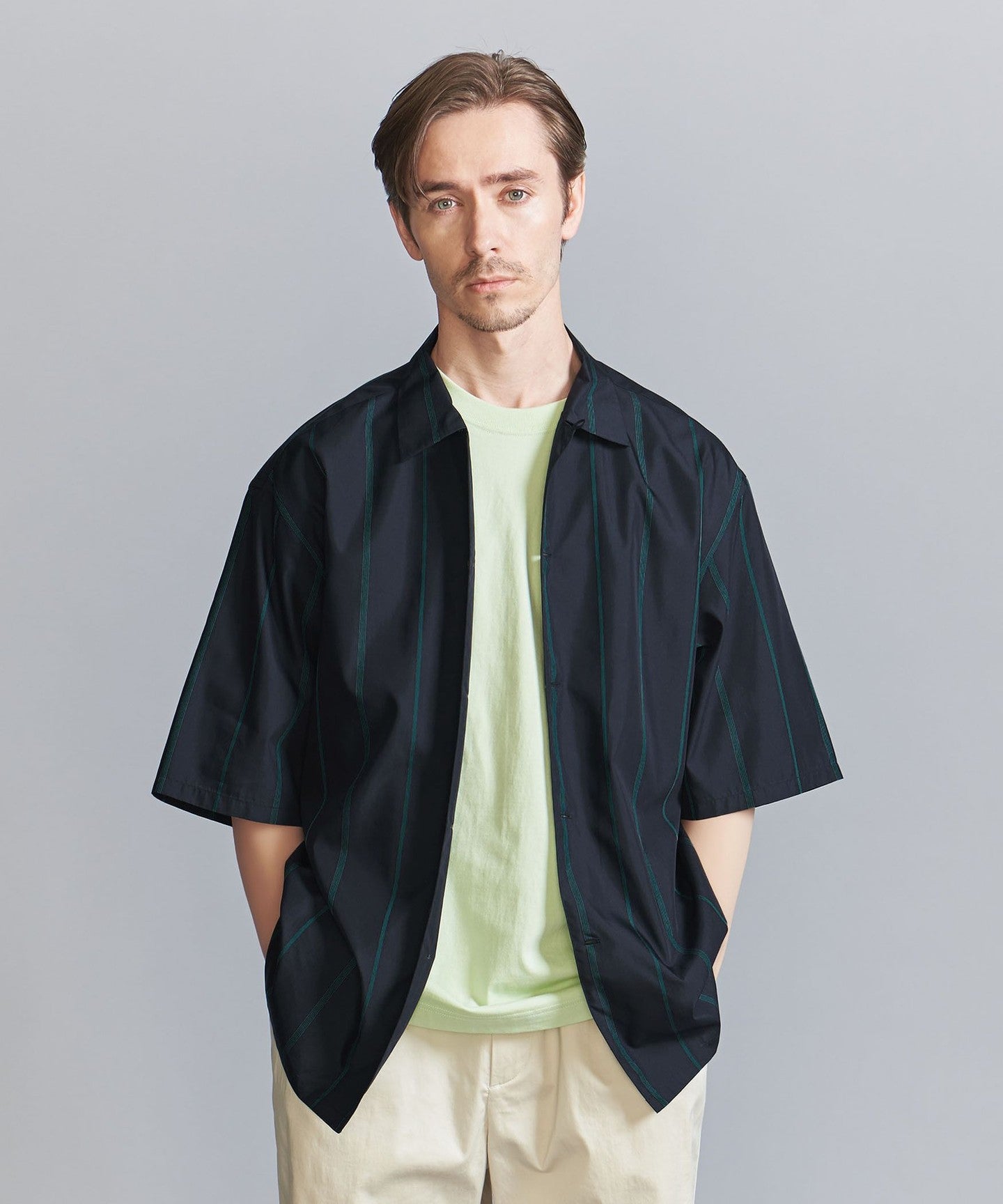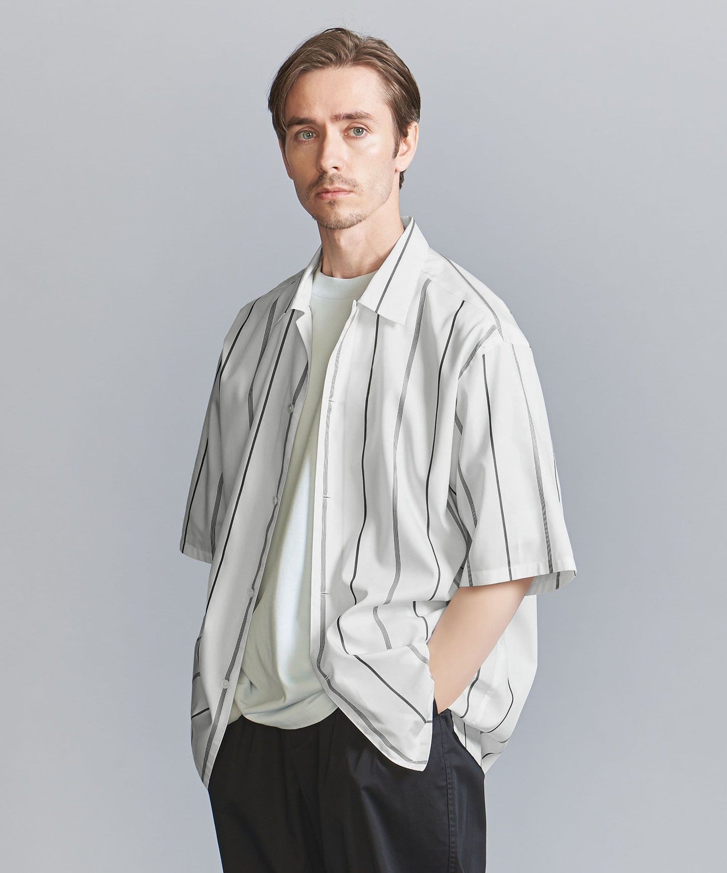An open-collar shirt with a relaxed feel, featuring a wide stripe pattern that adds a sophisticated touch.