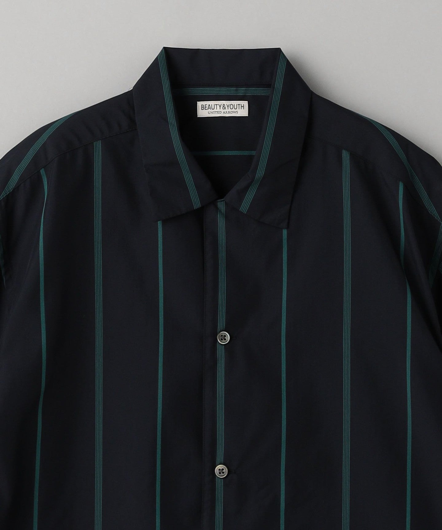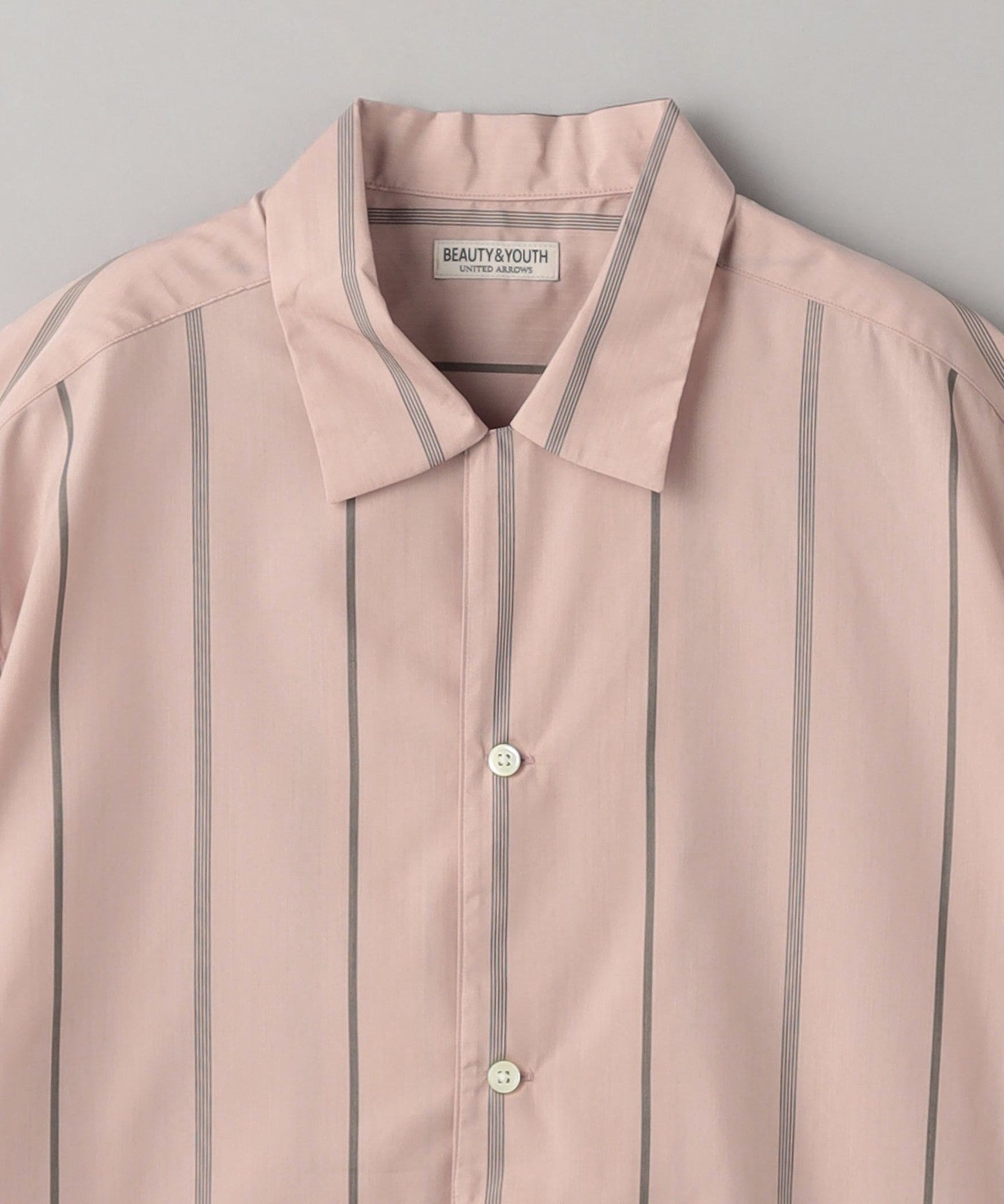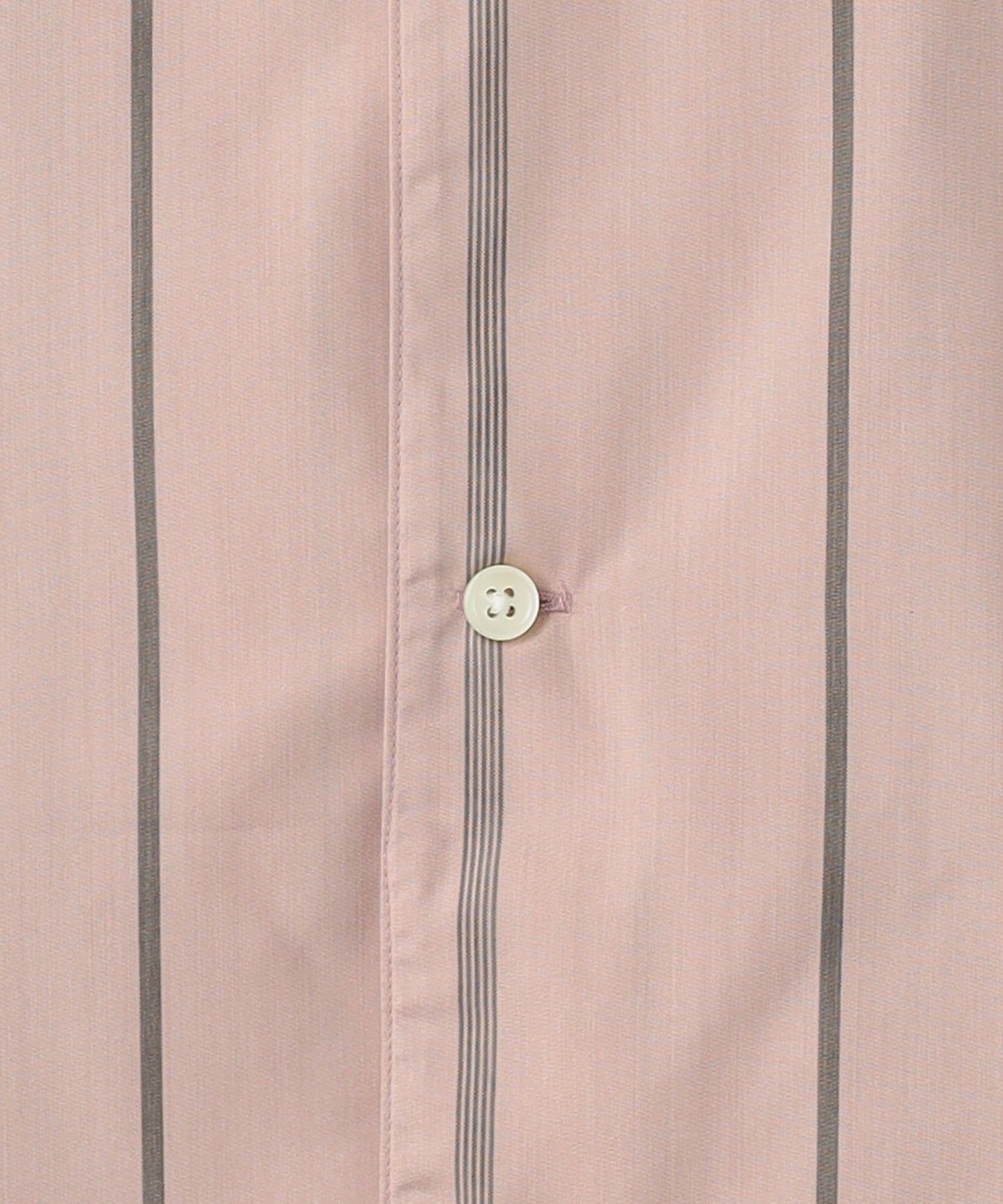 An open-collar shirt with an eye-catching wide-pitch stripe pattern.