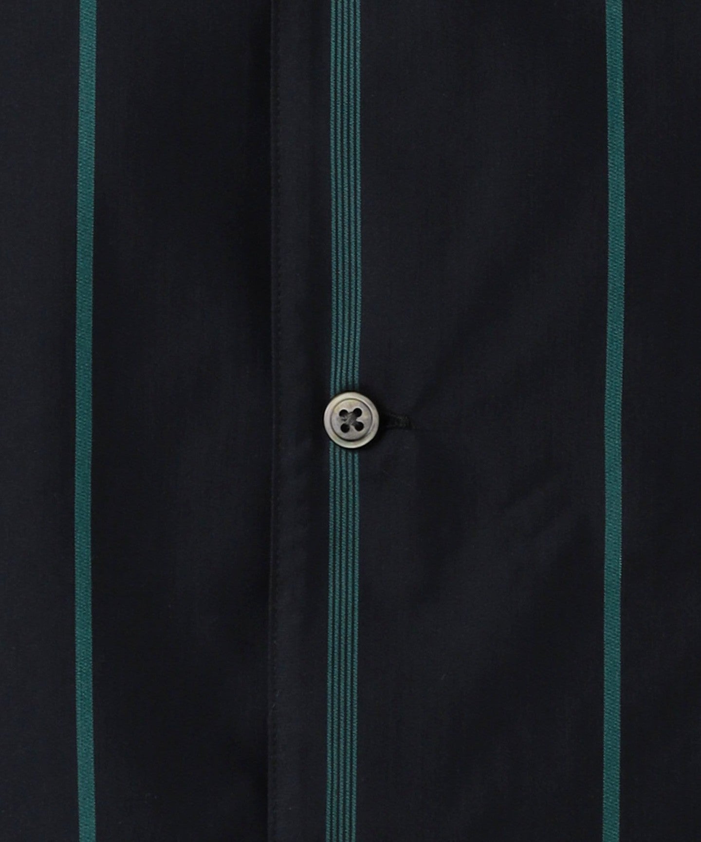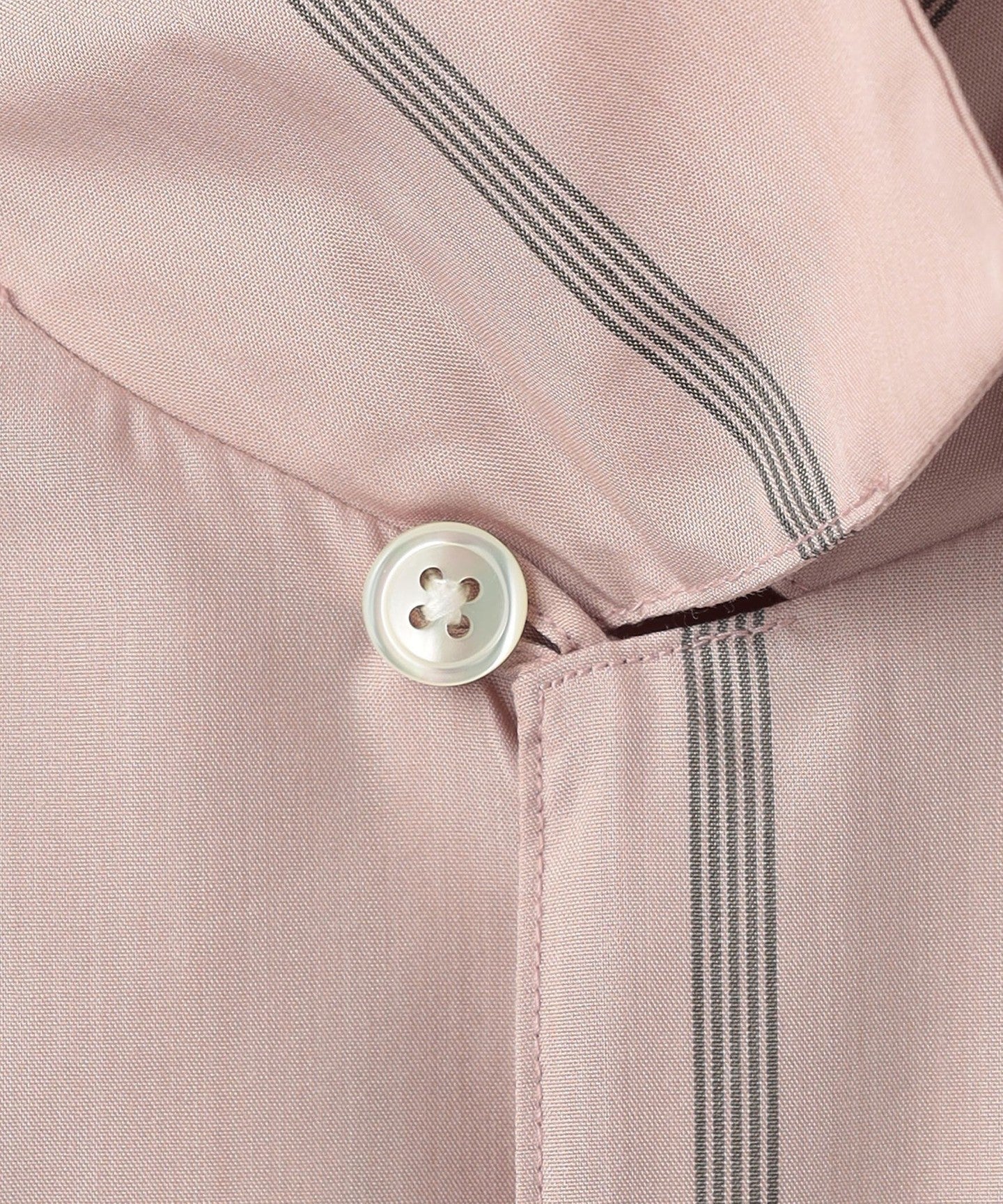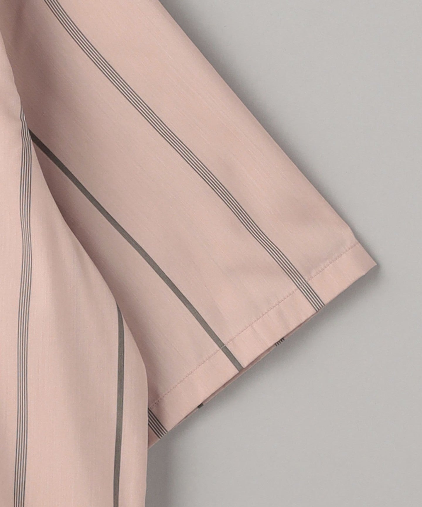 An open-collar shirt with an eye-catching wide-pitch stripe pattern.