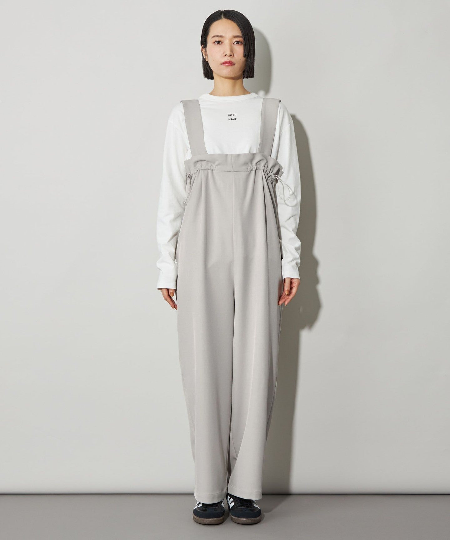 This all-in-one can be worn with a neat impression by tightening the drawstring at the chest.