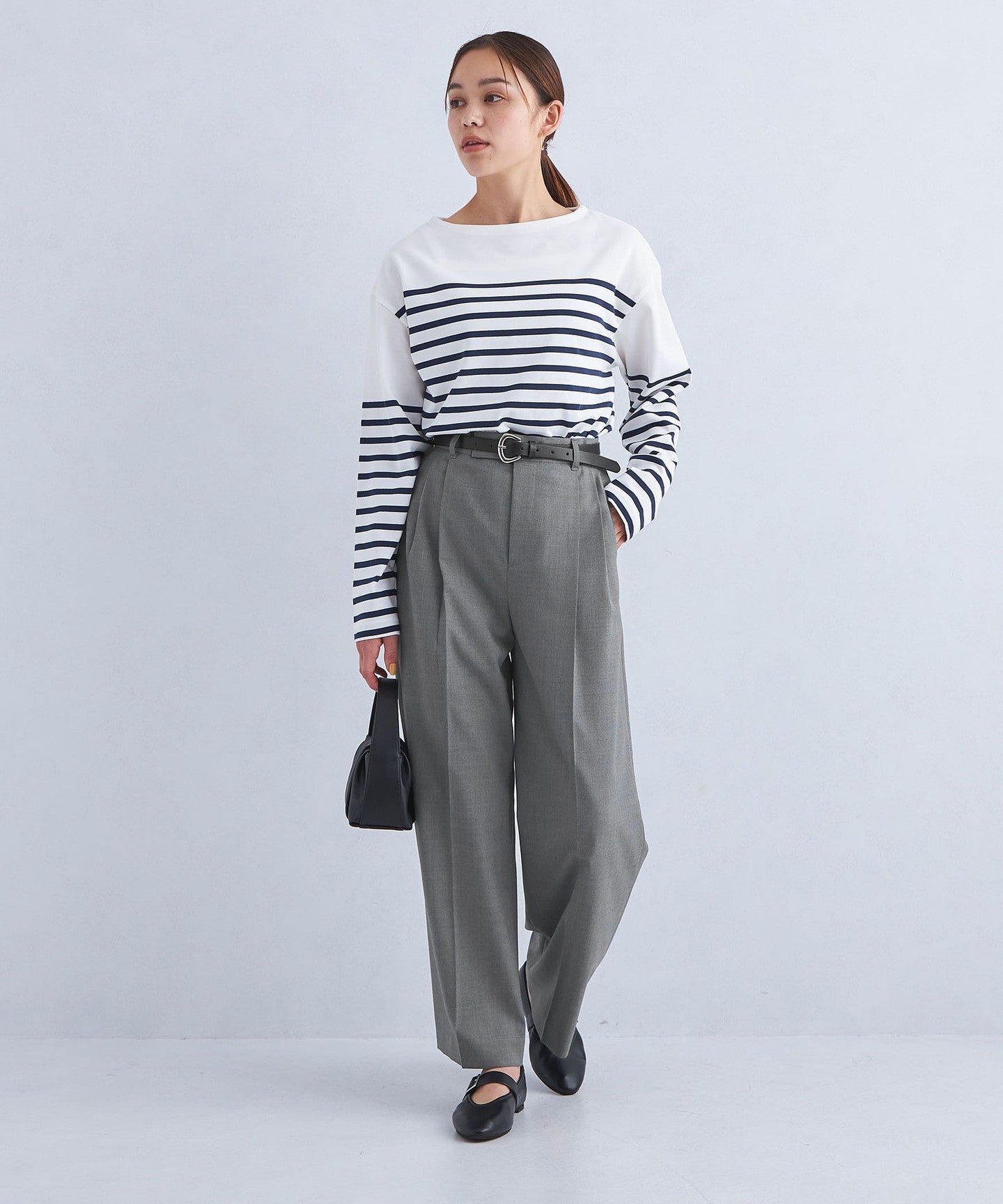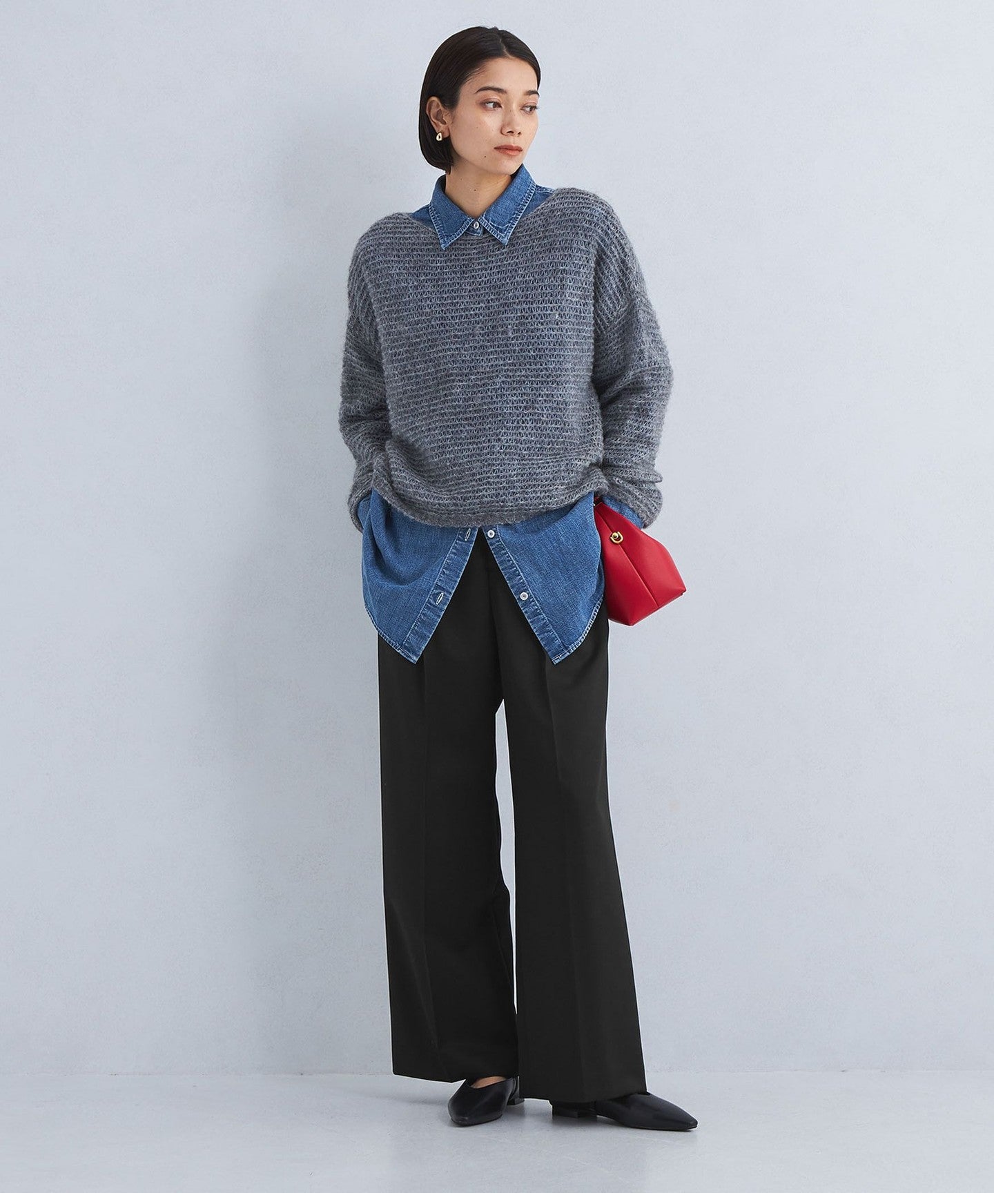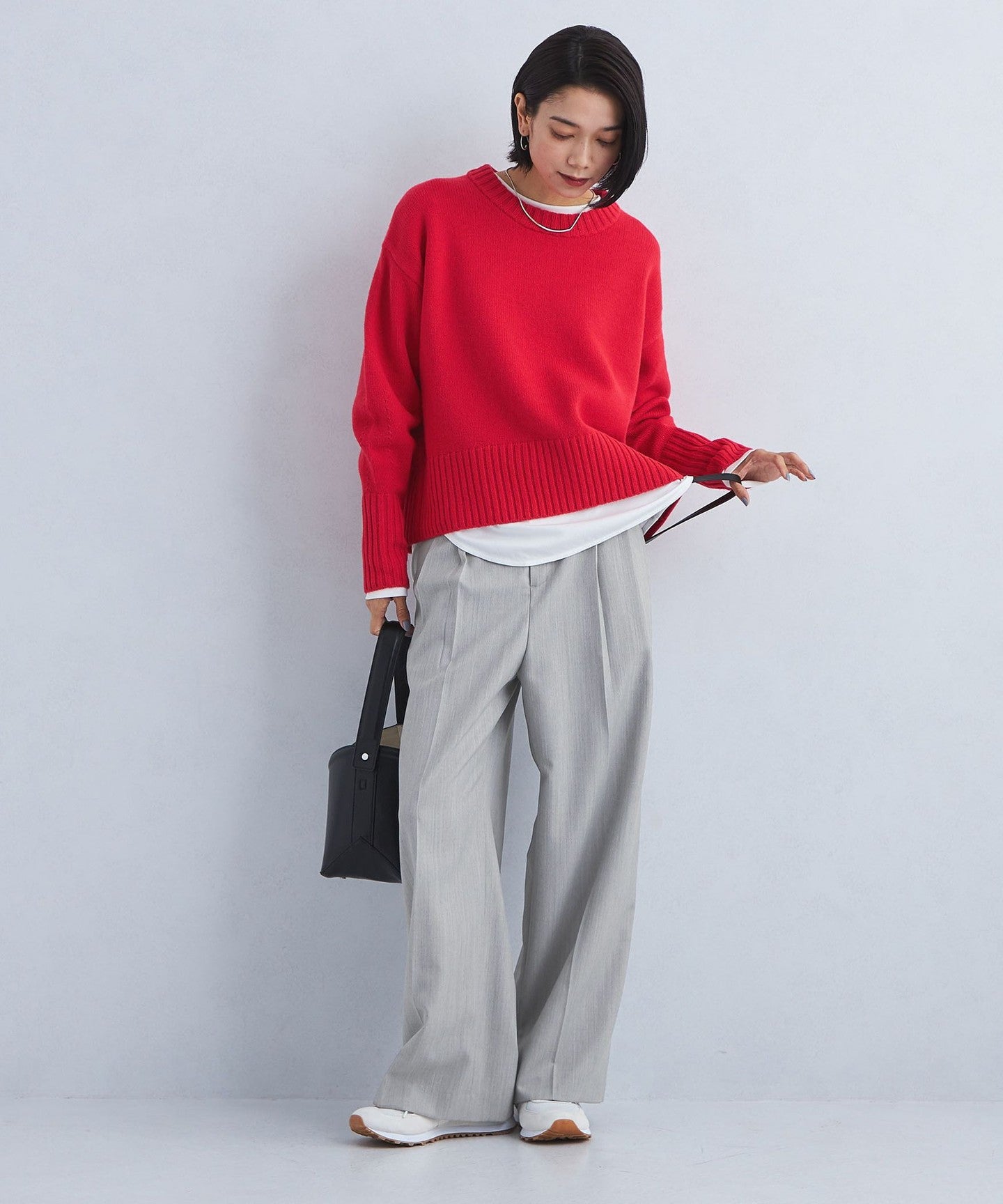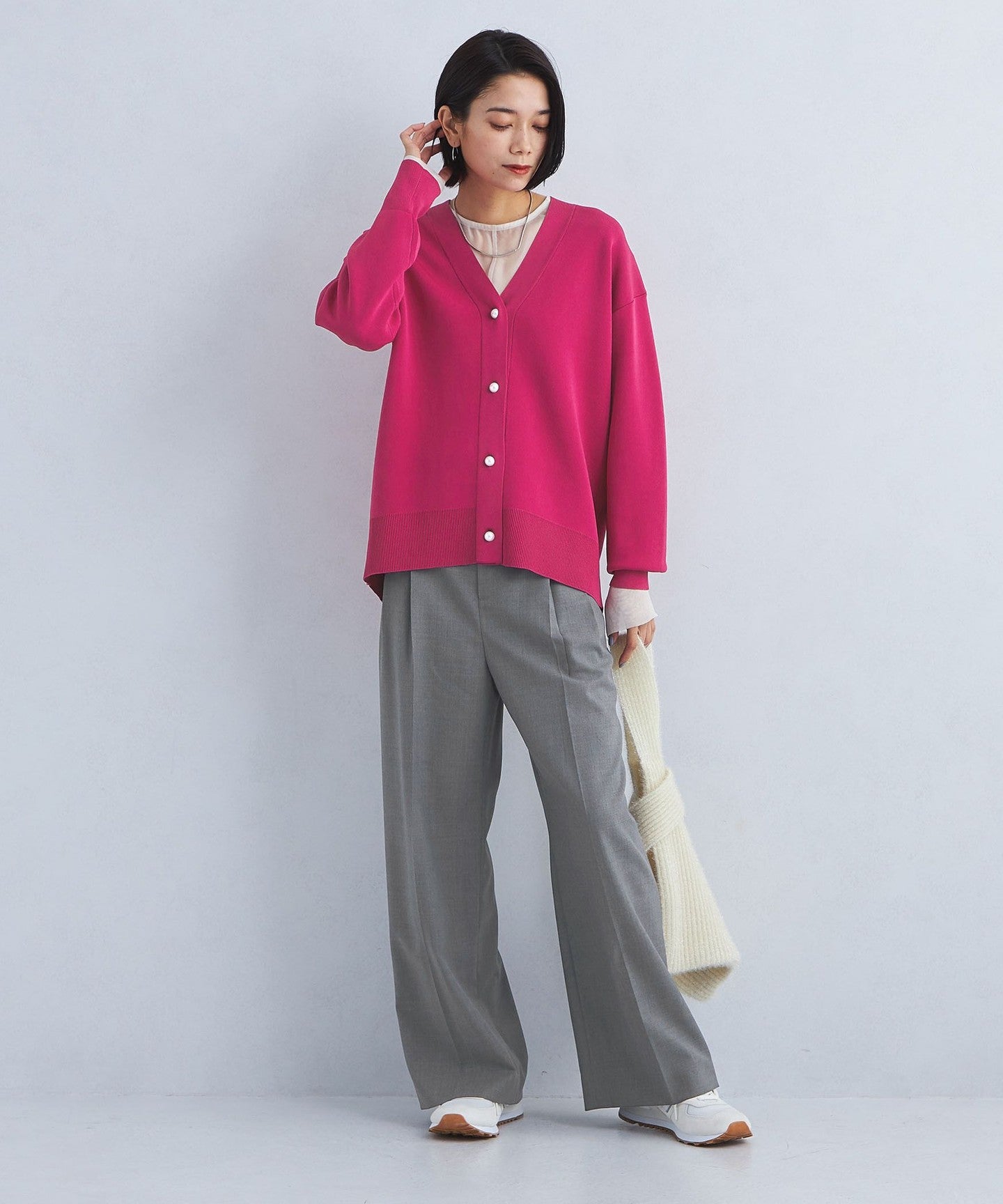 It has a casual yet neat look, so it goes well with long-sleeved T-shirts, shirts, and high-gauge knits.