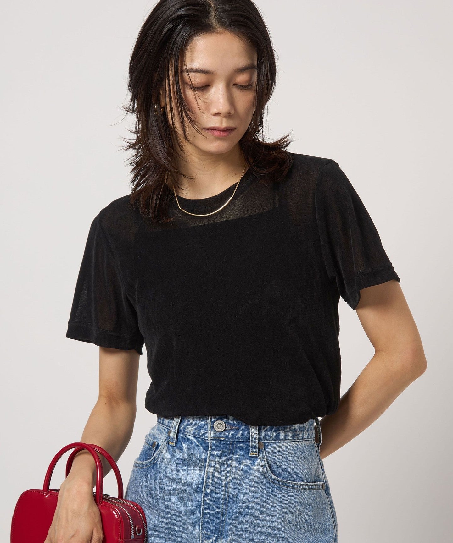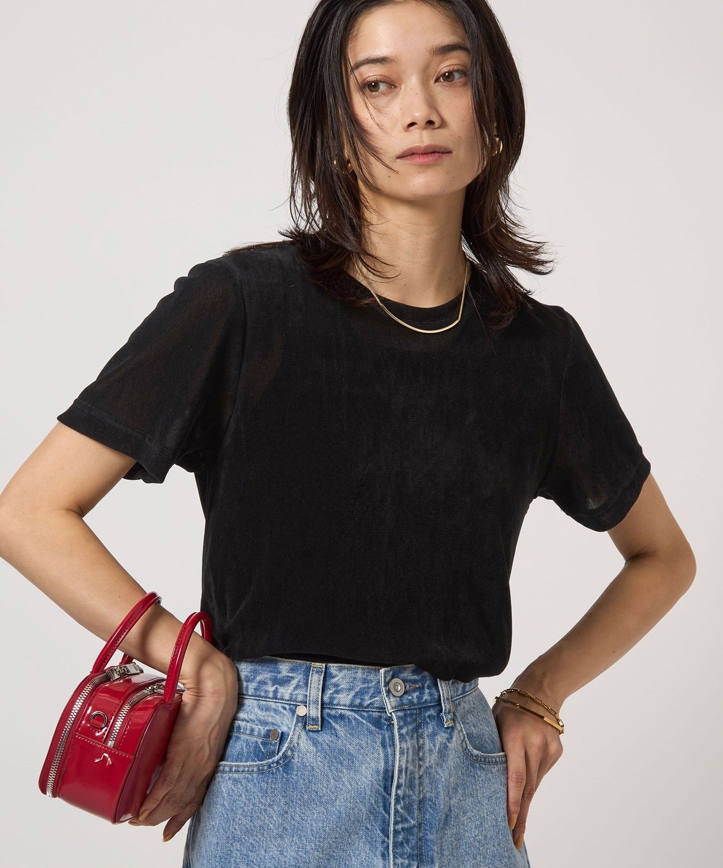 Introducing a sheer T-shirt made with attractive flocked material, which was popular last year.