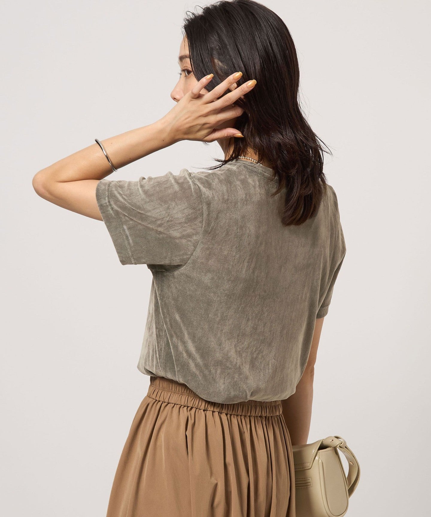 *The flocking is not permanent and may come off if rubbed or scraped. It may also become thinner with repeated washing. Please be careful of friction with bags, etc. when wearing the product.