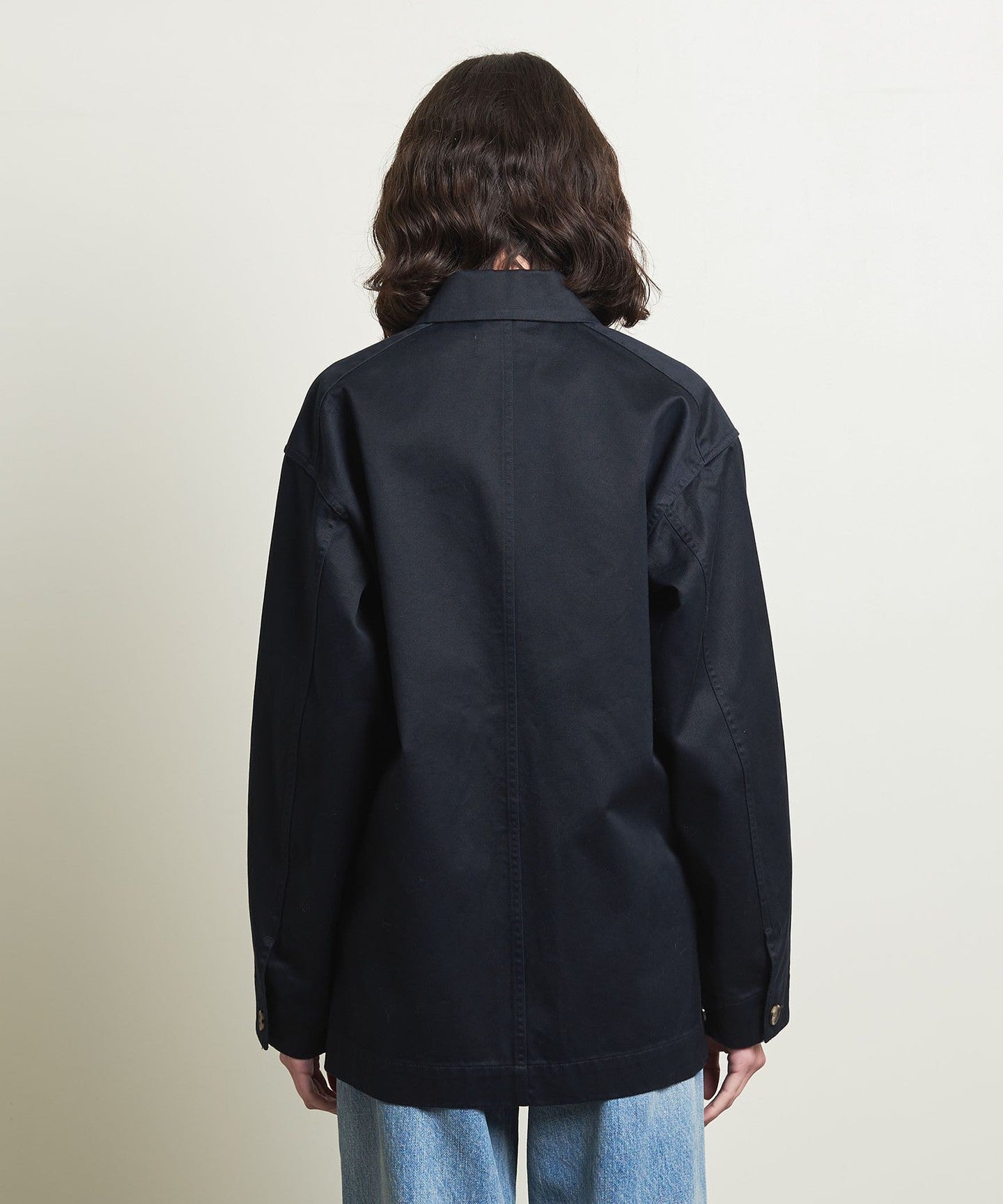 The waist is shaped and the slightly oversized length gives it a stylish look.