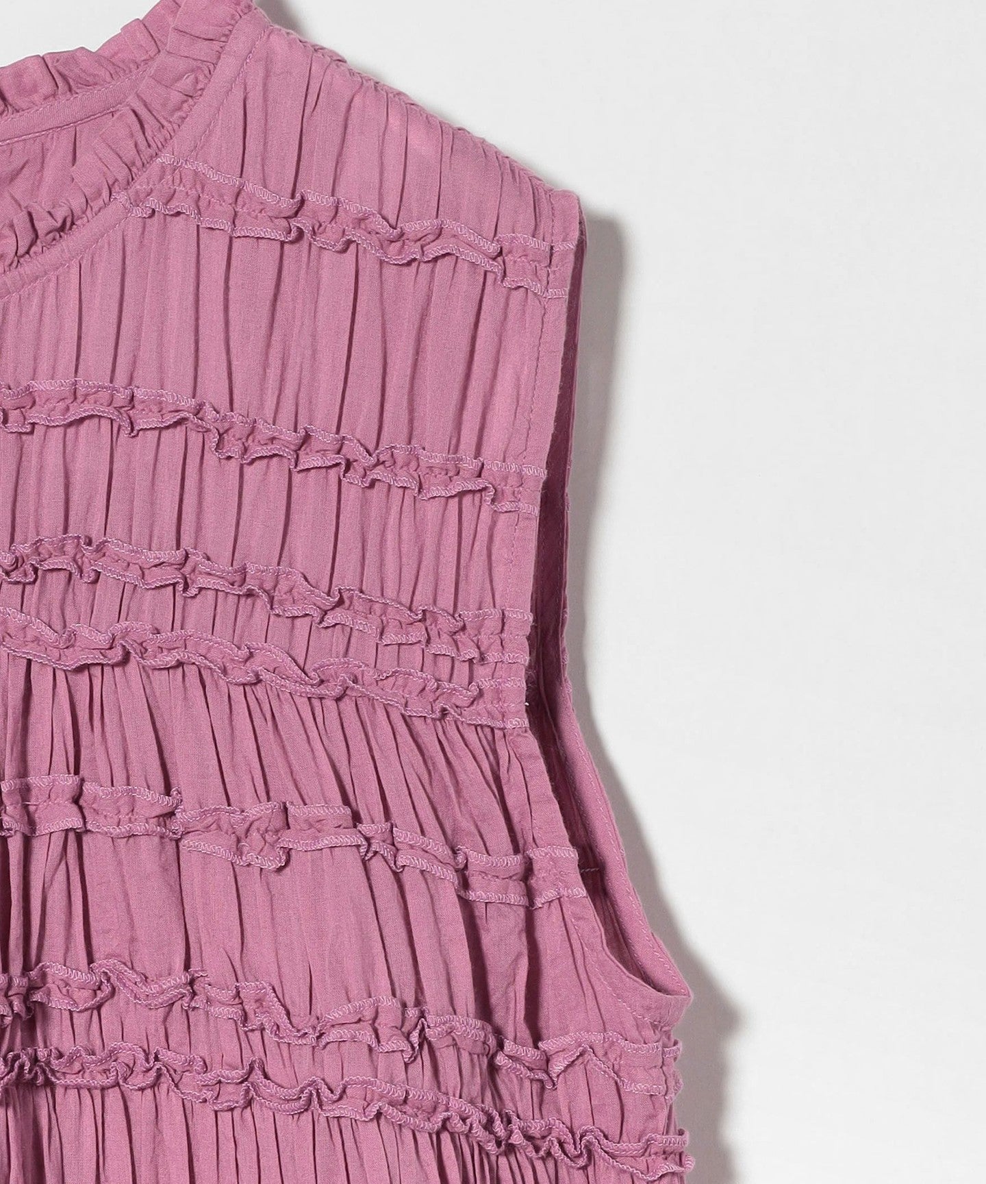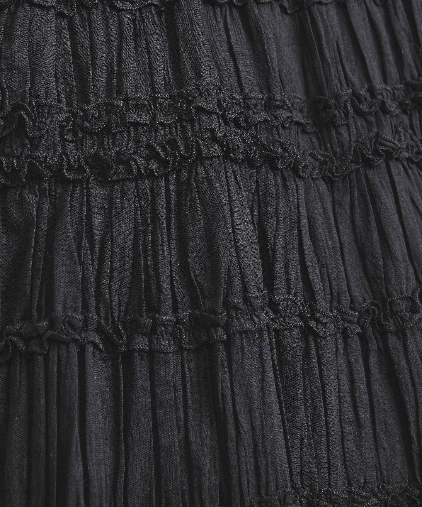 Taking advantage of the thinness of the voile, we gathered the fabric and sewed shirring elastic onto it along with the ruffles.