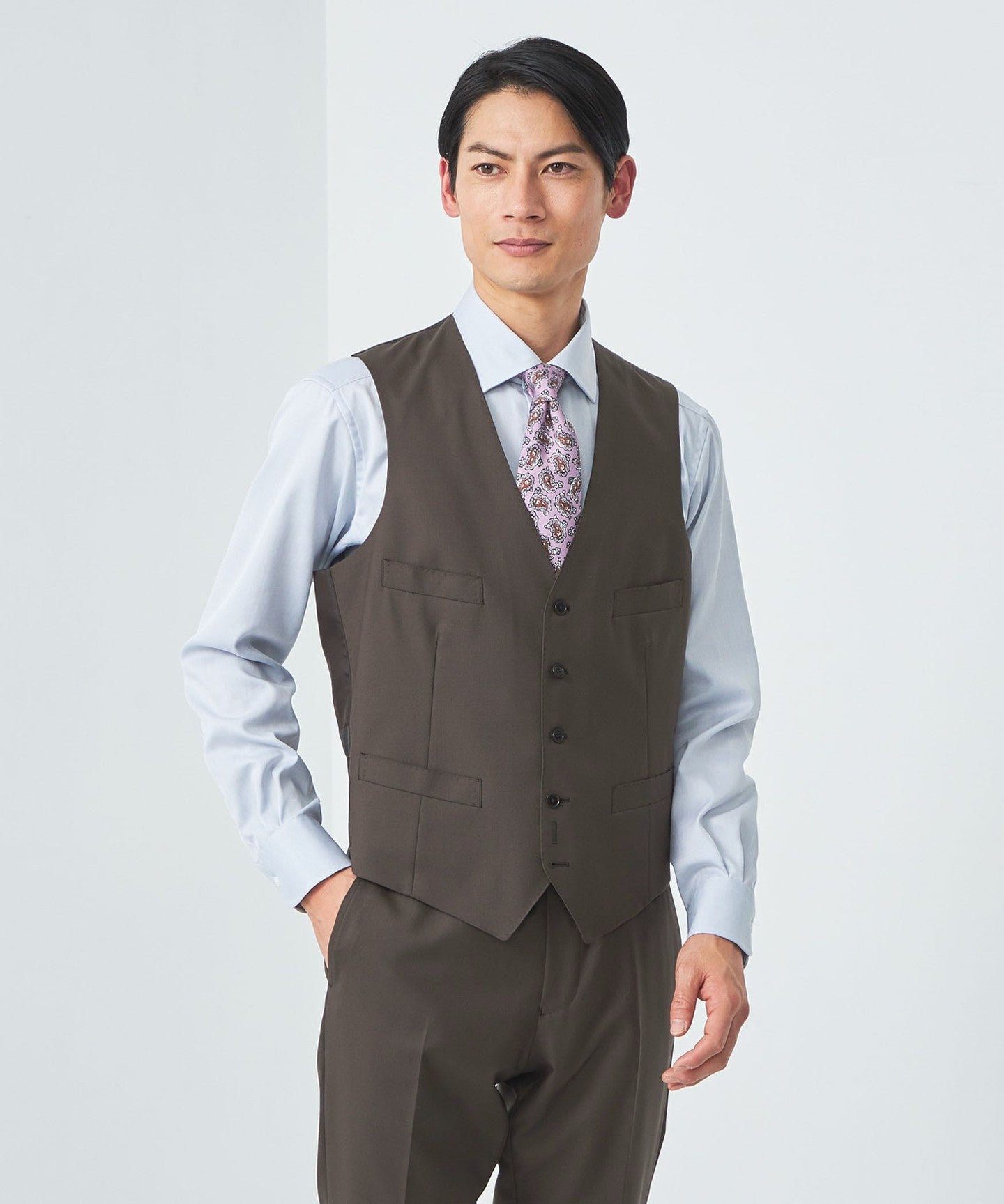 This is a luxurious business suit made from VALLEMOSSO fabric, a collaboration between Leda and Green Label Relaxing.