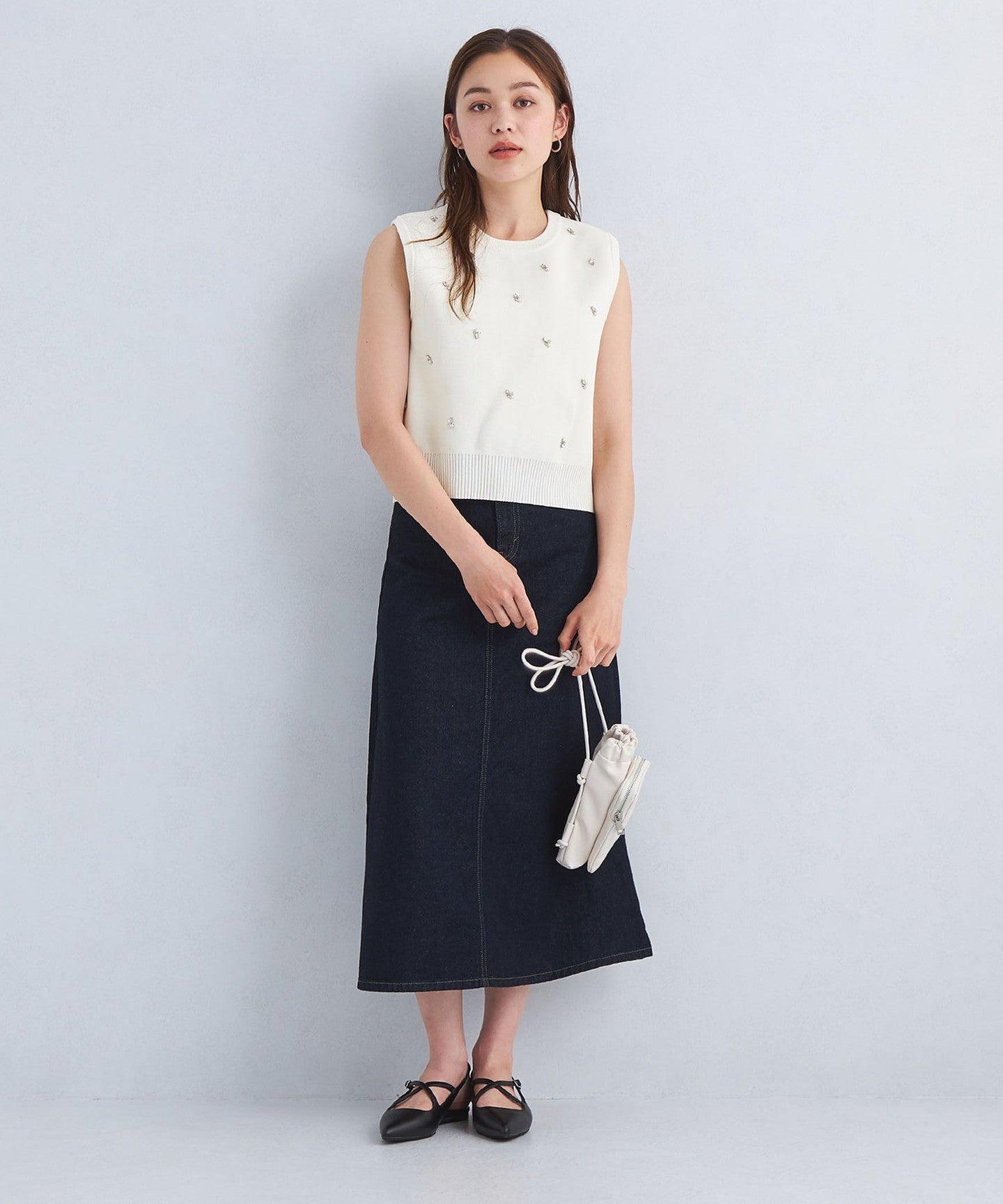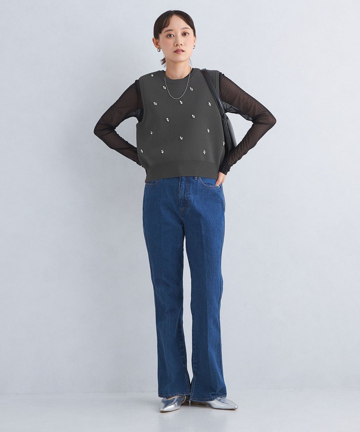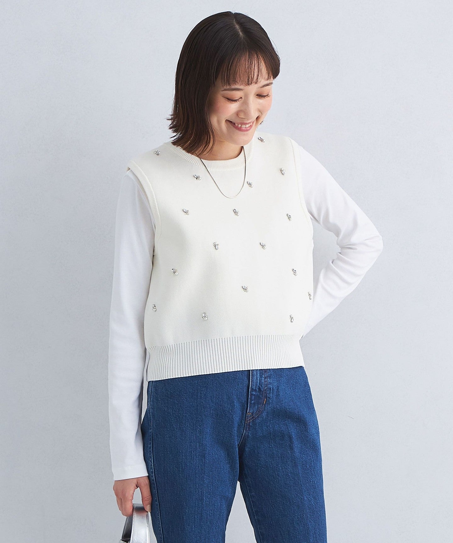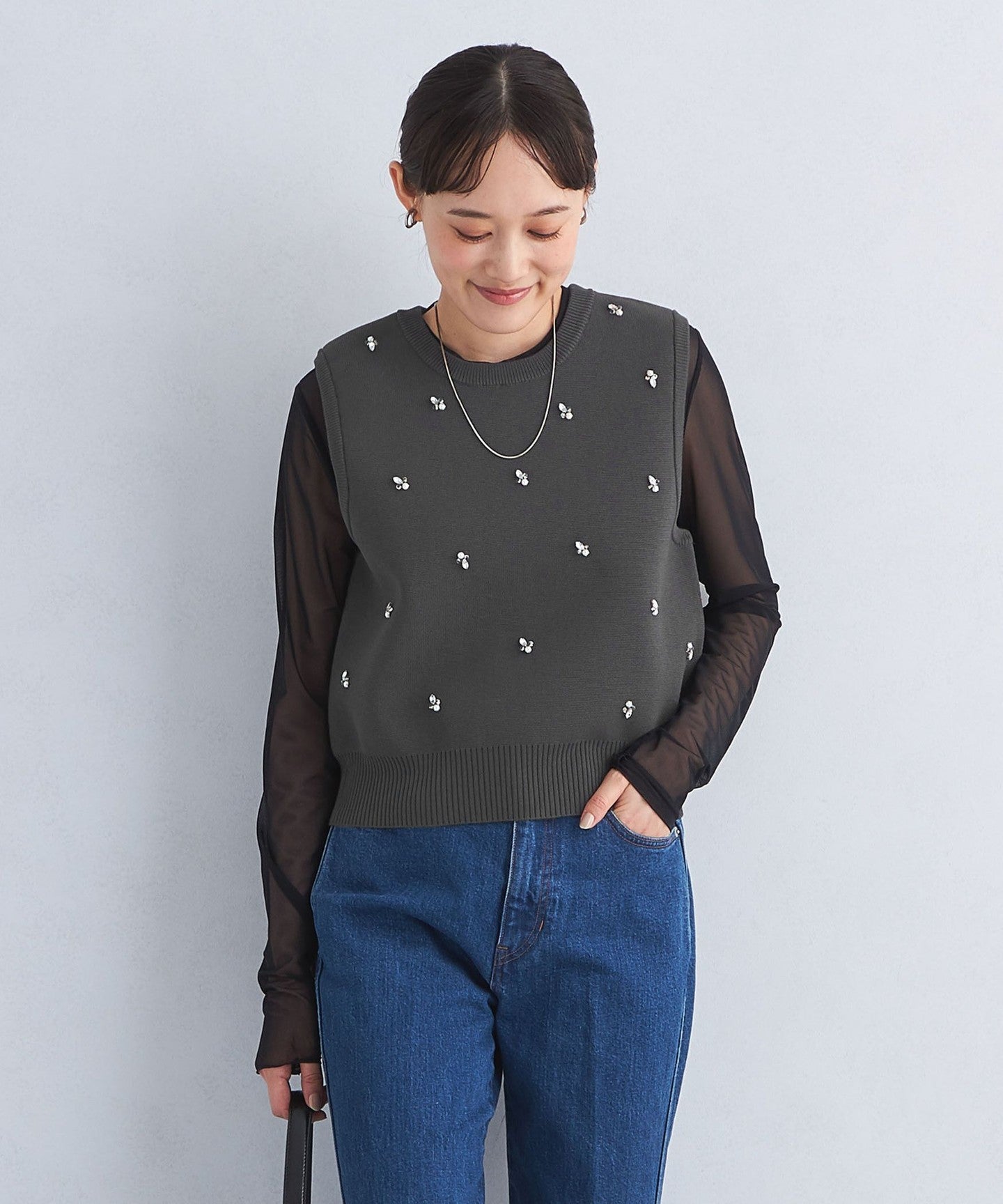 It is recommended to wear it with a cut-and-sew or blouse underneath, or on its own.