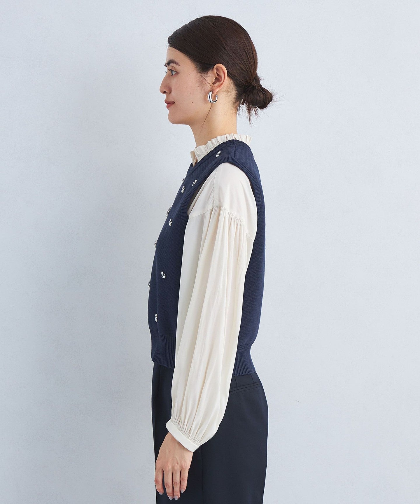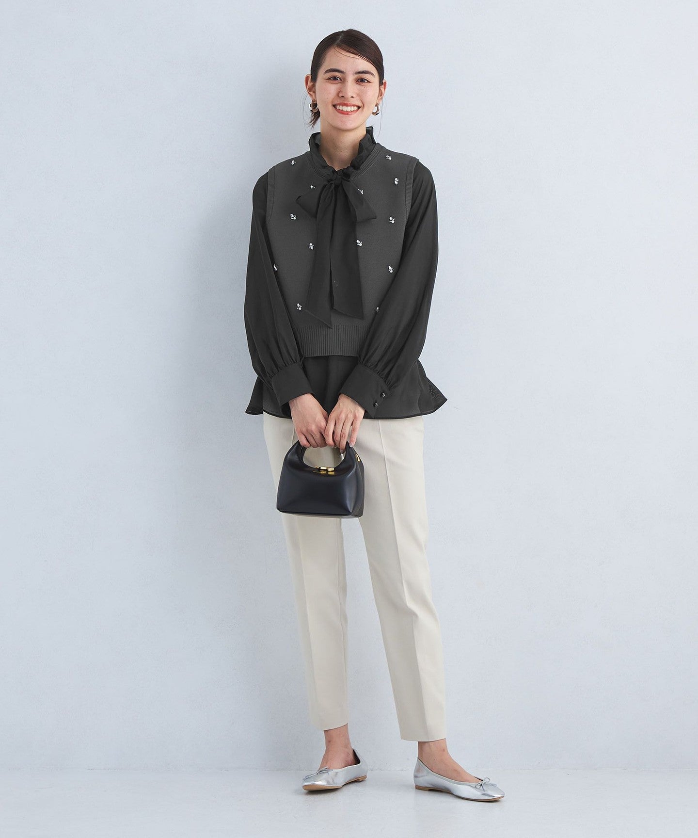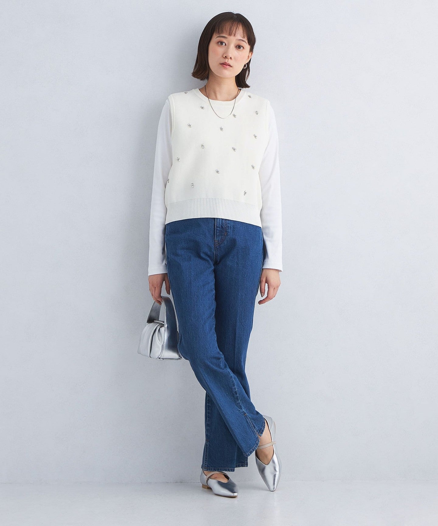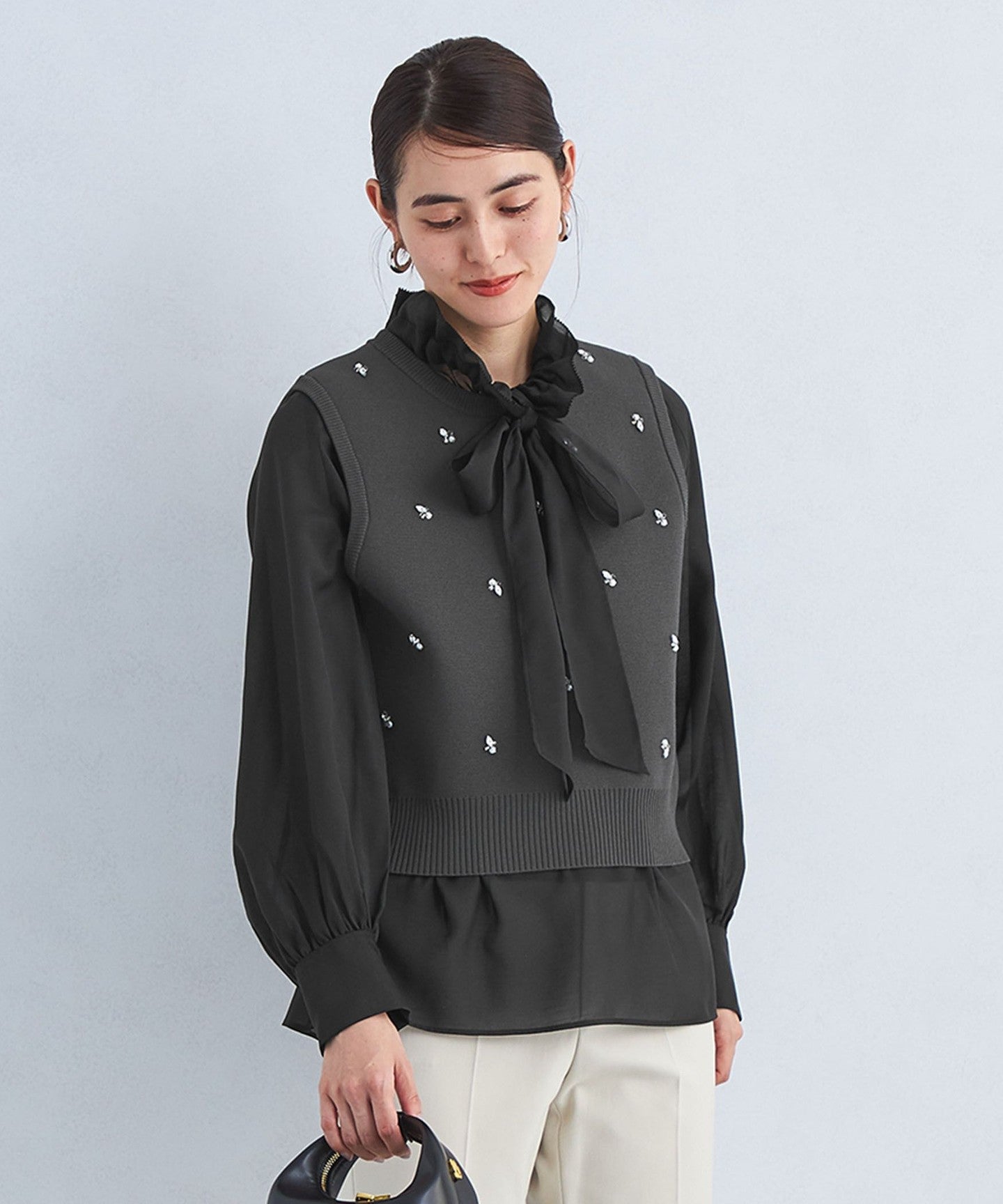 It is recommended to wear it with a cut-and-sew or blouse underneath, or on its own.