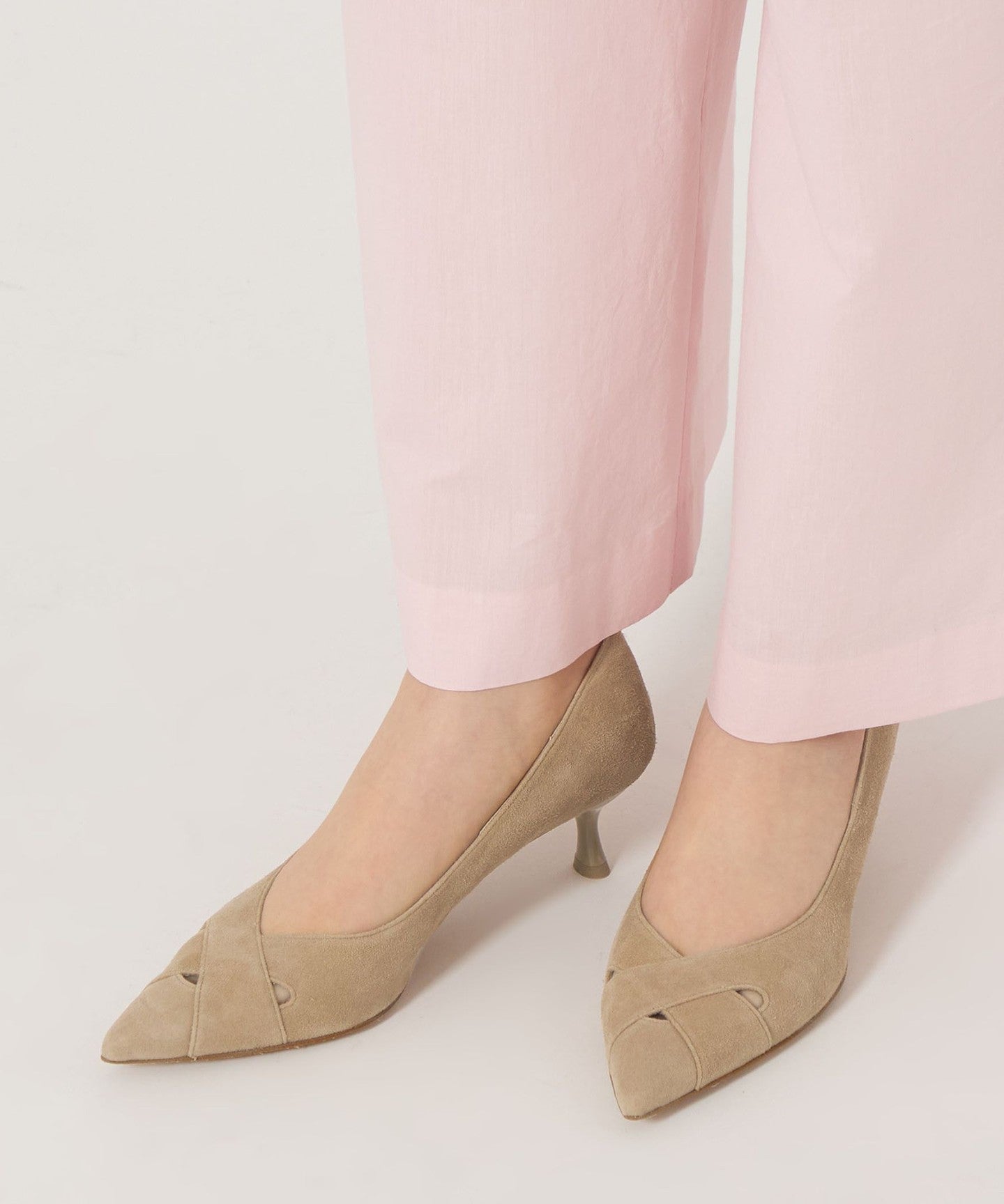 These lightweight pumps feature a thick belt that crosses over them, creating a slightly loose look.