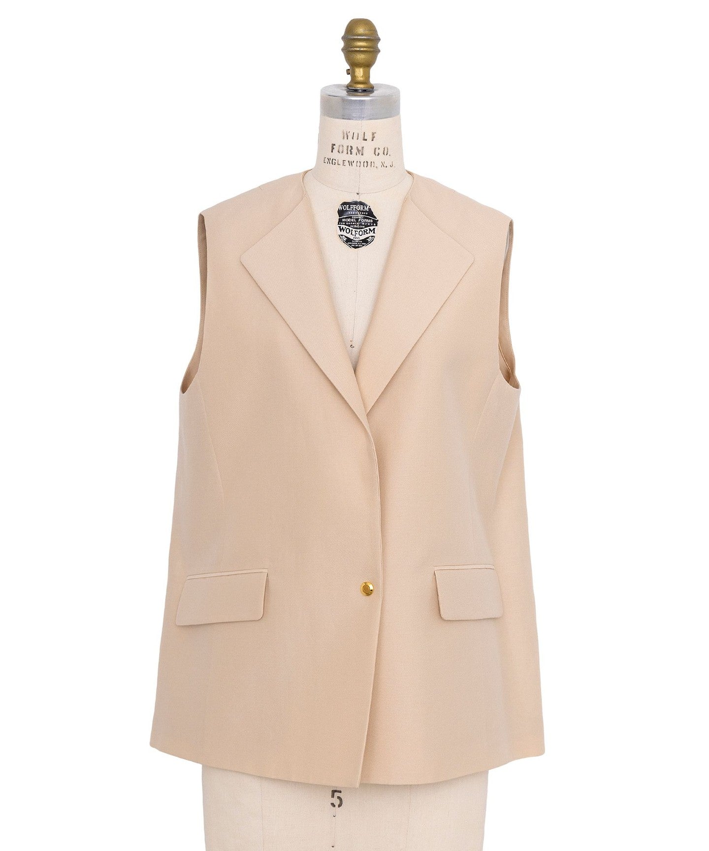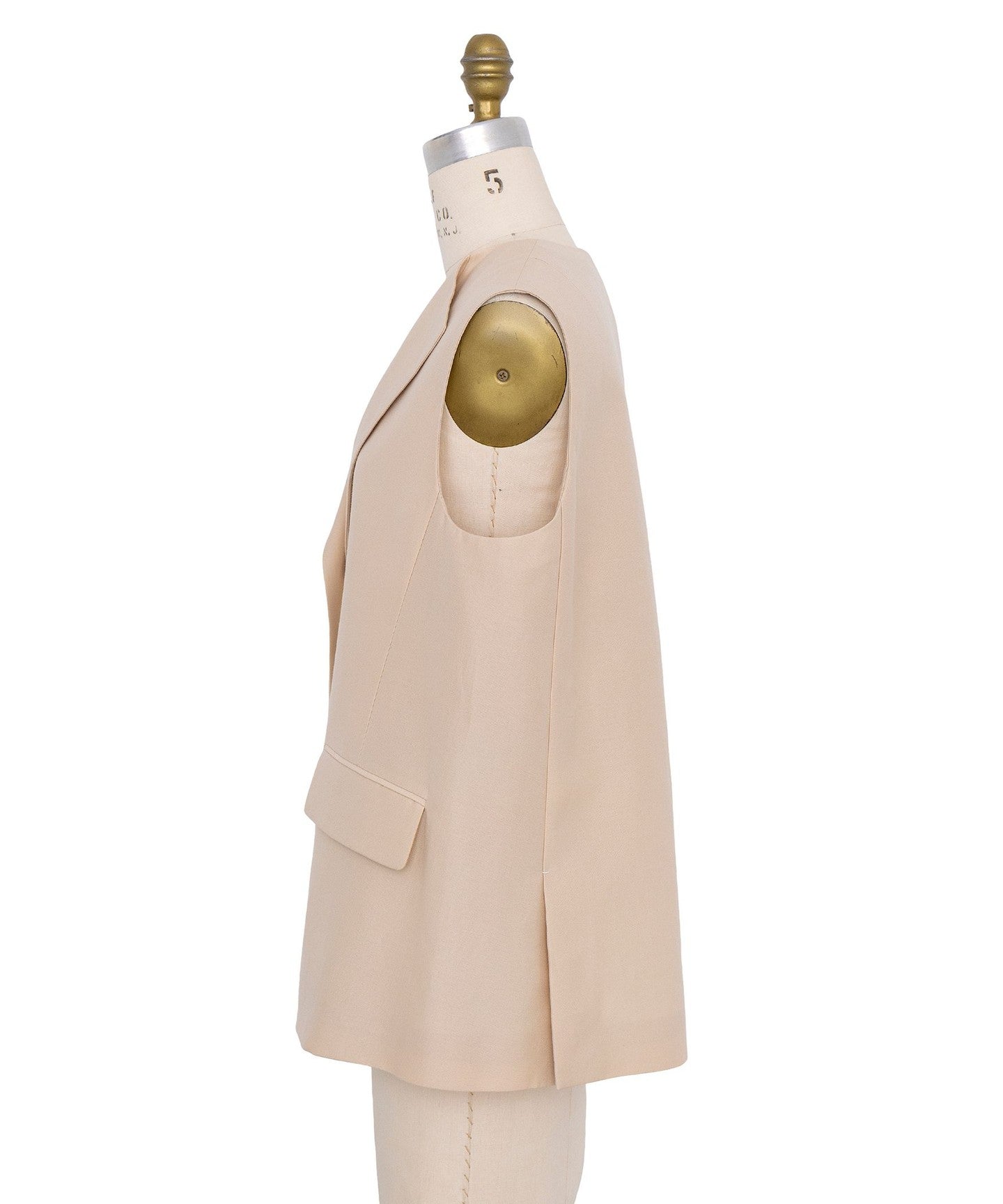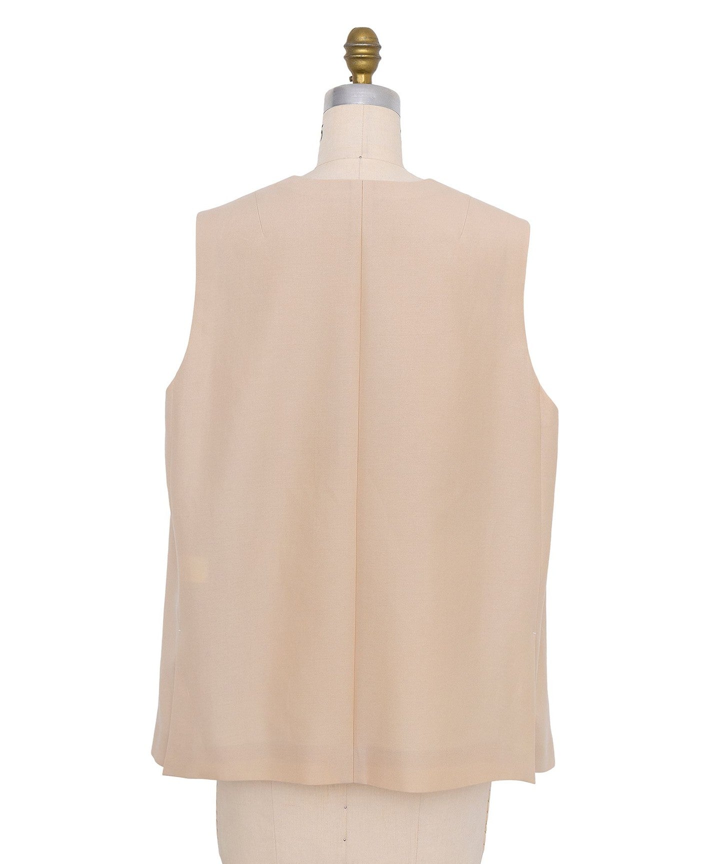 This vest features a clean design around the neck that gives it a tailored collar look.