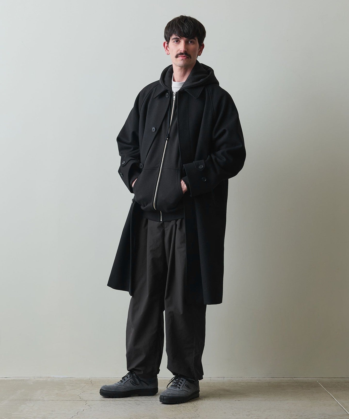 This is a double-woven melton with a plain weave, woven at a high density using high-quality wool cashmere yarn.