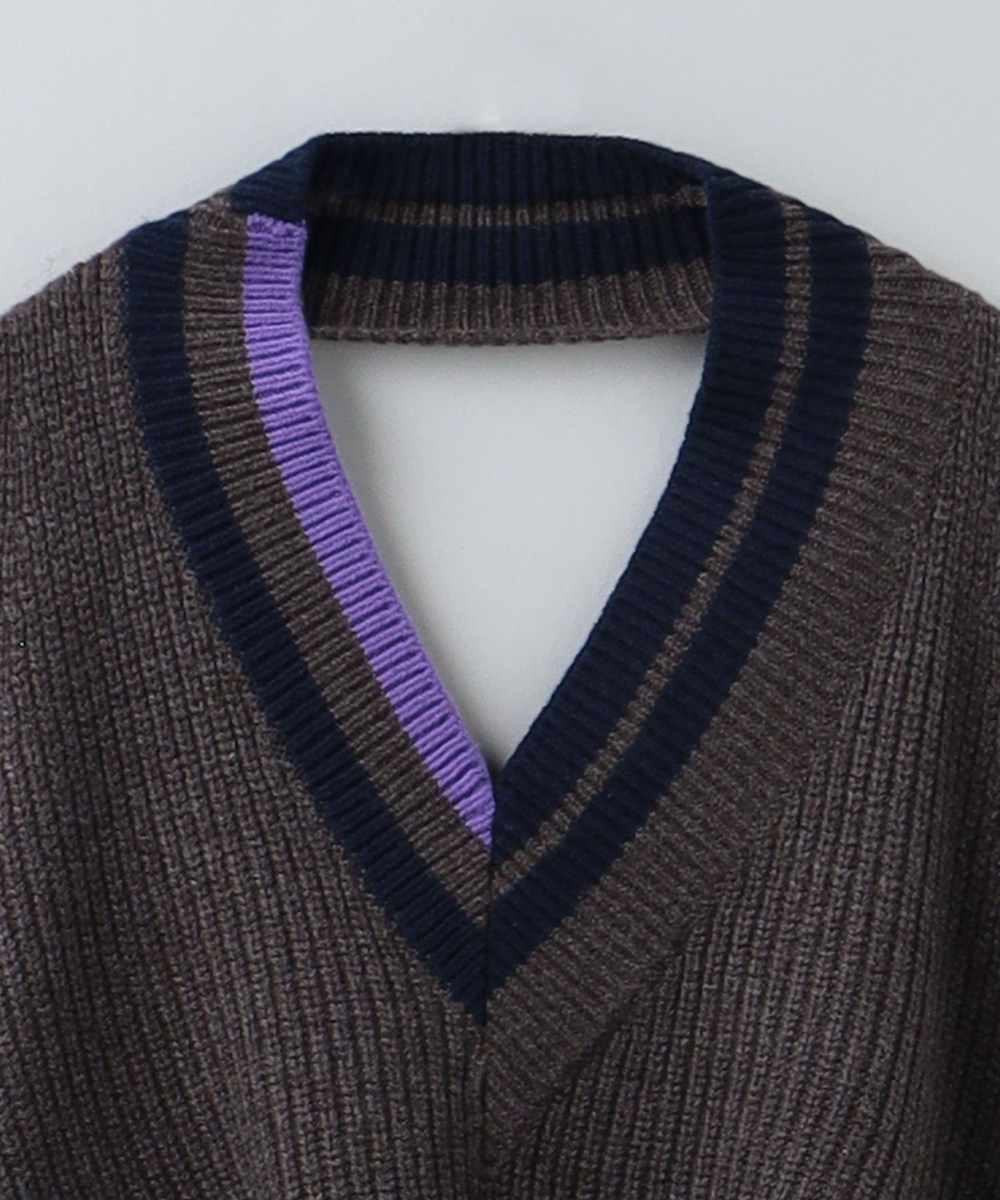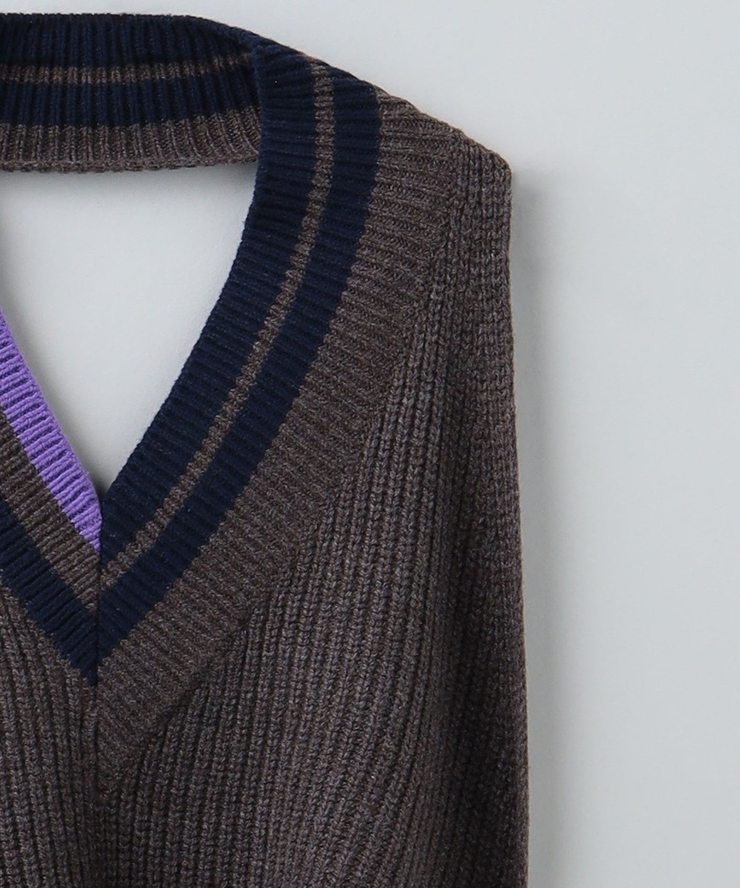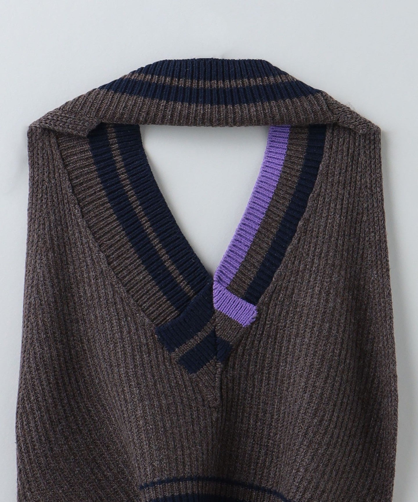 Neck and HEM A traditional British cricket shirt accented with lines. KNIT A vest-style halter neck with a modern design.