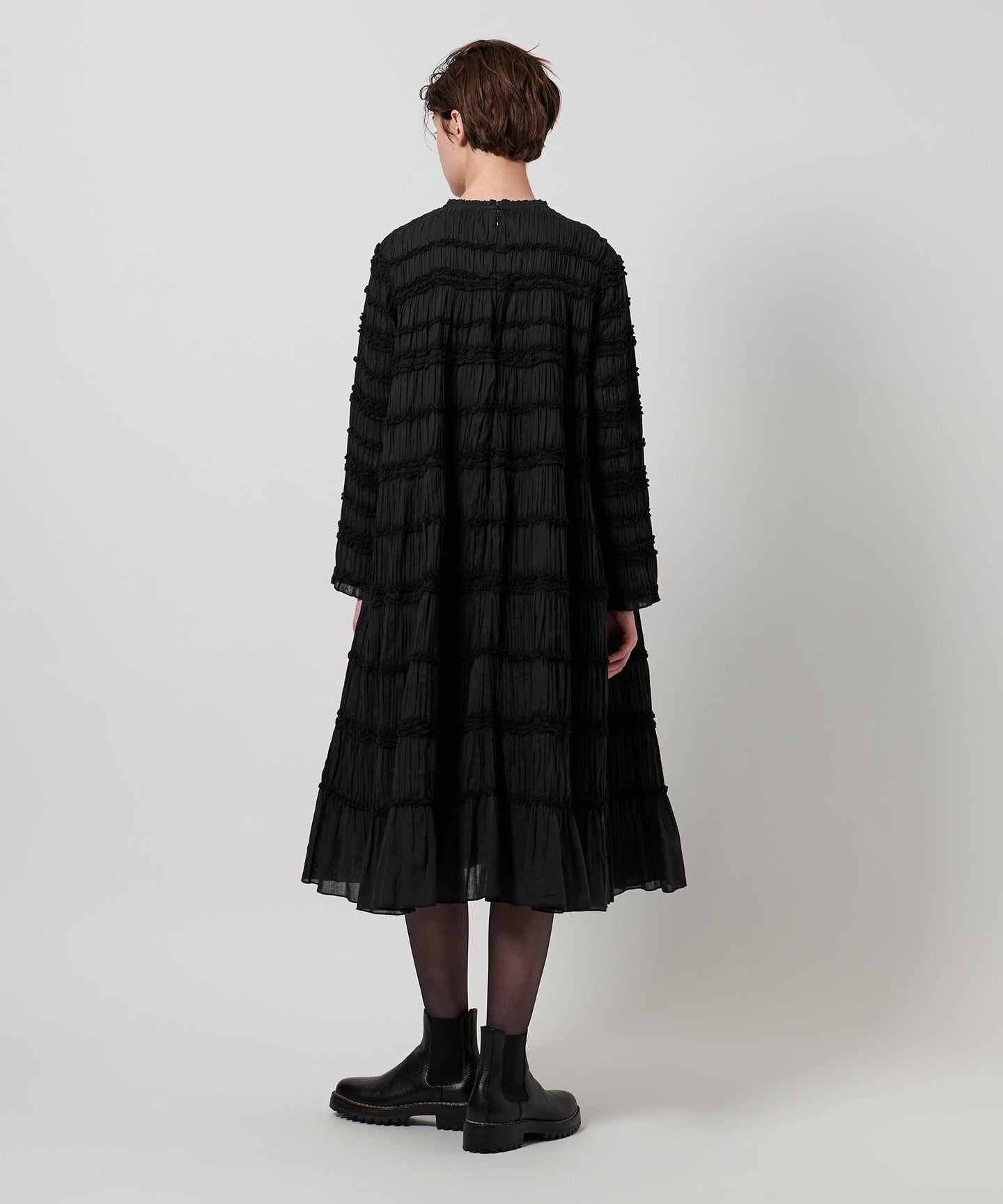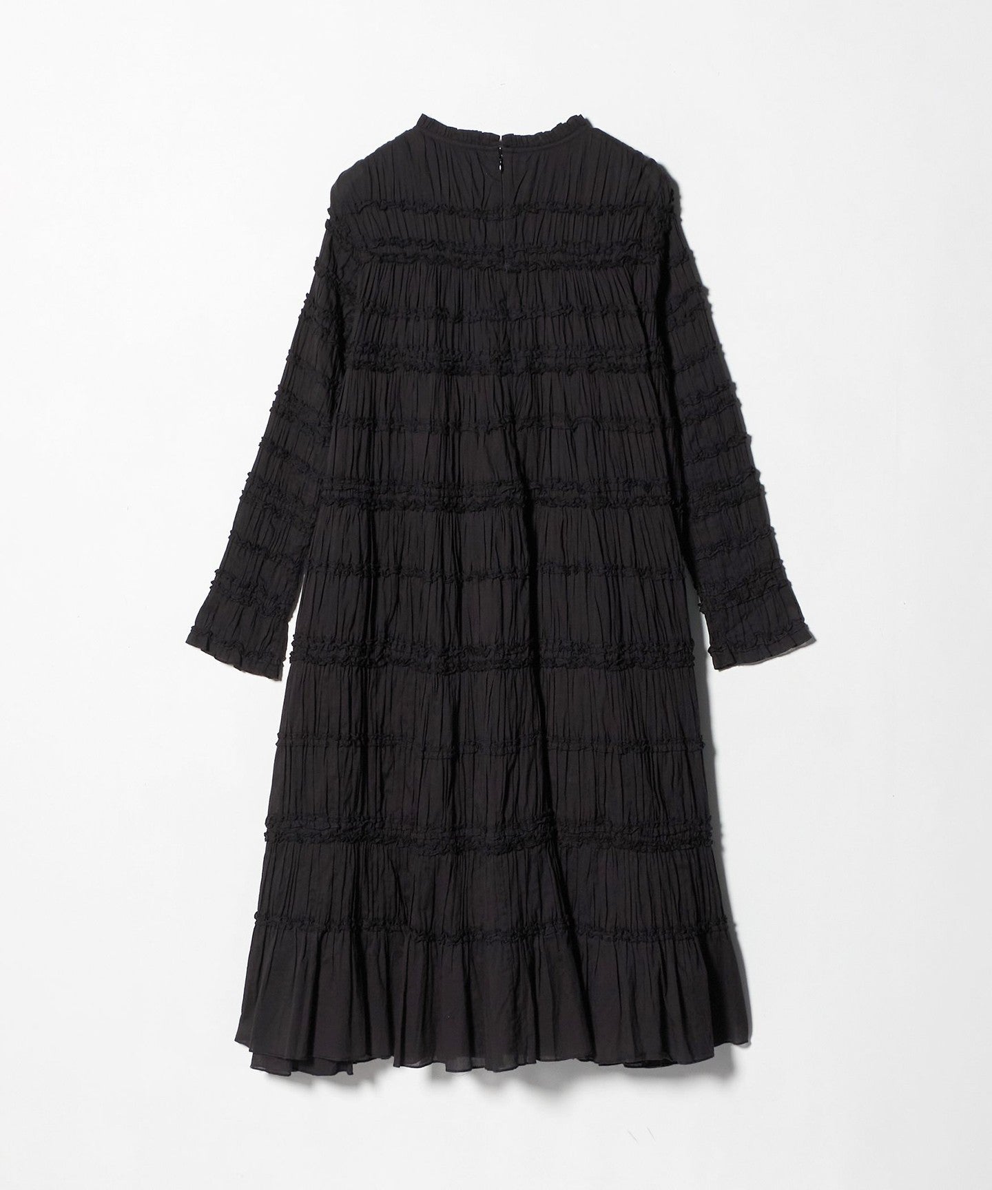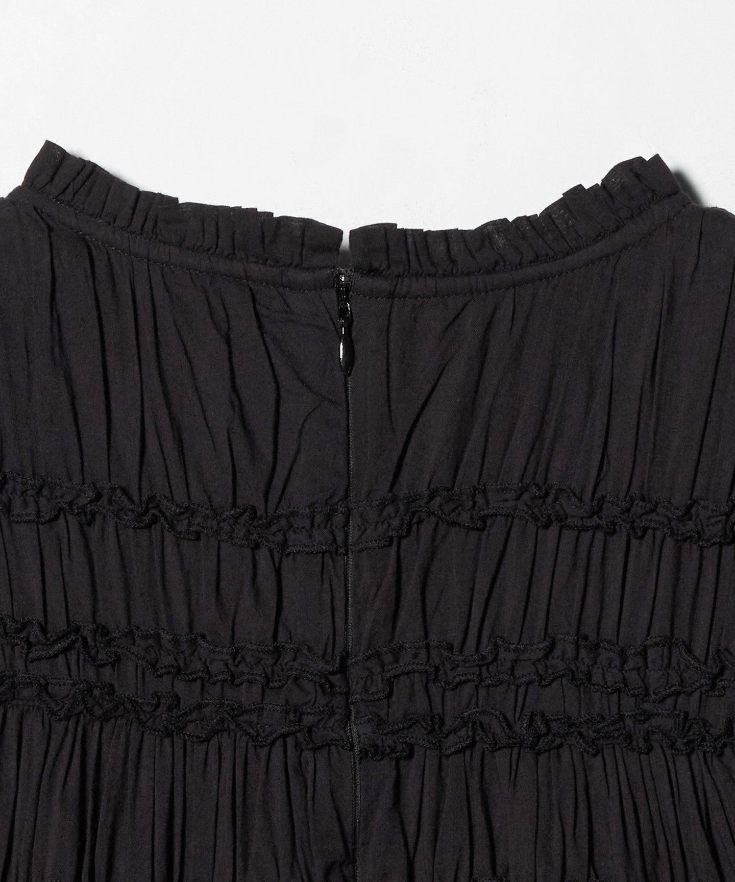 A midi-length dress with voluminous gathers that gives a gorgeous impression.