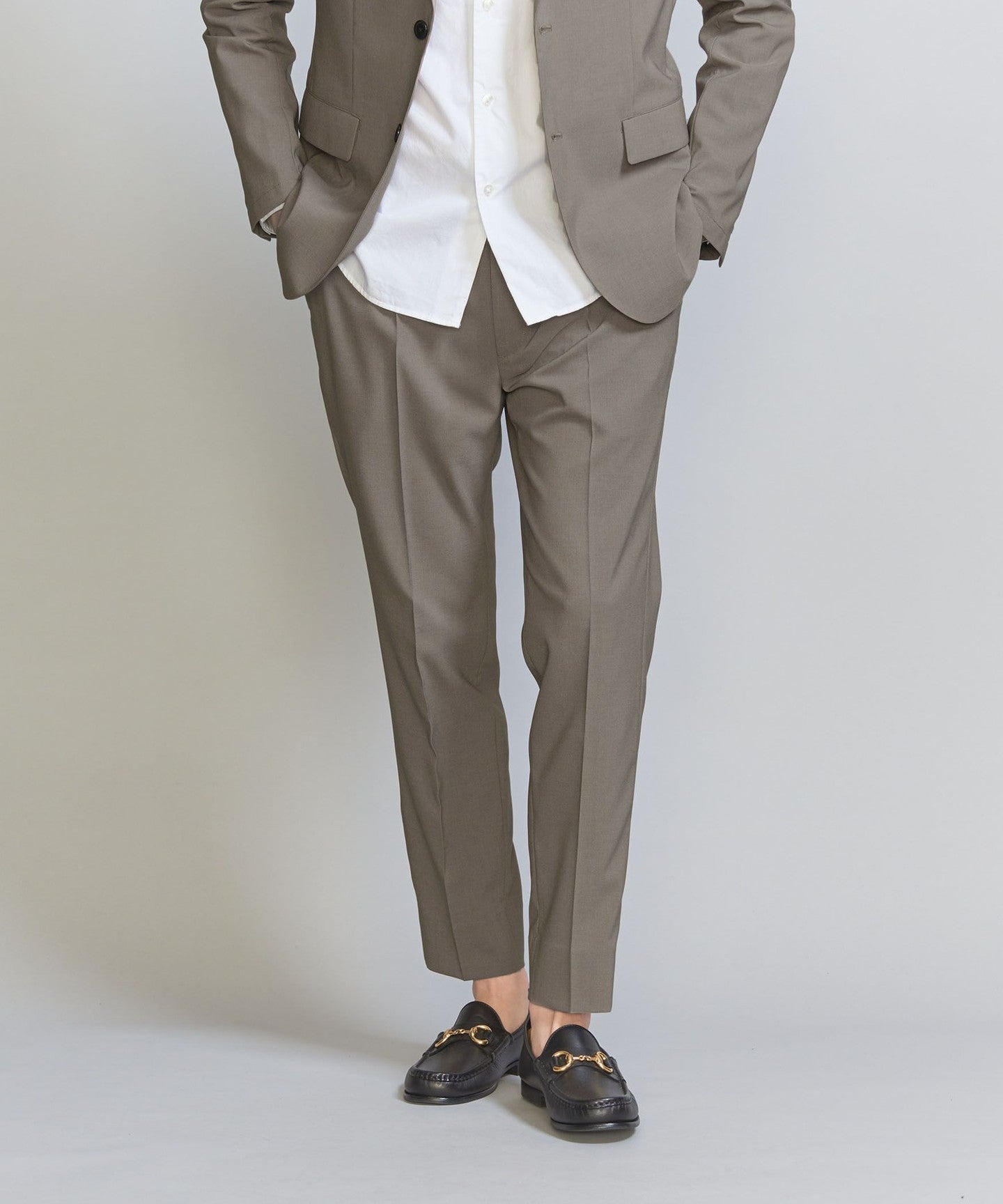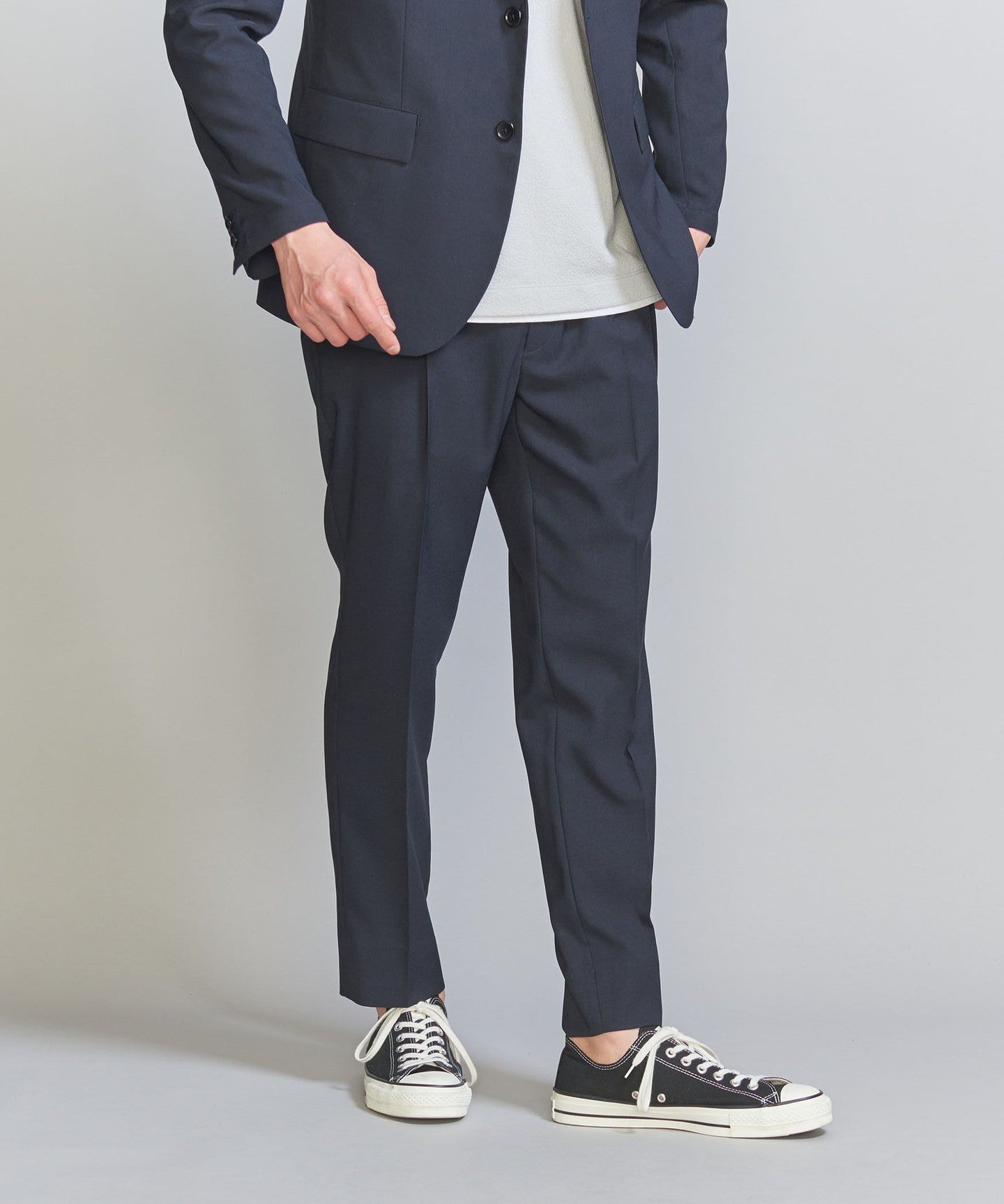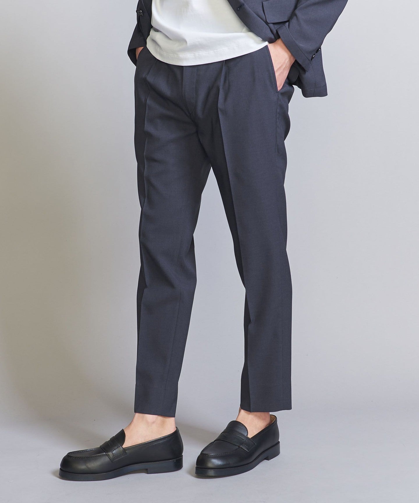 1 Pleats are added to give a moderate amount of room around the hips,HEM Slim tapered silhouette that narrows towards the waist.