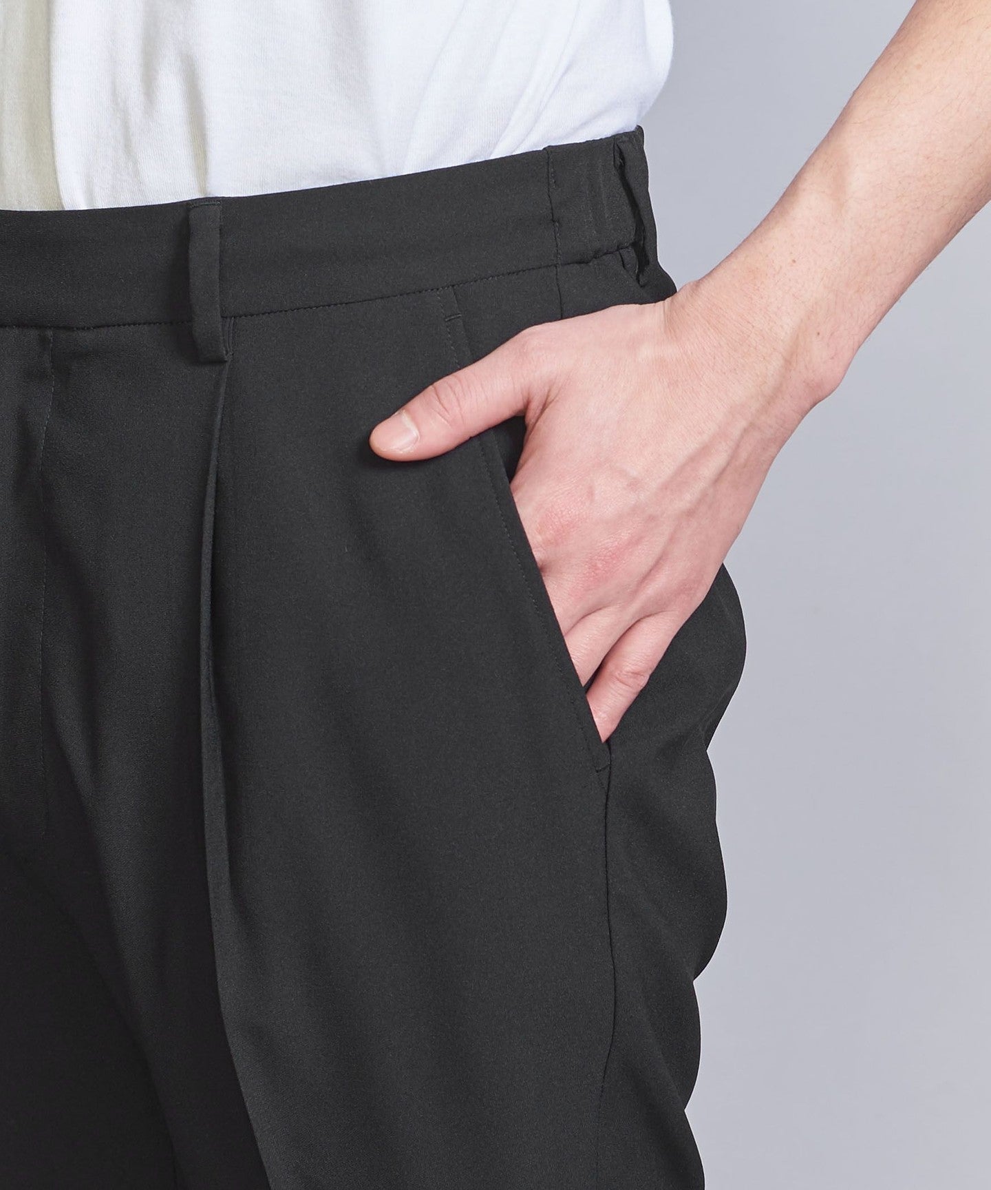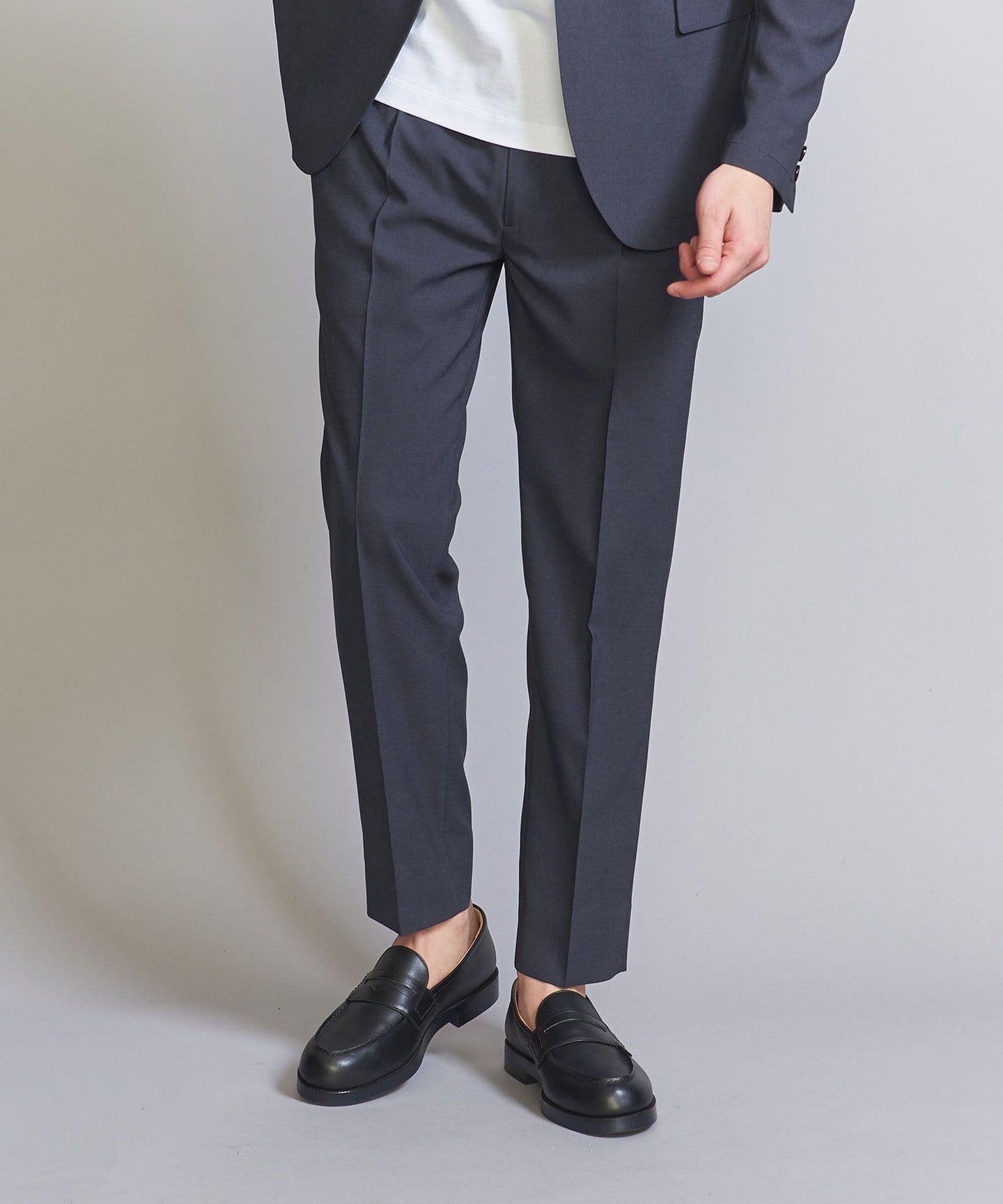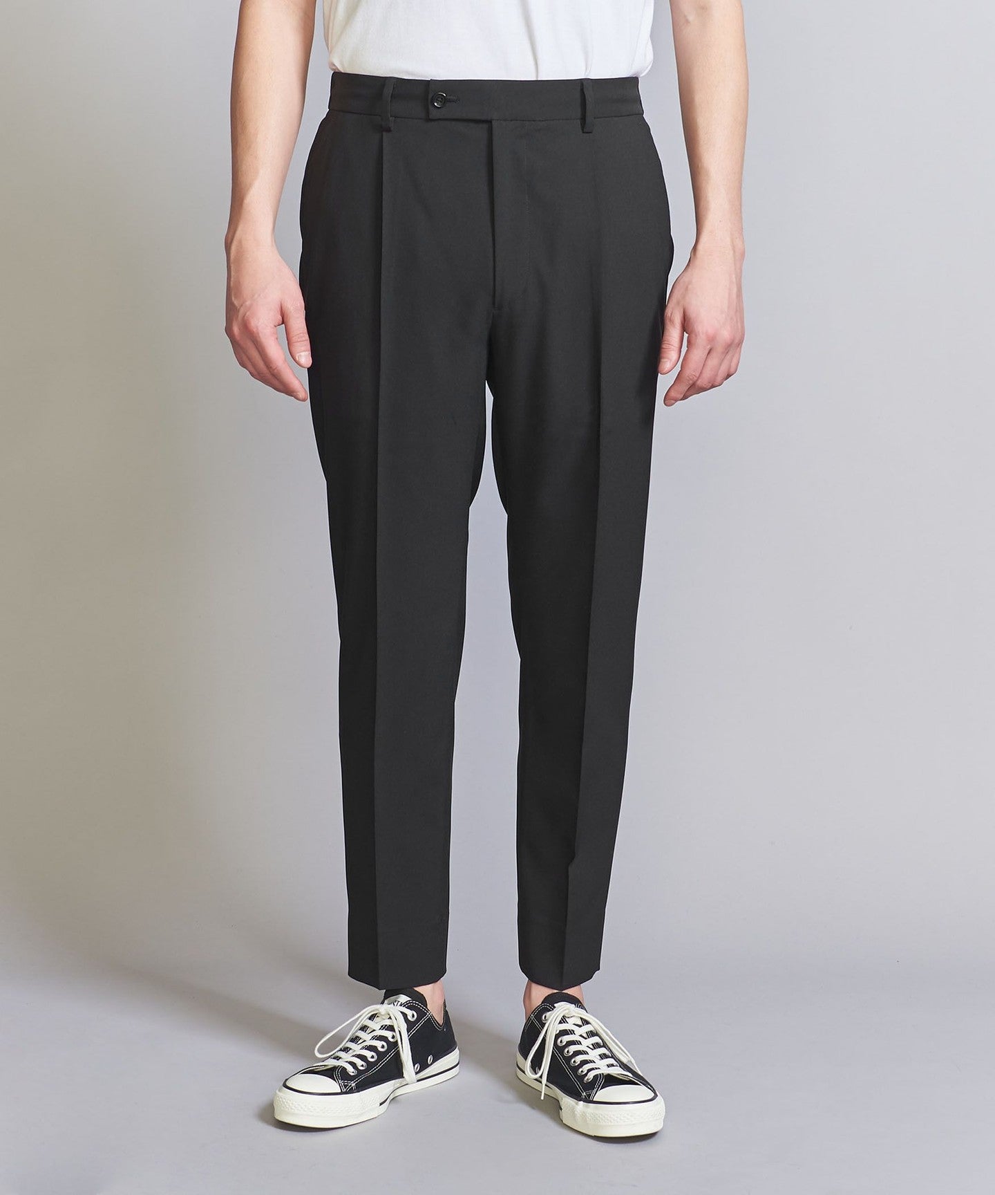 1 Pleats are added to give a moderate amount of room around the hips,HEM Slim tapered silhouette that narrows towards the waist.