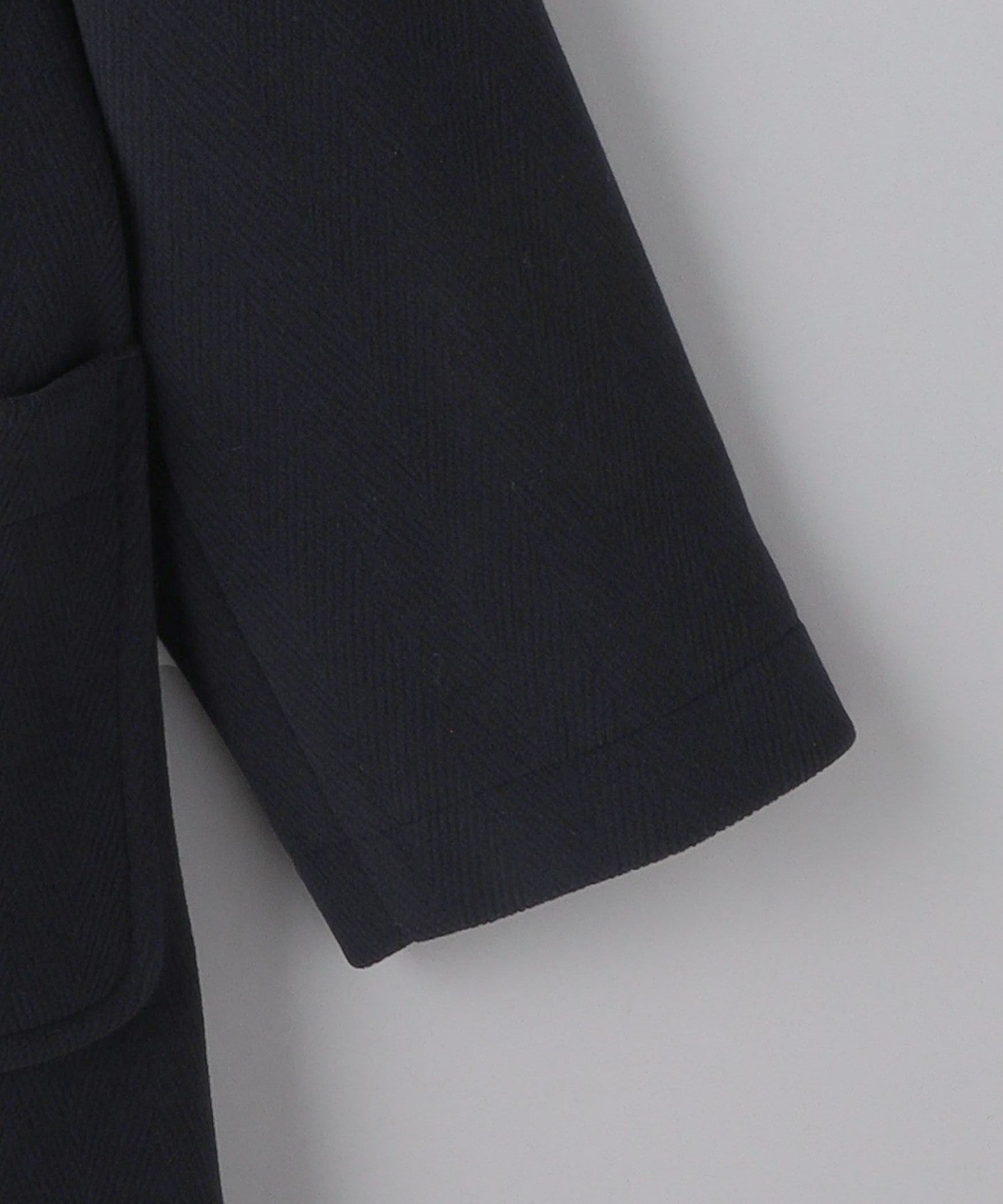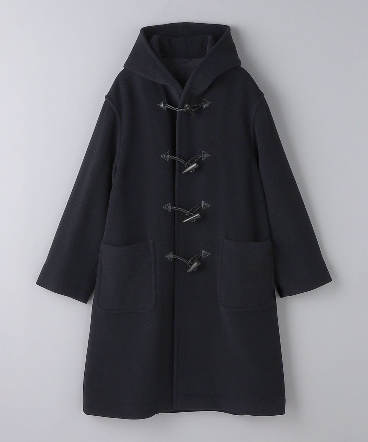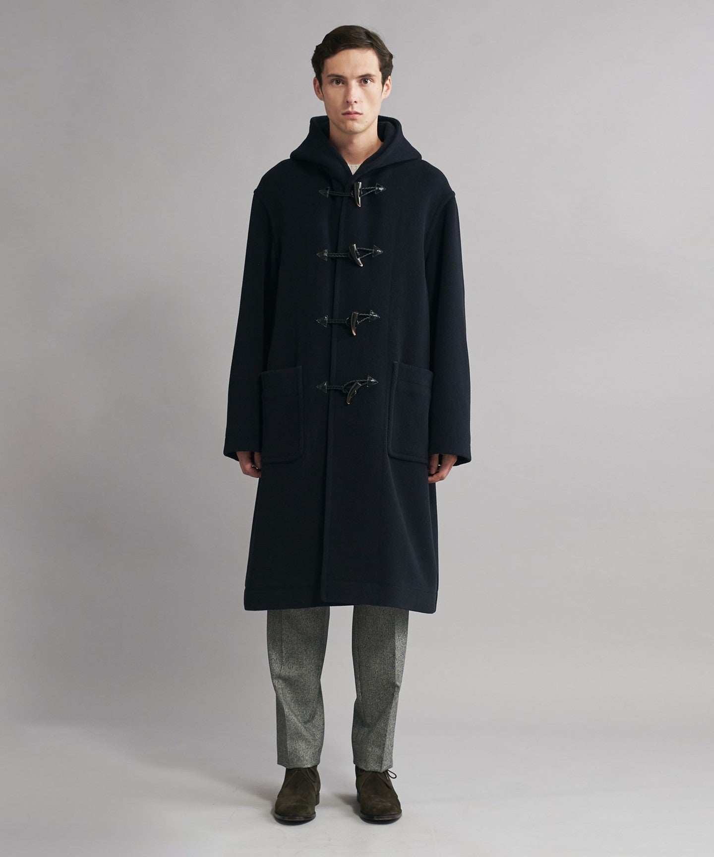 This duffle coat has an authentic design, including a three-dimensional hood, authentic toggle buttons, and a woven herringbone pattern.