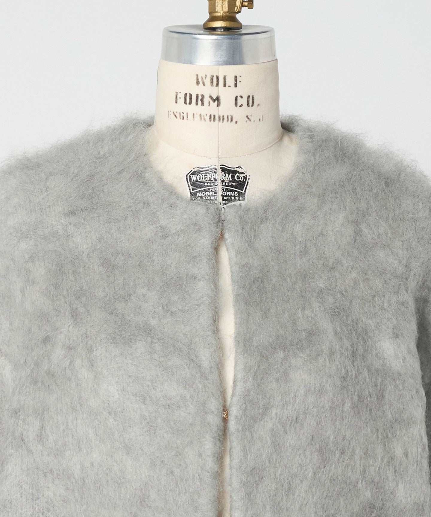 A cardigan with a soft, hairy texture that can be worn like a jacket.