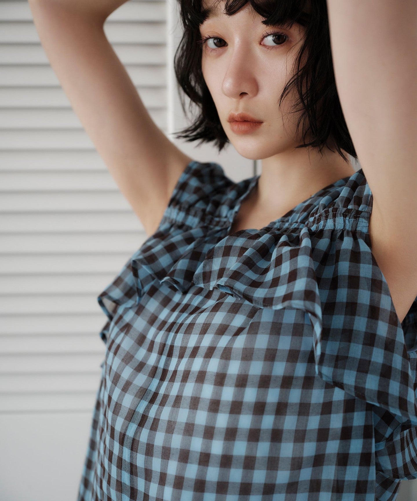 #springclothes, #springitems, #summerclothes, #summeritems, #25SS, #checked, #patterned, #patternedtops, #sleeveless, #sleevelessblouse